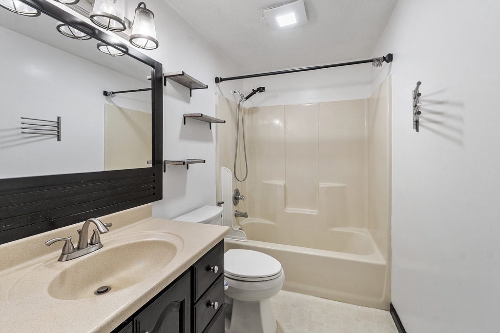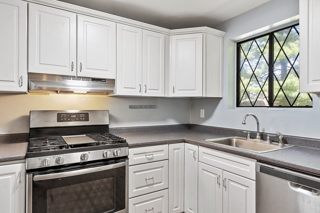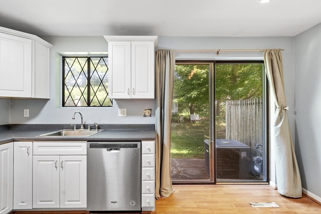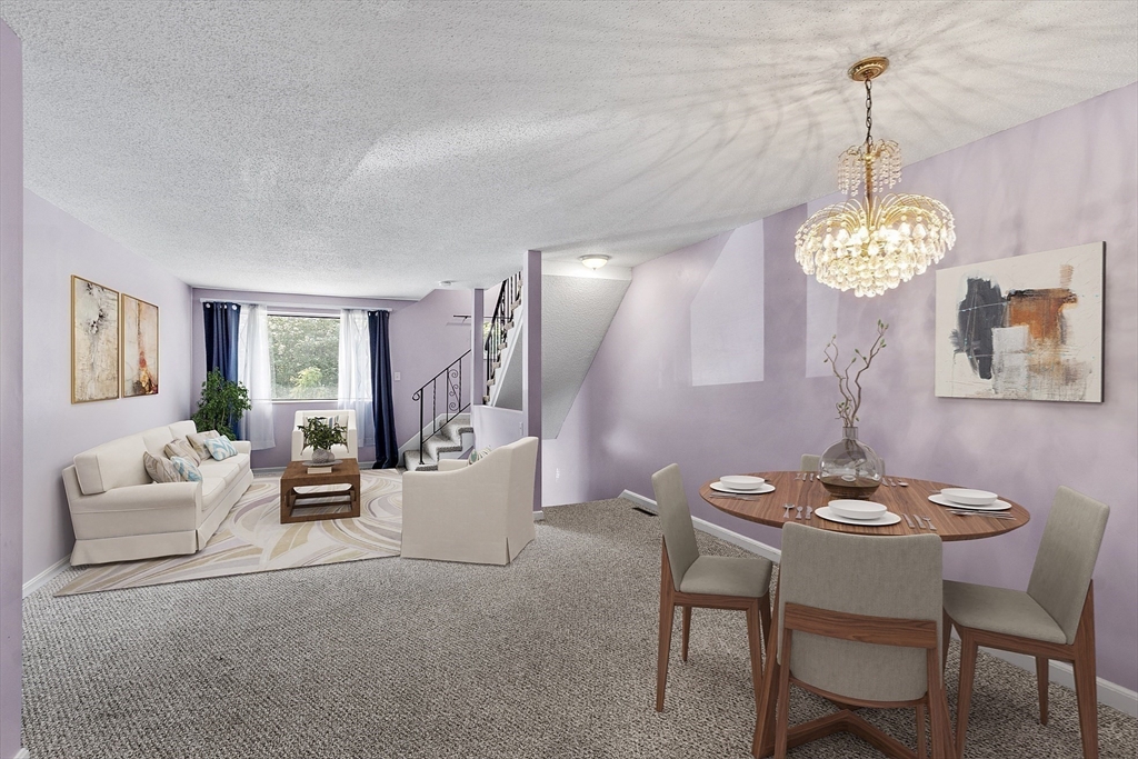 This Bradford townhouse, set on the North Andover line, offers the perfect blend of comfort, convenience and functionality. The bright eat-in kitchen features white cabinetry, stainless steel appliances and direct access to your private patio - ideal for outdoor dining or relaxation. The open-concept living and dining room provides a spacious, versatile layout to suit your lifestyle. Uptairs, you will find two generously sized bedrooms which share a full bath. The finished lower level expands the living space with a large family room complete with a cozy fireplace, in-unit laundry, and a second full bath-perfect for gatherings, guests or a quiet night in. Additional highlights include two assigned parking spaces, new heating system (2019), new hot water tank (2022), central air conditioning and refrigerator, washing machine and dryer to be included with the sale!