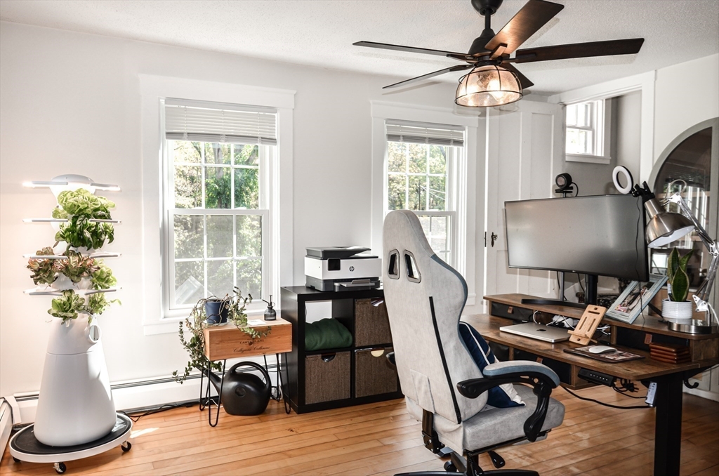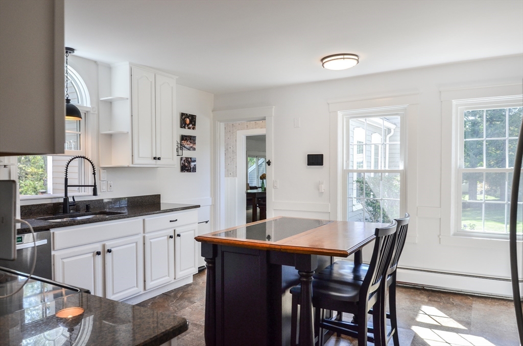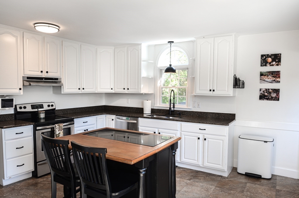 Spacious 5-bed, 2.5-bath Colonial on 2.12 acres abutting conservation land, blending timeless charm with modern upgrades. This 3500+ sq ft home features a 900+ sq ft vaulted great room with oak hardwoods, triple-pane windows, and loft overlook—perfect for entertaining or working from home. The updated kitchen with granite counters, island, and eat-in space flows to formal dining, an office and extra bedroom with 1.5 baths on the first floor. Upstairs offers 4 generous bedrooms, a full bath, and walk-up attic. Two decks provide outdoor retreat. Recent updates: NEW roof & windows, newer heating system, water heater, softener, well pump, and fresh exterior paint. Extras: oversized 2-car garage, workshops, EV charger, generator hookup, and 4 enclosed raised garden beds. Functional yard plus private woods. Prime location: 4 minutes to I-495/290, daycare within 2 miles, and walkable to Berlin schools, parks, pickleball, and disc golf. A perfect blend of comfort, convenience, and space.