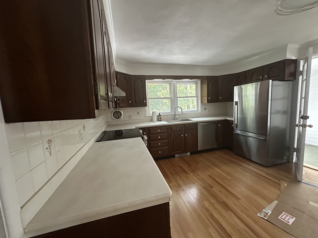 Fully renovated classic 1950’s Cape Cod style home located in one of Shrewsbury’s most sought after neighborhoods. This little charmer sits on over a quarter acre of land backing up to conservation woods. Easy access to UMass Hospital, Rte’s 290, 495, and Mass Pike . Walk to center of town and short drive or walk to Dean Park . Brand new bathrooms with tiled showers, quartz counters and double vanities. Cherry cabinets in kitchen with white Corian countertops and all brand new appliances. Knotty pine paneled dining room / den next to kitchen. Finished basement with nice storage and finished laundry room with brand new washer and dryer. Utility room / workshop located in the basement also. Hardwoods throughout first floor and vinyl plank flooring in basement and upstairs bedrooms. Brand new windows throughout. Great location / great neighborhood!