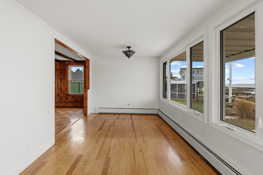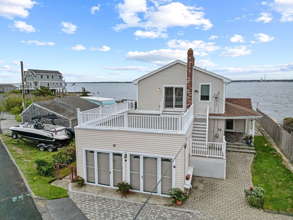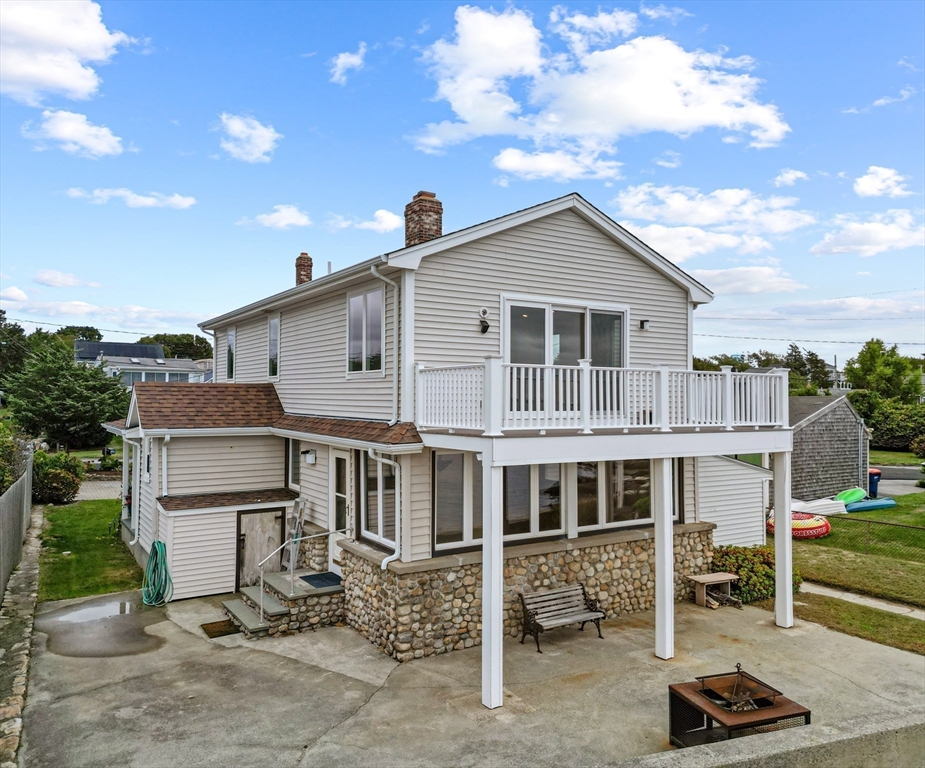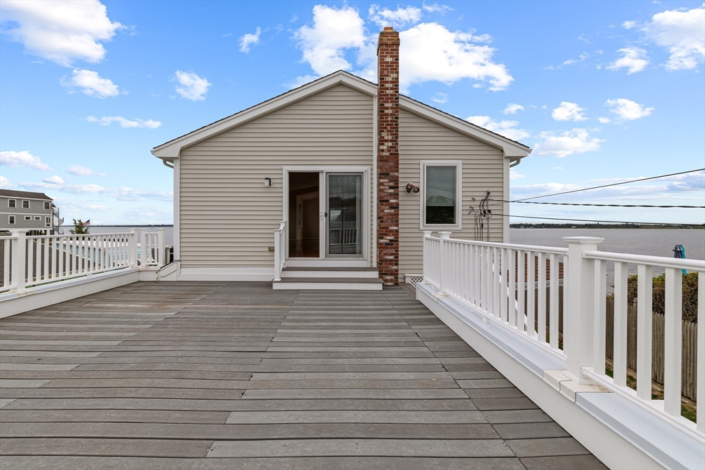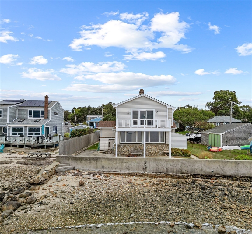 WATERFRONT - Year round home! Amazing views & water access for this beautiful waterfront home in Fairhaven, MA. The wall of windows on the first floor overlook the water & provide beaming light throughout the day. The living room is truly a highlight, with its brick fireplace serving as a focal point for gatherings, while the beamed ceiling & wood wall add character & a sense of rustic charm. You will find two bedrooms on the first floor & a full bathroom. The second floor features hardwood floors, an additional bedroom, a full bathroom, & a front to back family room. The second floor bathroom is appointed with a tiled walk-in shower & double vanity, offering both convenience & a touch of luxury. This waterfront home is perfect for outdoor entertaining & also features a large patio which is partially covered, as well as a balcony and deck where one can relax & enjoy the never-ending beauty of a waterfront view.