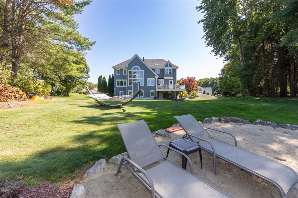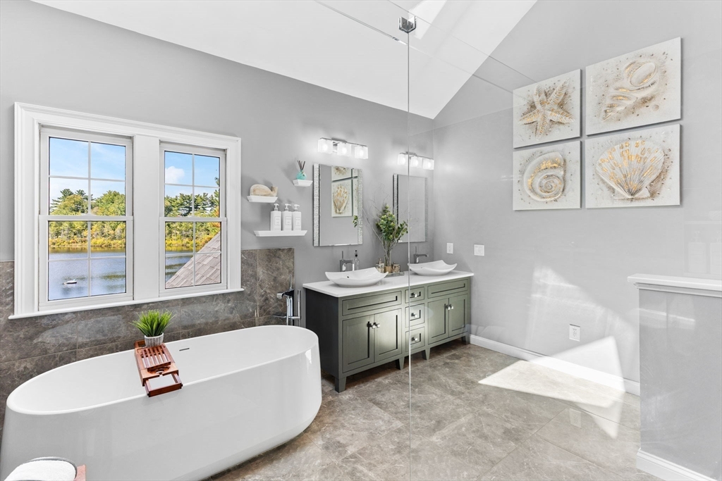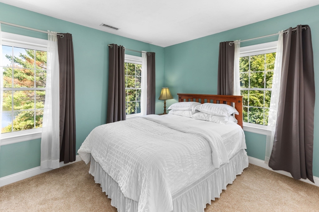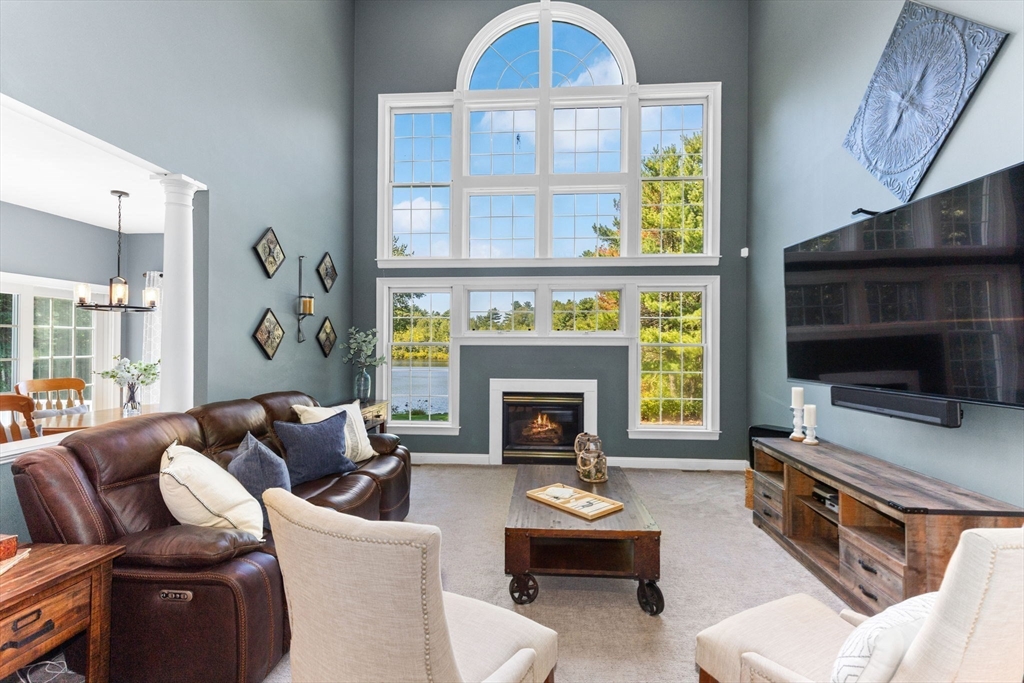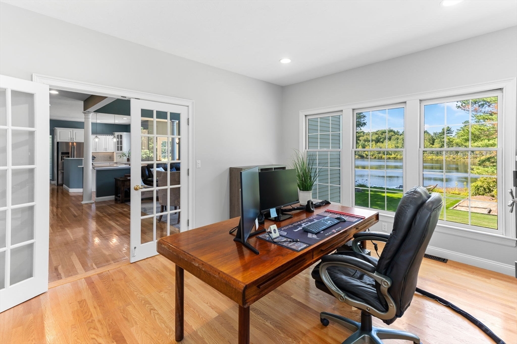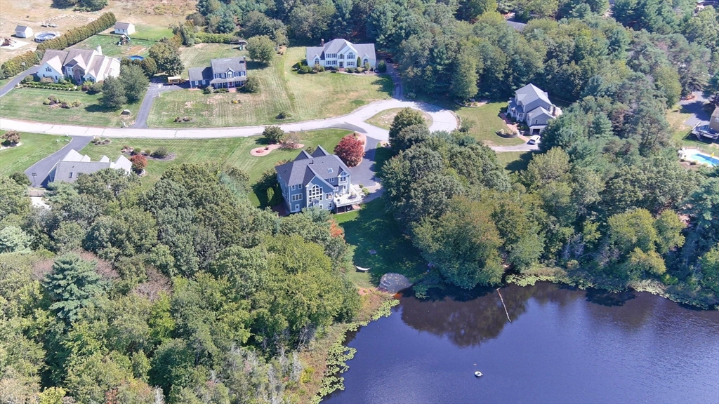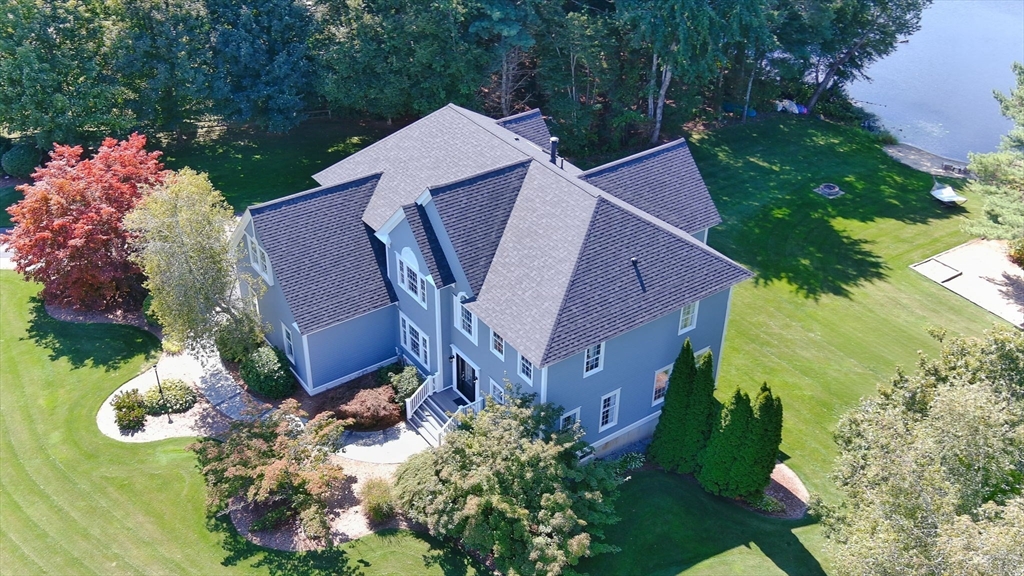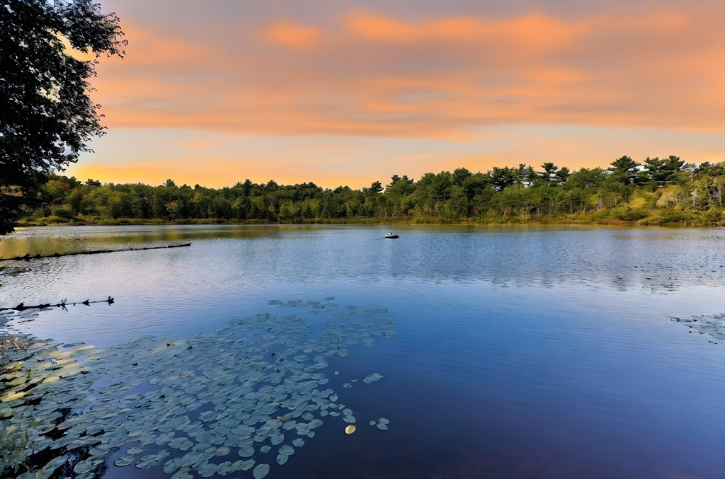 Rare PONDFRONT Masterpiece in Executive Neighborhood! Welcome to your own private waterfront oasis. Nestled in a quiet executive neighborhood just minutes from highway access & the commuter rail. This impeccably maintained & renovated home sits on the edge of a stunning 9-acre private pond--perfect for year-round enjoyment. Unwind each evening w/ breathtaking sunsets over the water from your deck or private beach. The manicured lawn provides the perfect space for entertaining or simply relaxing while taking in the serene views. The interior offers a bright & airy layout w/ standout features: Primary bath featuring a luxurious soaking tub, Floor-to-ceiling windows in the family room w/ panoramic pond views. Renovated kitchen w/ white cabinetry, quartz countertops & modern appliances. 1st floor office w/ French doors. Formal dining/living rooms for holiday entertaining. Retreat to the expansive primary bedroom suite, complete with its own private exercise room. Finished lower level too!