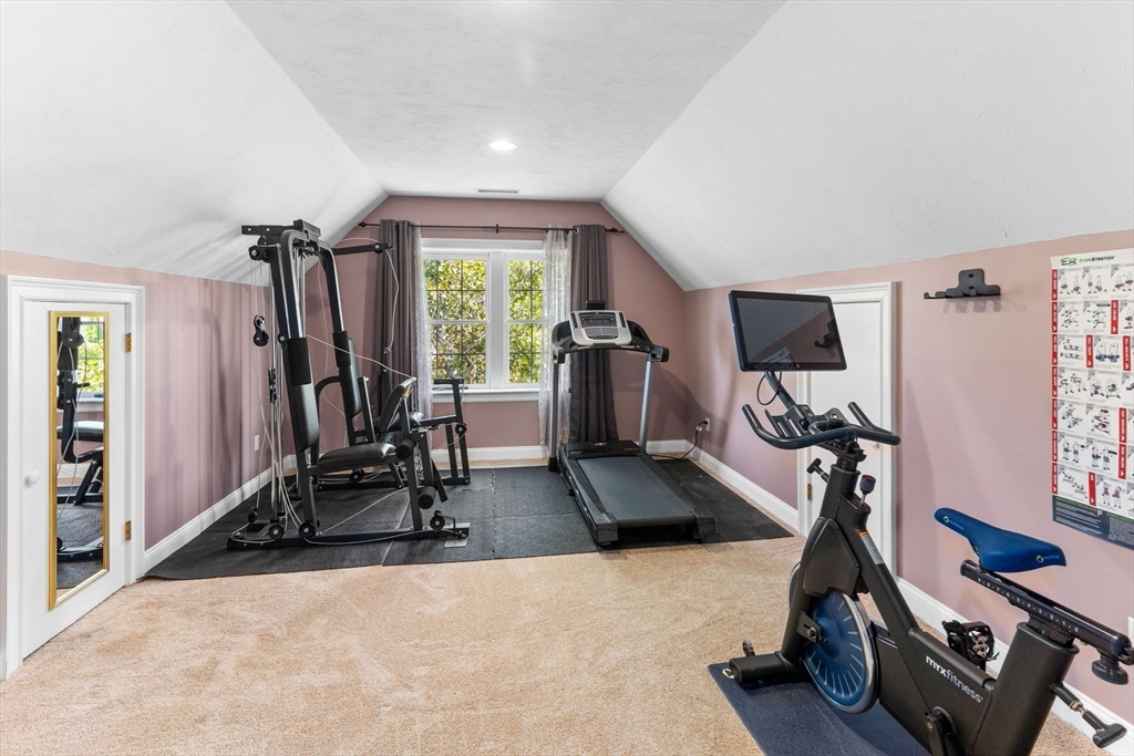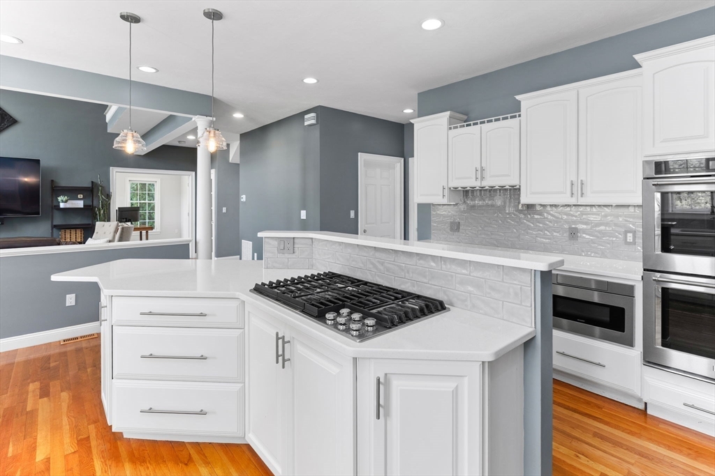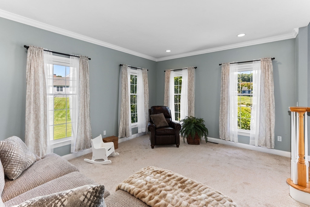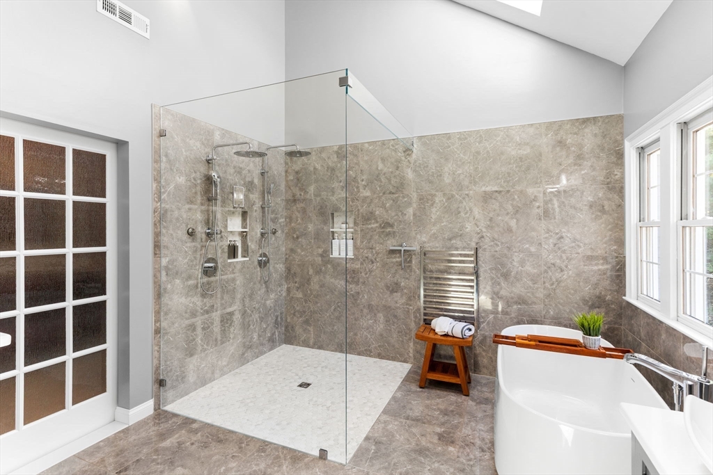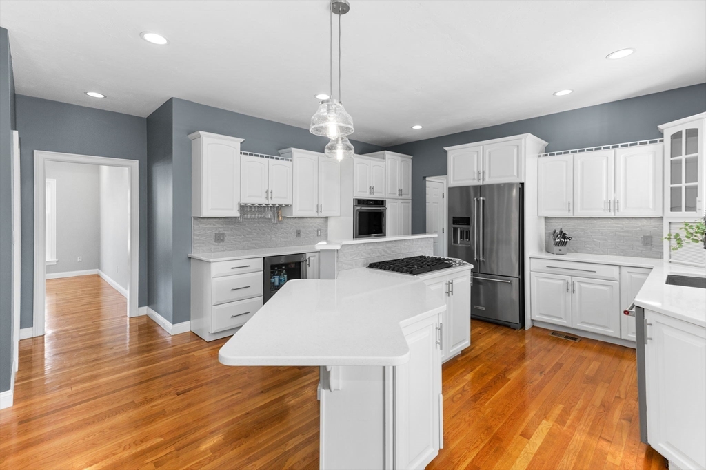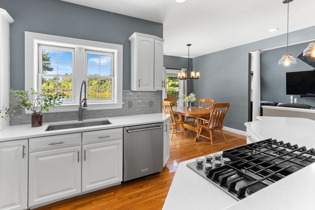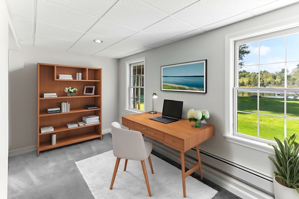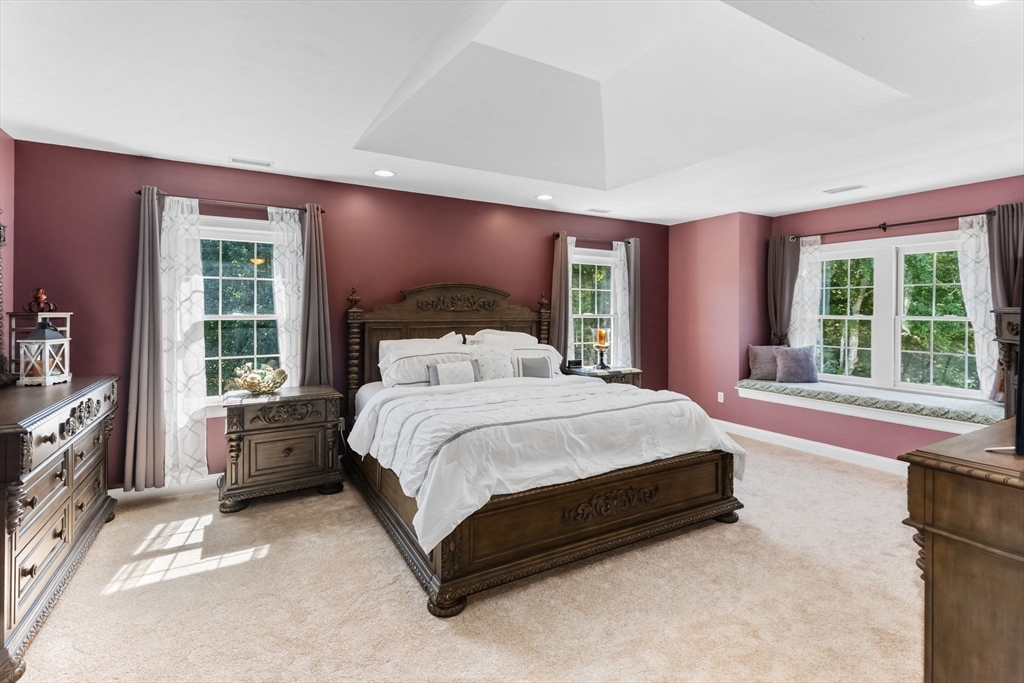 Rare PONDFRONT Masterpiece in Executive Neighborhood! Welcome to your own private waterfront oasis. Nestled in a quiet executive neighborhood just minutes from highway access & the commuter rail. This impeccably maintained & renovated home sits on the edge of a stunning 9-acre private pond--perfect for year-round enjoyment. Unwind each evening w/ breathtaking sunsets over the water from your deck or private beach. The manicured lawn provides the perfect space for entertaining or simply relaxing while taking in the serene views. The interior offers a bright & airy layout w/ standout features: Primary bath featuring a luxurious soaking tub, Floor-to-ceiling windows in the family room w/ panoramic pond views. Renovated kitchen w/ white cabinetry, quartz countertops & modern appliances. 1st floor office w/ French doors. Formal dining/living rooms for holiday entertaining. Retreat to the expansive primary bedroom suite, complete with its own private exercise room. Finished lower level too!