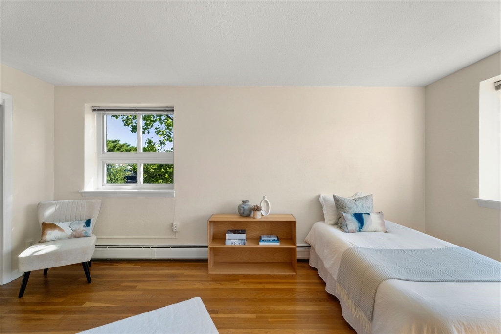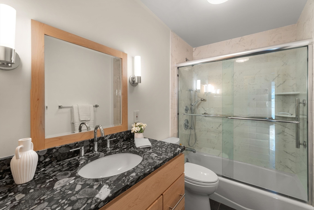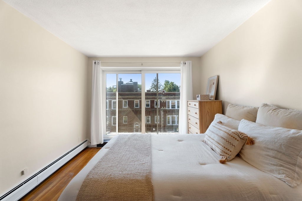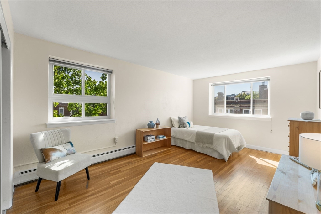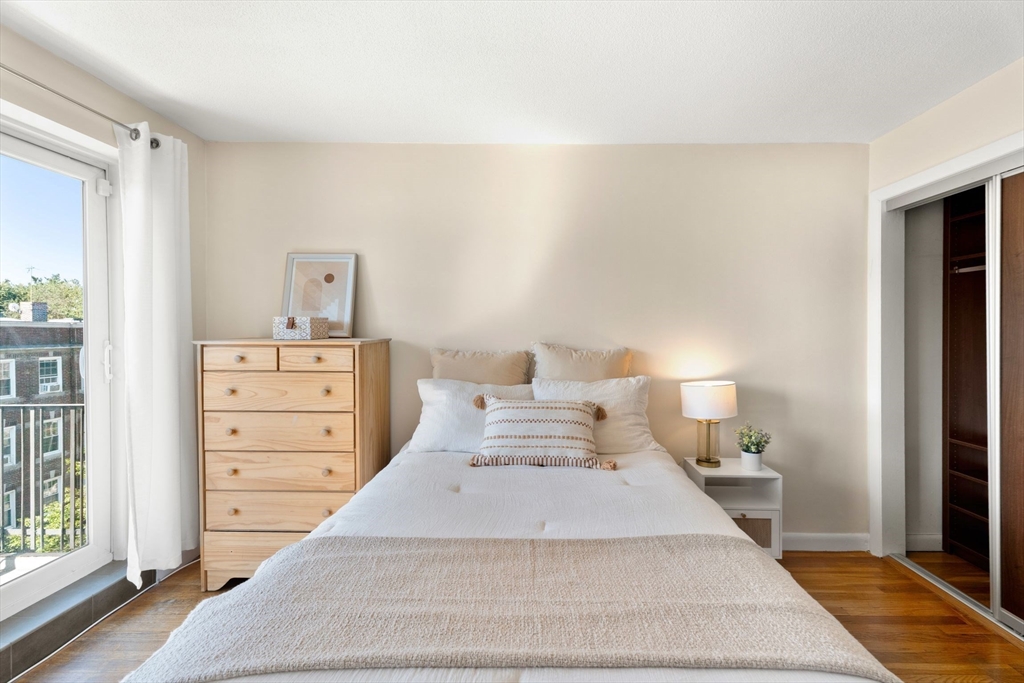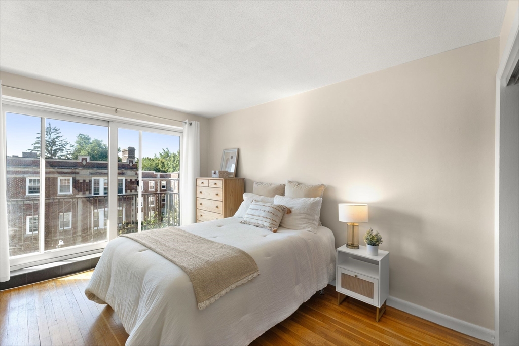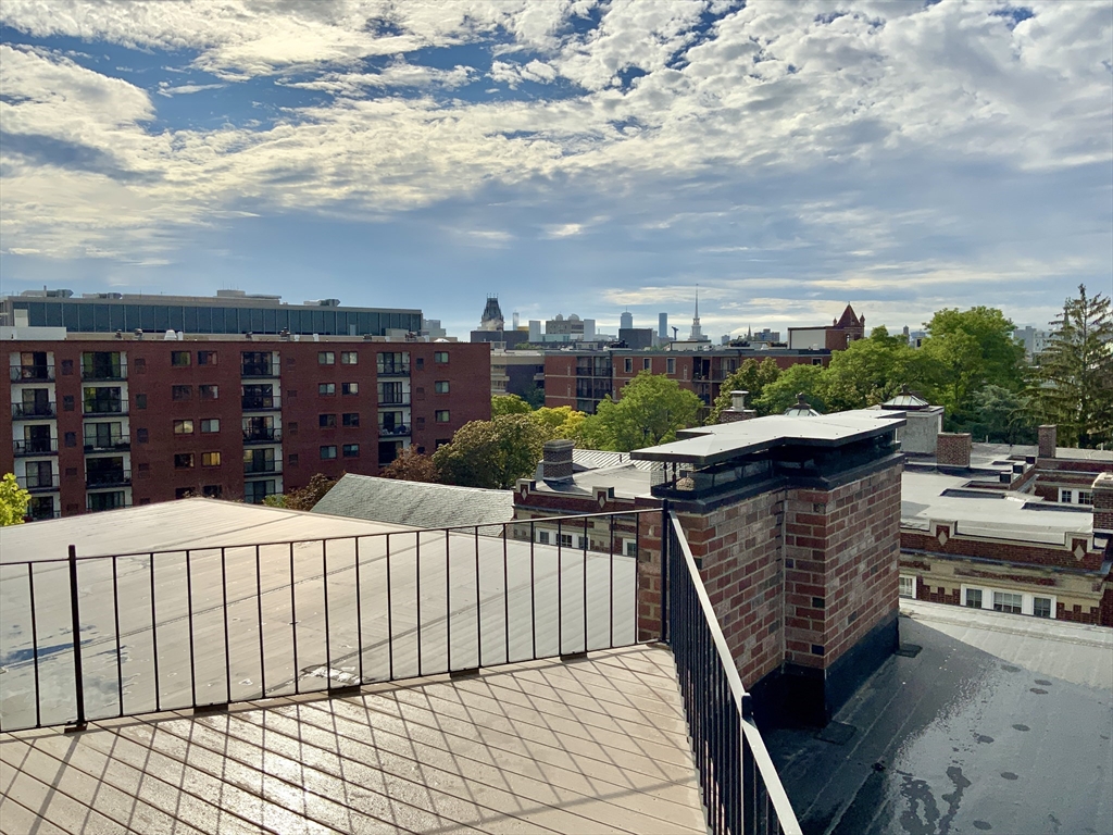 Discover this stunning, light-filled, remodeled 6th-floor, 2-bedroom, corner-unit condo in the heart of vibrant Harvard Square, Cambridge. This elegant residence boasts an expanded, gourmet kitchen featuring pocket French glass doors, perfect for sophisticated entertaining. Gleaming hardwood floors flow throughout, complemented by custom built-in bookcases that add charm and functionality. Step onto your private balcony to enjoy serene views or go up one flight to the incredible roof deck. The building offers modern conveniences, including an elevator, in-building laundry, and additional storage. Complete with one deeded parking spot, this condo blends luxury and practicality in an unbeatable location, near Harvard University, shops, dining, and public transit. Experience urban living at its finest!