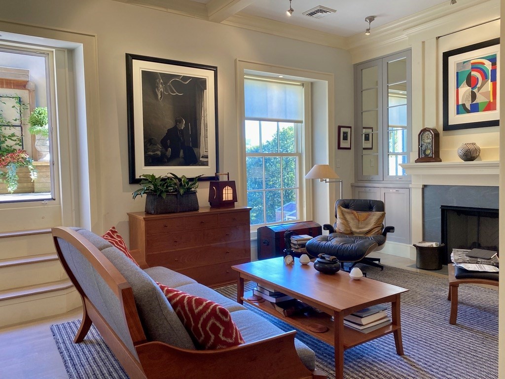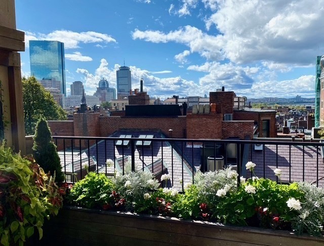 Custom renovated one bedroom plus study/guest room apartment on Mt. Vernon Street just above Louisburg. Elegant and sophisticated, this unit, located in an architecturally impressive building, has an elevator, live-in superintendent, exercise room, courtyard and a roof deck with spectacular views. The livingroom has two exposures, gas fireplace, built-in cabinets and wood flooring. The bedroom has a walk-in closet. Handsomely renovated bath with two sinks, luxurious soaking tub, separate shower stall and stack washer and dryer. The large designer kitchen has hi-end appliances, custom cabinetry and granite counters. There is a study, guest room off the livingroom which can be closed off by folding doors for privacy. Good size sunny private deck off the living room with cedar pergola, built-in seating, planters, electricity and water. Storage bin in basement along with a common laundry room. Heat, hot water and central air conditioning included; lessee pays electricity to distribute.