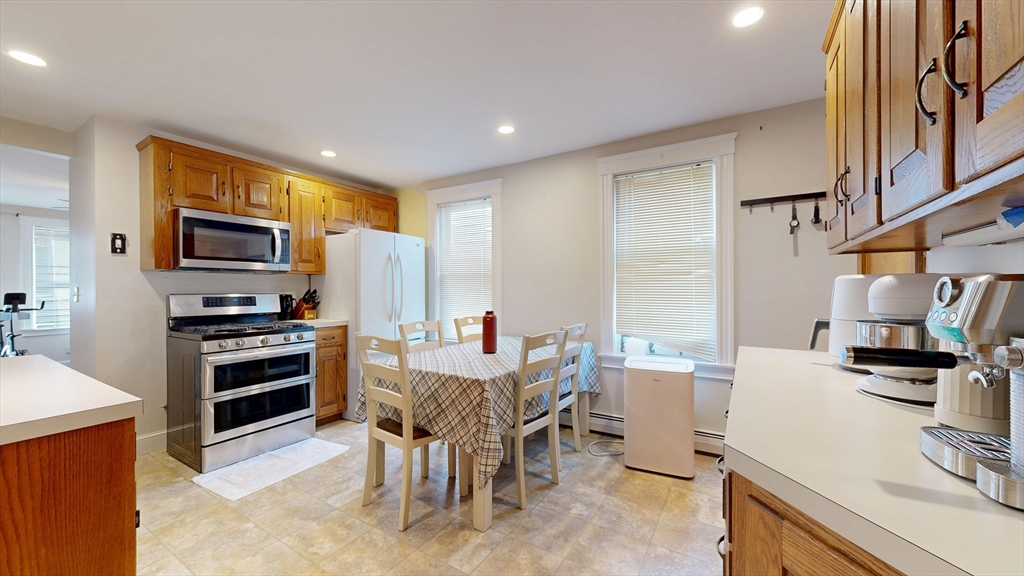 Originally built as a tradition three flat house. 2-bedroom, 1 bathroom, per floor. Previous owners convert the top two floors to a combination two floor beautiful owners' unit. Third floor kitchen was removed for in unit washer and dryer. All utilities in area for conversion back to standard three unit or use a 4-bedroom owners' unit or 4-bedroom rental unit. Very hard to find. Off street parking on driveway with nice outdoor patio area in back yard. House has front and rear decks for each floor. 1st floor unit is currently open for buyer or can be rented for investment, 2nd and third floor currently rented. Remodeled recent for a fantastic layout as is or convert back to 3 family. Each unit has separated. gas heat and electric and hot water. (3 separated systems in total).