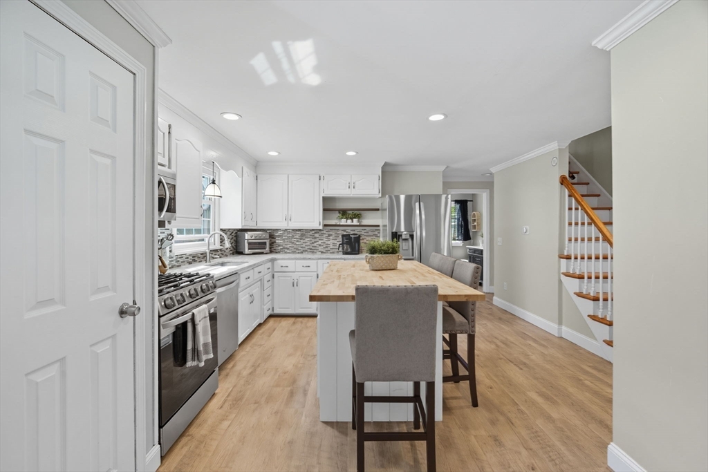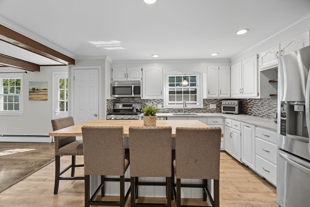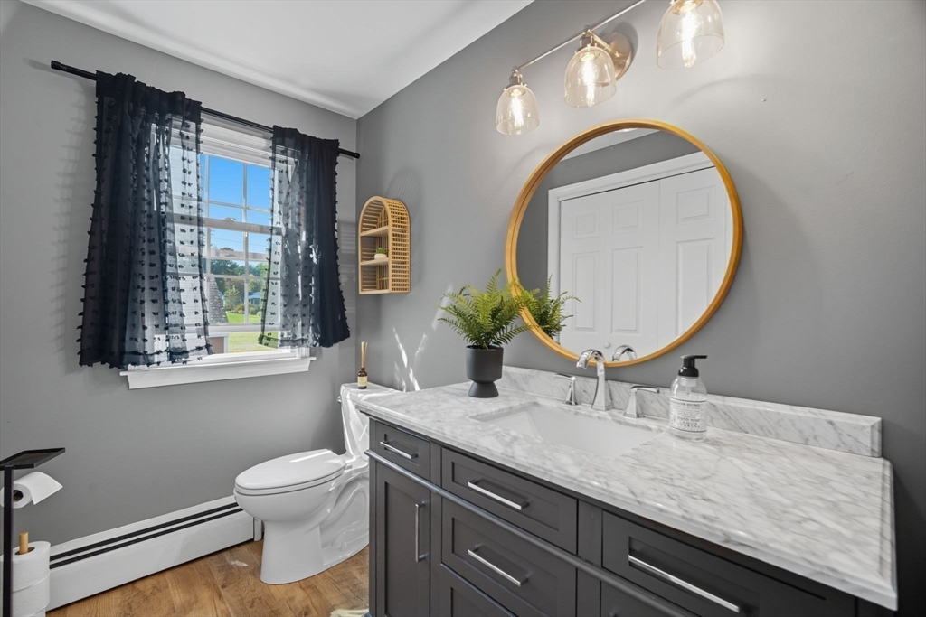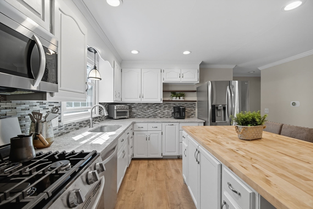 Updated 4 bedroom Wilbraham, MA home perfectly placed on a cul-de-sac close to schools, recreation, the Country Club of Wilbraham and nostalgic downtown set on over a half-acre lot with numerous upgrades inside and out. The showpiece remodeled kitchen features an island, granite counters, tile backsplash, recessed lighting, and stainless appliances that remain for the buyers. The kitchen opens to a versatile family room with a fireplace overlooking the backyard, perfect for relaxing or could be a dining room. An expansive living room is filled with natural light that gleams off hardwood floors.The home offers hardwood flooring throughout. Both bathrooms have been tastefully remodeled. Outside, the fenced backyard offers plenty of space for family fun and pets. There is a 2 car garage. Located in a town rich in Old New England charm, Wilbraham is known for its strong sense of community, schools, recreation, and beautiful Main Street. Come see all this home and town have to offer!
