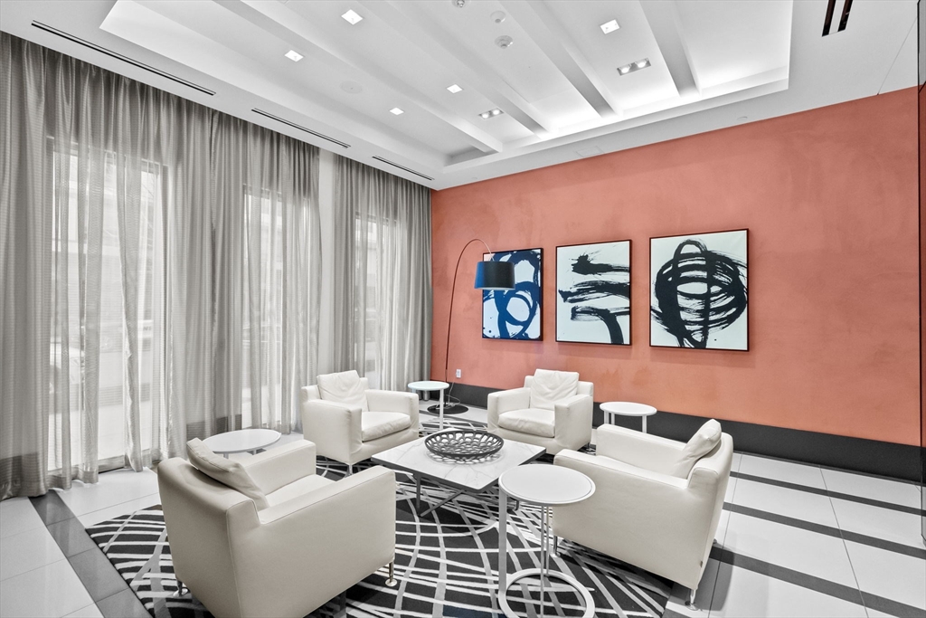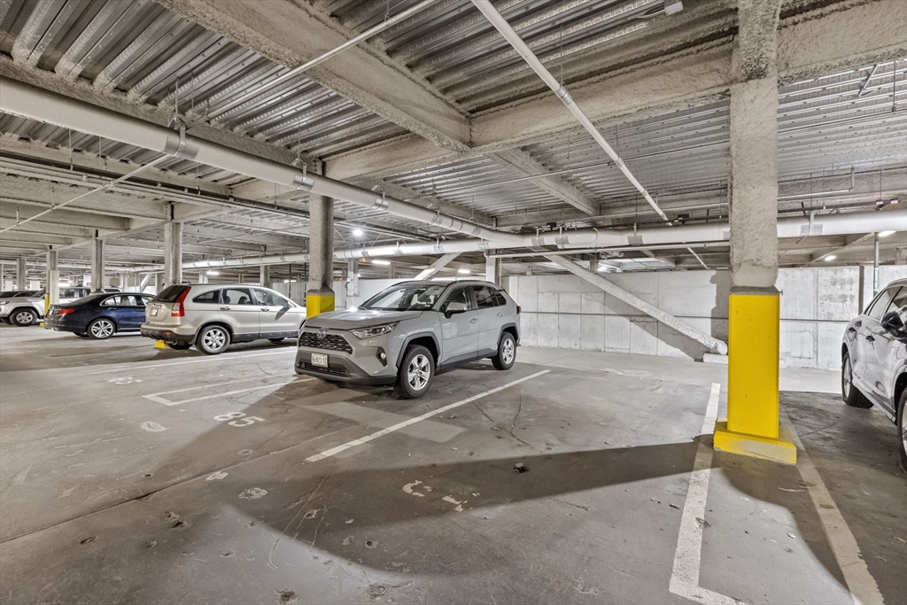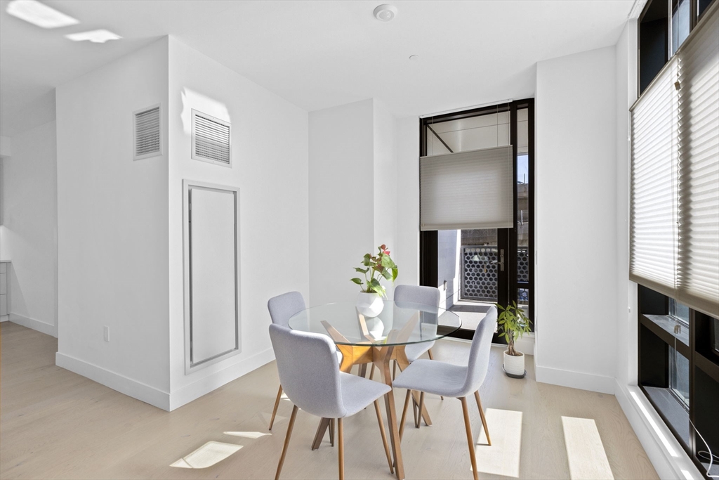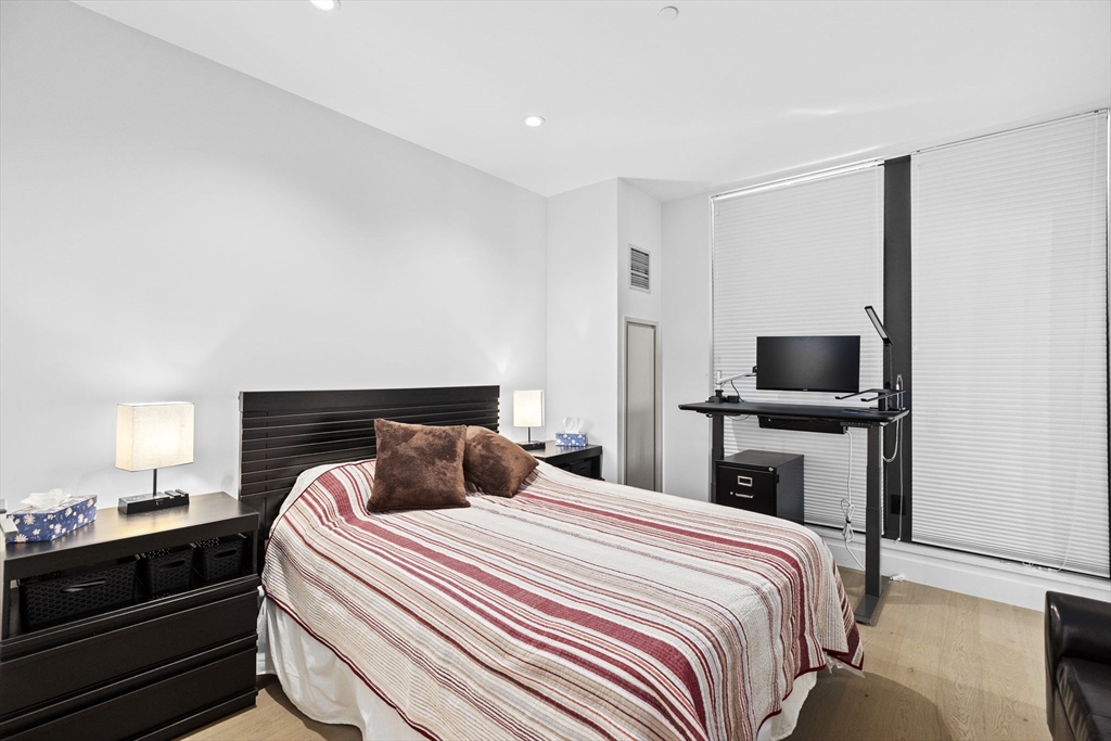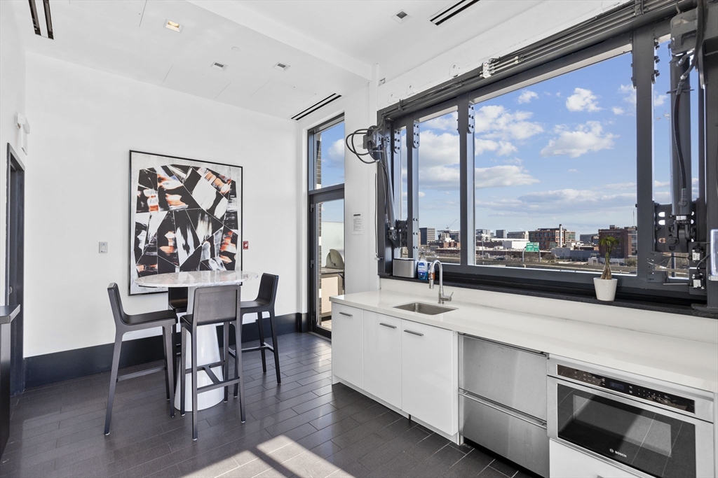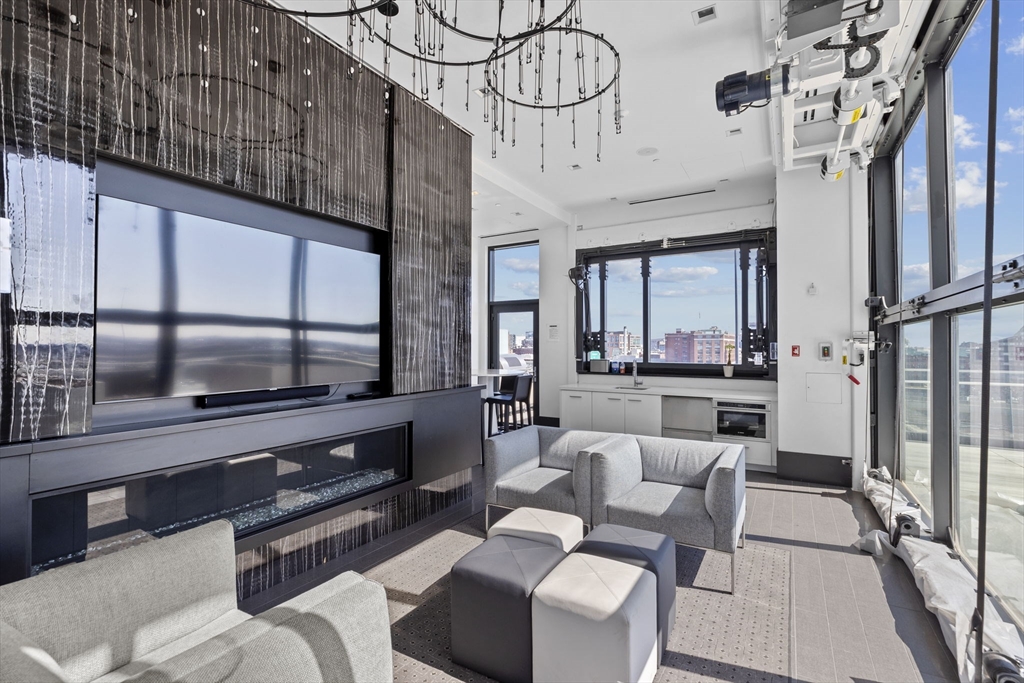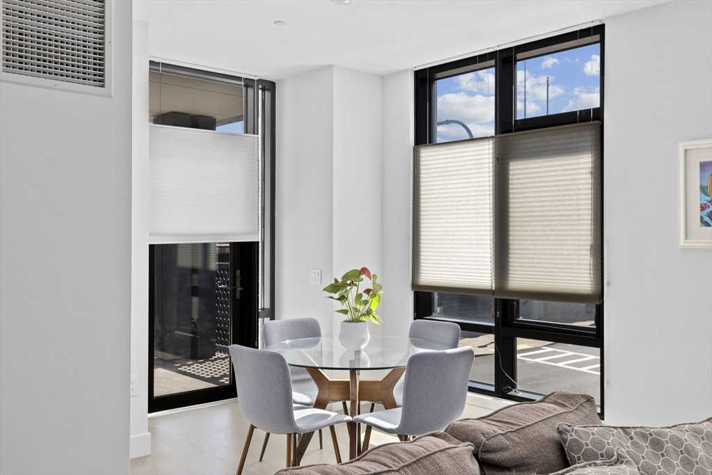 Siena-Ink Block desirable urban living neighborhood. Corner sun-filled unit boasts with high ceilings, floor to ceiling soundproofing windows - 2bd 2ba with contemporary fixtures. Offers a gorgeous open concept floor plan -living room, Premium appliance kitchen -gas 5 burner stove, sleek glass backsplash, quartz countertop, Center Island spacious to dine at with saddle stools Expansive sun filled entertaining space, dine area- leads to your private deck. Custom walk-in closets, soaking tub and glass enclosed shower bath are few amenities. Ample hall closets, elevator,24/7 concierge, bike storage, fitness center, clubroom on first level and rooftop sky lounge /roof deck with fireplace -entertain friends and family outdoor grills. Heated garage with EV charges #84 parking, heat, A/C, recessed and Lutron lights, custom blinds, pantry at entry, stack Bosch W/D. Walking neighborhood with Tatte, Whole Foods, Bar Mezzina many restaurants, I-90, 93 highways, amtrack nearby. Prof managed.