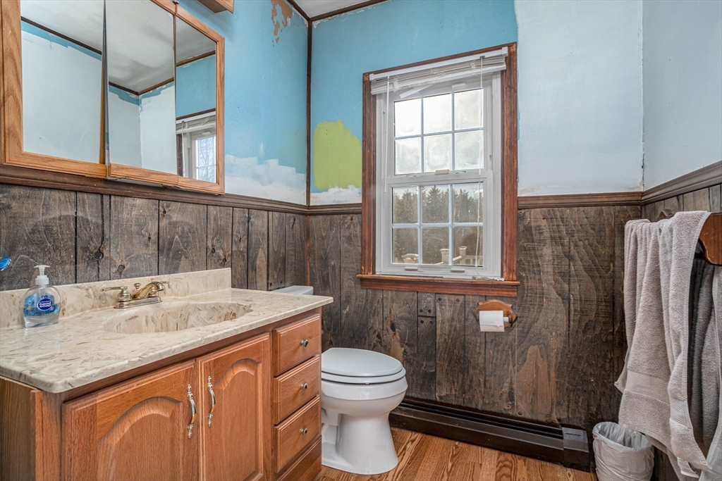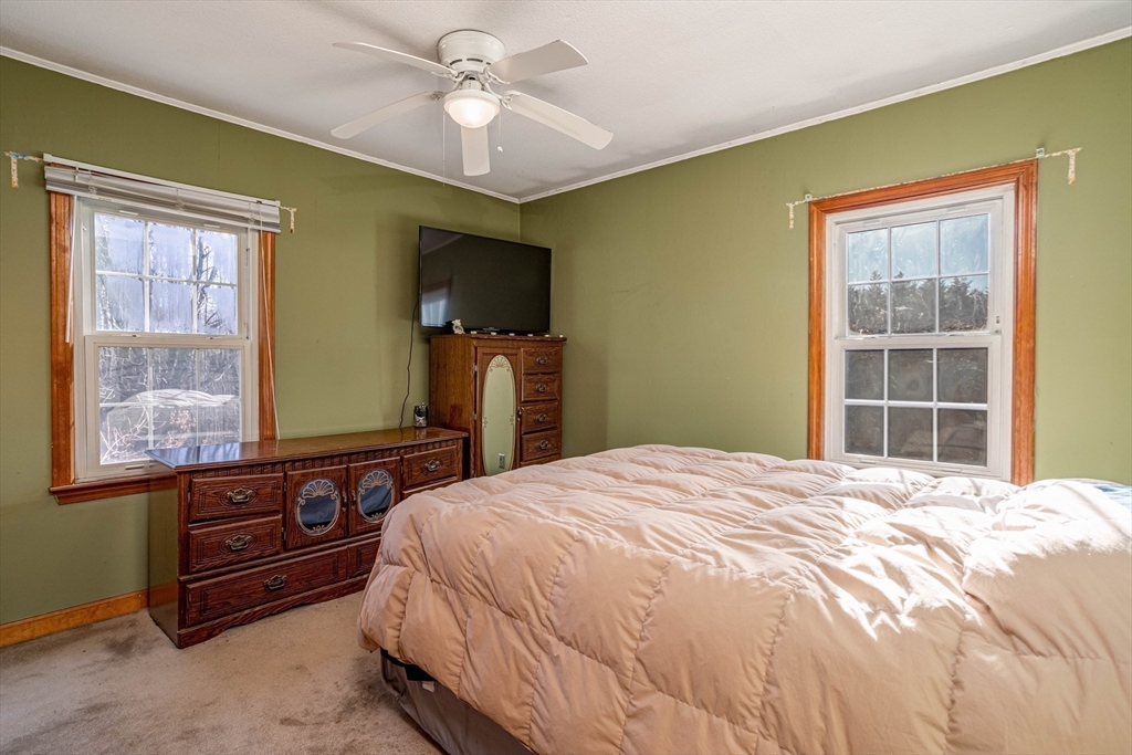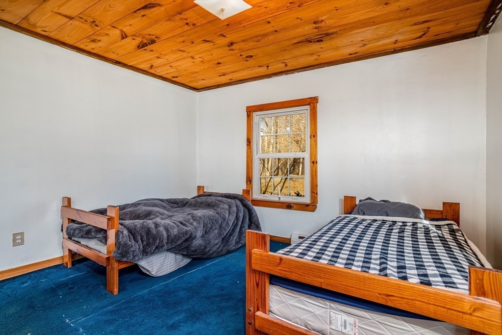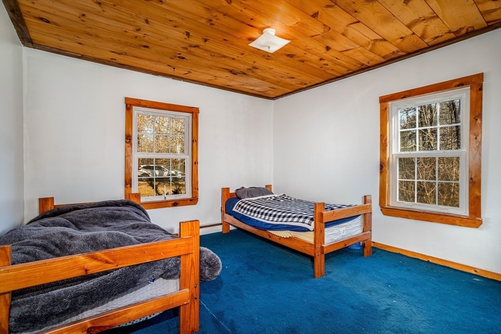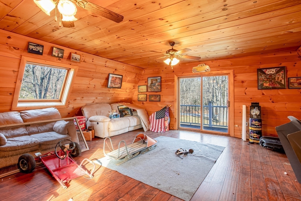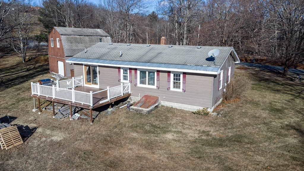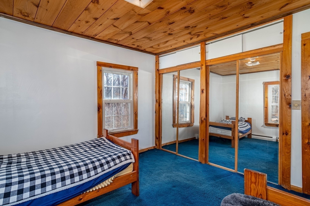 Location, Location, Location!!! Sprawling ranch located on a peaceful, less traveled road offering endless potential. Single level living at its best! This home boasts 4 bedrooms, 1 bath, bonus room above garage, charming details like wood ceilings, crown molding, a bay window and a cozy pellet stove to start! A must see! Spacious rooms. The kitchen and dining room each open to separate decks, creating great spaces for entertaining. Bring the outside in!! Enjoy 3 acres of peaceful mother nature! Enjoy morning coffee or afternoon drinks on one of your multiple decks. This home offers the ultimate blend of comfort and seclusion. The heated two car garage includes access to a finished bonus area above, (would be perfect for "man town" or office space), adding extra versatility. Newer furnace and flexible floor plan! Single level /One level living at its best! Come make this home your own!