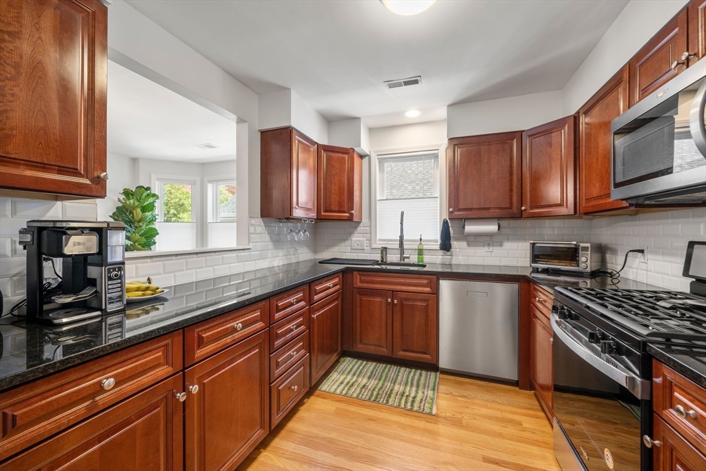 *NEW 15k Price Improvement OR can be taken as a closing cost credit * Spacious & light-filled 3-bedroom, 2-bath townhouse-style unit near desirable Fort Hill. A private entrance opens to a bright living room w/ recessed lighting, a dining room w/ bay windows, & a modern kitchen featuring granite countertops, pantry, & open sightlines. Hardwood floors extend to 2 bedrooms & a full bath, while the private master suite offers its own bath & sweeping Boston skyline views. Additional highlights include large closets, in-unit laundry, central AC, & a private elevated porch. The walkout basement provides an exclusive storage room (currently a homegym), & a tall attic adds generous storage w/ future potential. Recent upgrades include a full exterior renovation (2023) w/ new siding, trim, decking, acoustic windows, + a newly installed aluminum fence & resurfaced driveway (2024). Pet-friendly+professionally managed w/ strong reserves. 10-min walk to MBTA Orange Line and nearby several parks