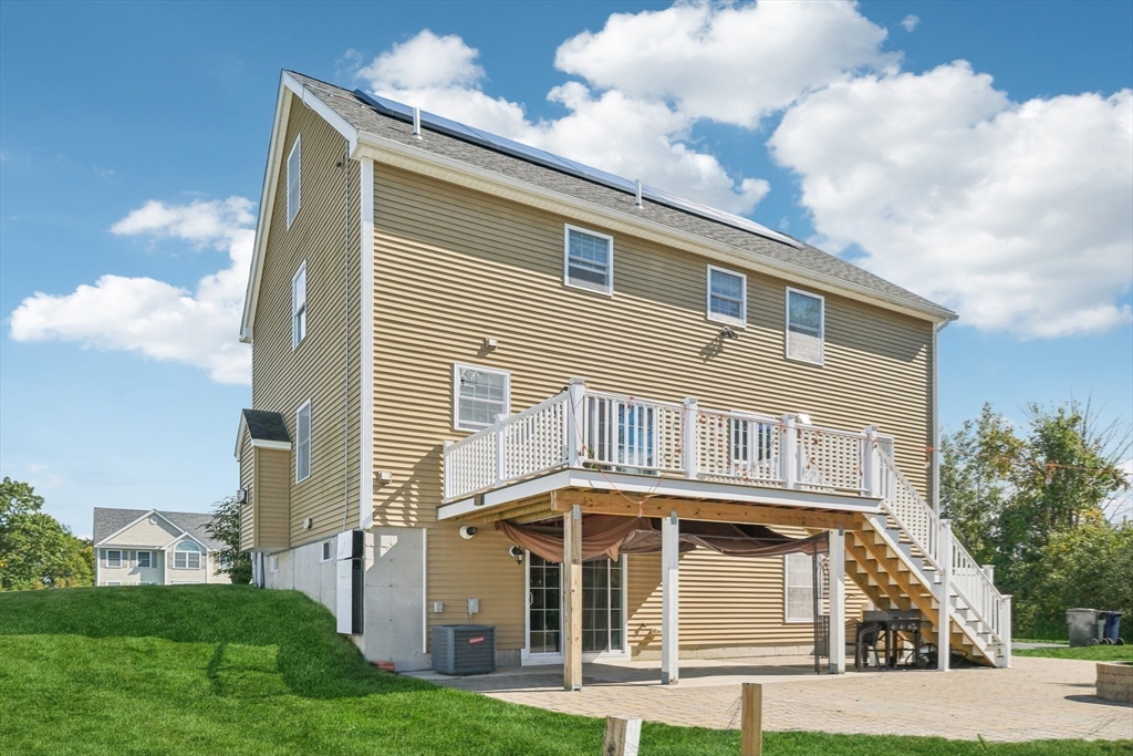 Wellness starts here. And with solar power + leased Tesla Powerwall, you’ll enjoy energy independence while offsetting your electric bills month after month. Morning coffee on the deck, watching apple trees sway and grapevines stretch in the sun, as the backyard wakes at the water’s edge; dinner by the fire pit as the day winds down. Inside, the colonial layout simply works: an inviting kitchen with granite and steel appliances, 1st-floor laundry, and spaces that flow for gatherings or quiet nights in. More thoughtful systems: whole-house filtration + RO for clean water at every tap, generator hookup for nor’easters, radon addressed. The walk-out lower level is ready for your next chapter. With central air, irrigation, a 2-car garage, and a cul-de-sac setting, this is the home you’ve been waiting for: the space of a single-family, the ease of a well-kept one, and the long-term value of smart upgrades.