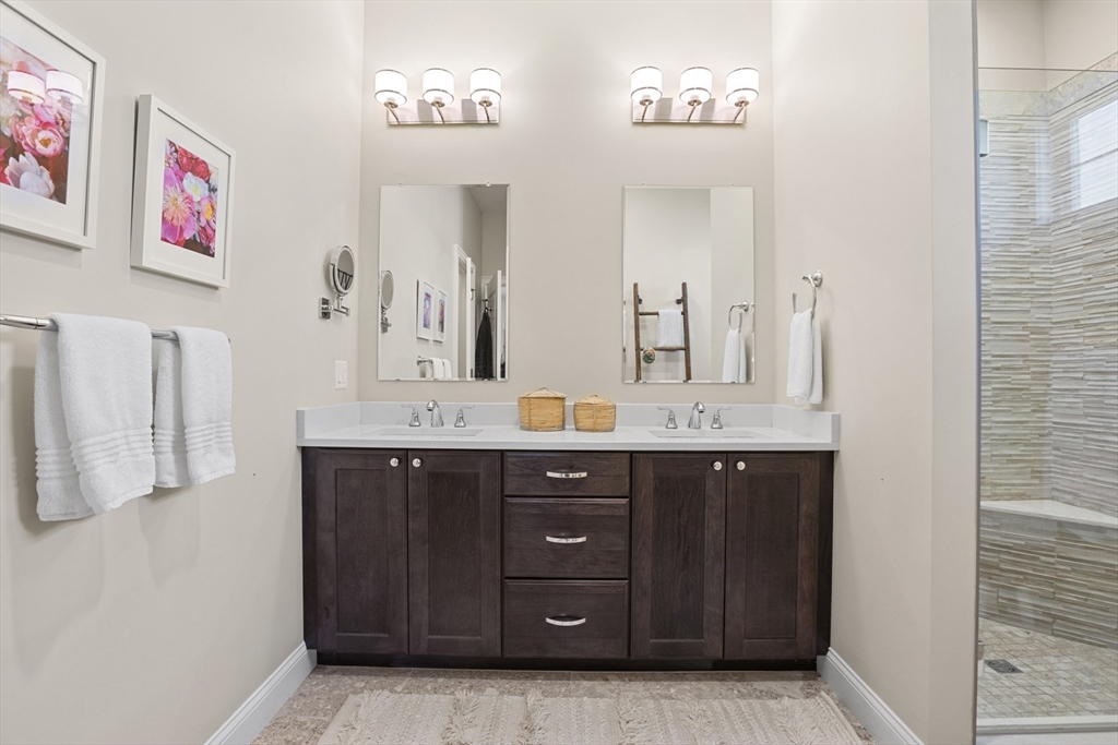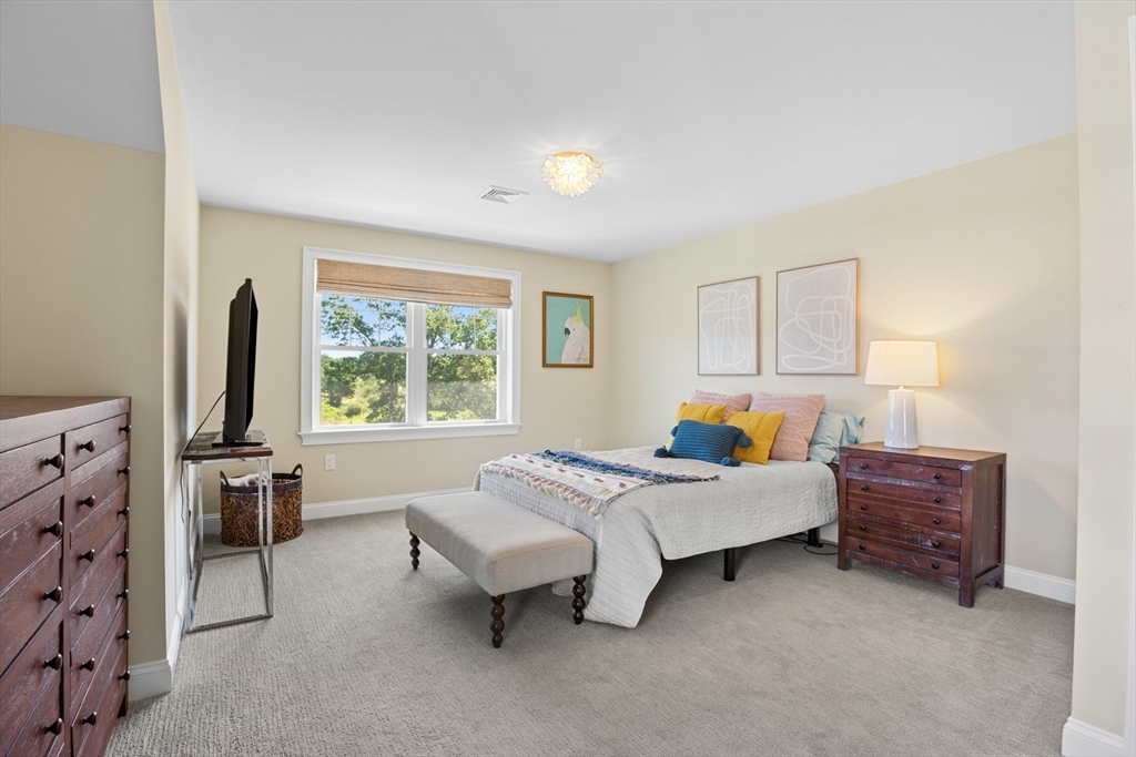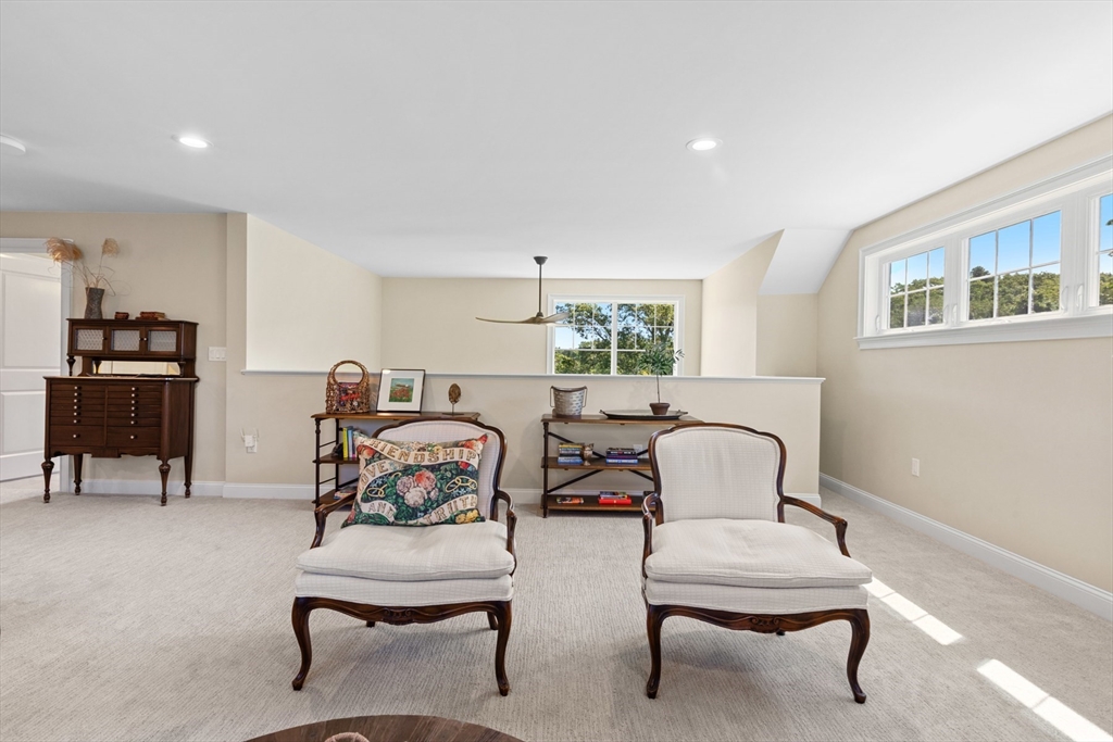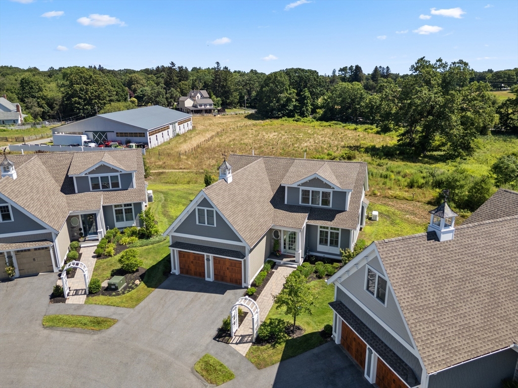 Welcome to The Village at Canter Brook Farm, Hamilton’s premier 55+ community. This detached single-family style townhouse offers the perfect blend of luxury, comfort, and convenience. Designed for easy first-floor living, the home features a private primary suite with a beautifully appointed bathroom, complemented by an open-concept kitchen, dining, and living area. High-end finishes and thoughtful details create a warm, inviting atmosphere. A sun-drenched sunroom, charming study/library and a half bath complete the main level. Upstairs, a spacious family room loft is ideal for movie or game nights. Also featured is a generously sized second bedroom, full bath, and a semi-finished bonus room for hobbies or storage. Outside, impeccably landscaped grounds frame a private patio, creating an inviting setting for outdoor enjoyment. All of this is set within a tranquil, pastoral community designed for an active, maintenance-free lifestyle with modern comfort and timeless New England charm!
