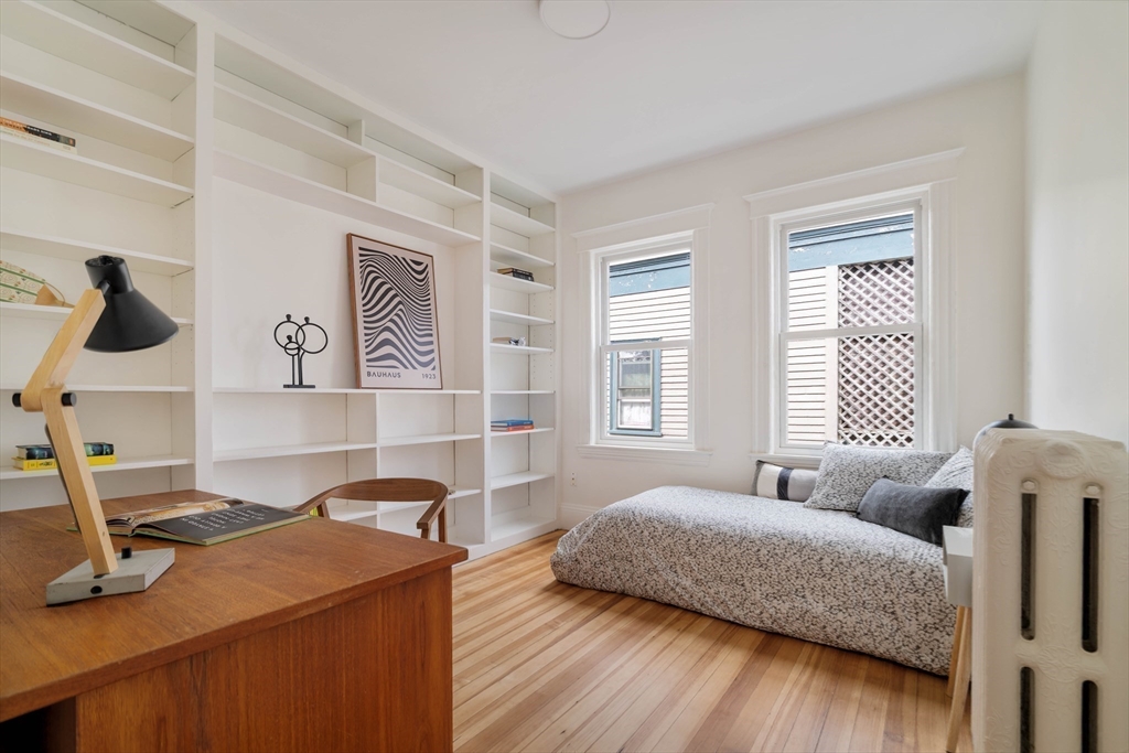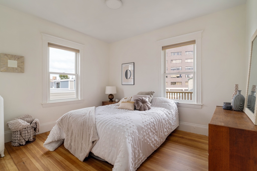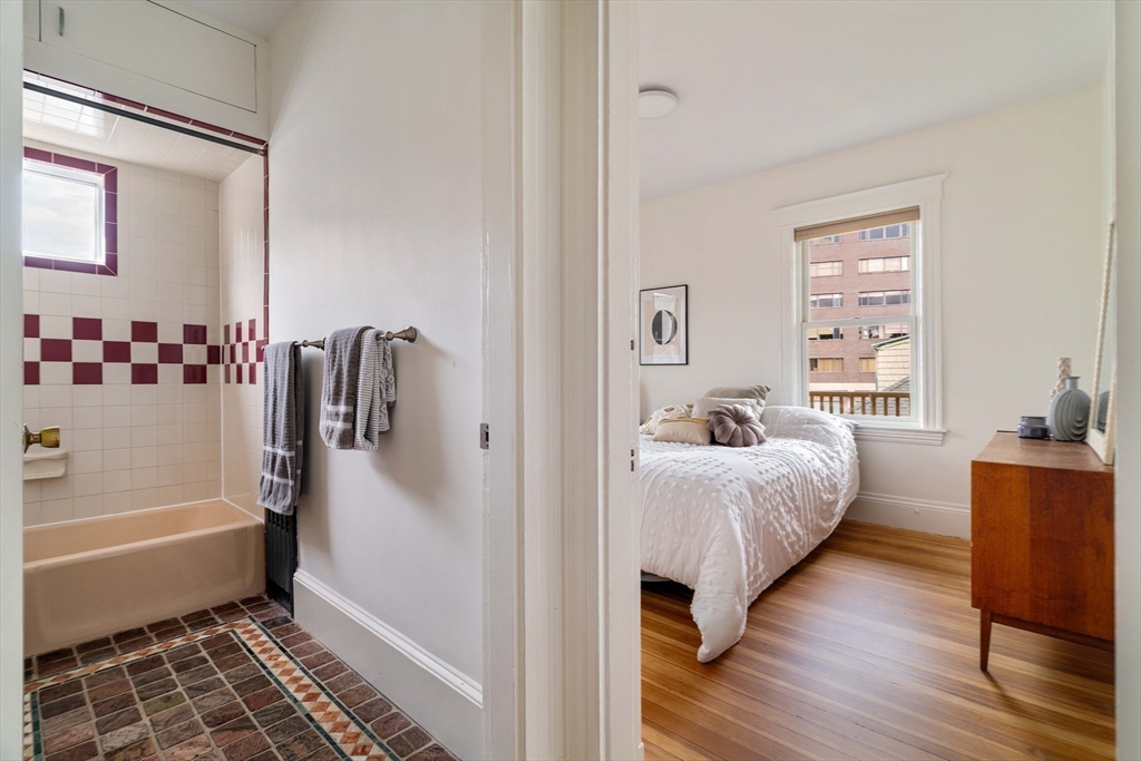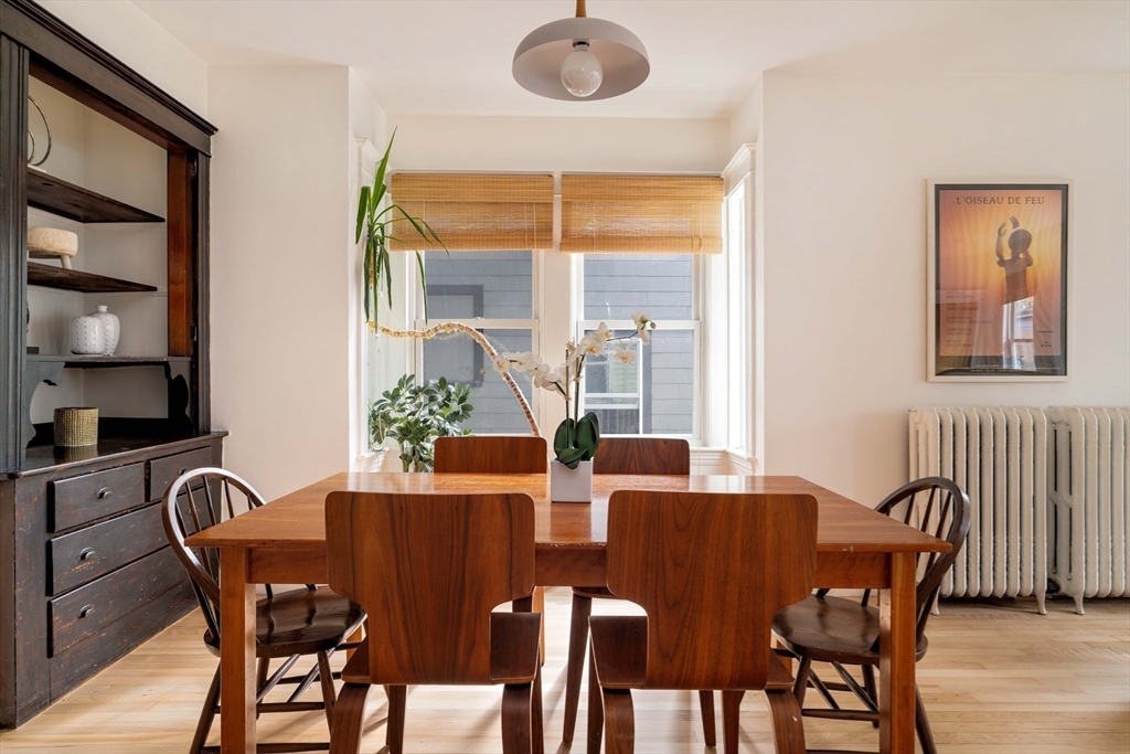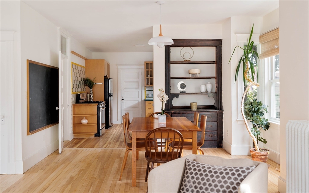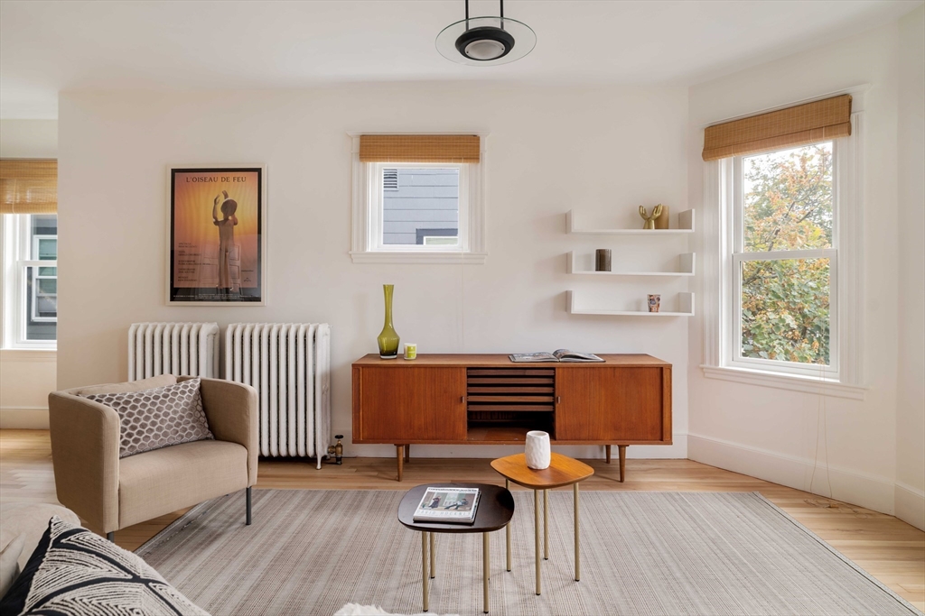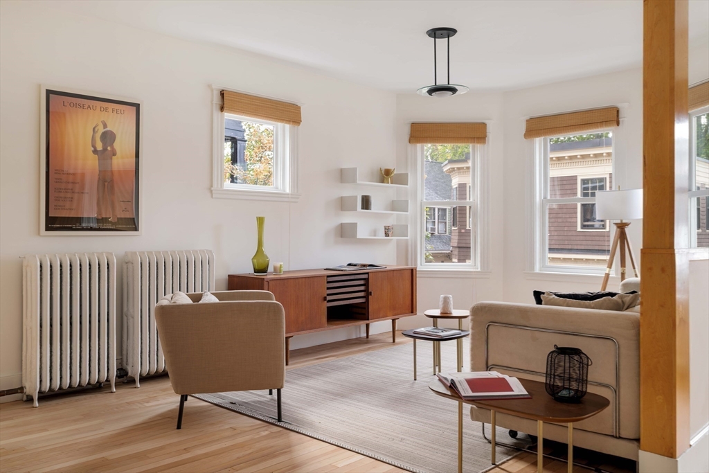 Top-floor, south-facing and flooded with natural light, this 3-bedroom flat crowns a 3-unit Victorian building in historic Mid-Cambridge near Maple Avenue and the Duffet Tot lot playground. With high ceilings, maple and fur floors, and two elegant bays, the home radiates warmth and space. The vintage kitchen was redesigned to welcome light through a large picture window, while a walk-in pantry off the rear bedroom offers a rare opportunity: convert it into a future ensuite bath. This classic layout blends charm and potential, inviting your creative vision. Enjoy a private covered deck, storage, and peaceful surroundings just moments from Harvard University, the shops and restaurants of Inman Square, and the Central Sq (0.8 mile) or Union Sq T stations (0.7 mile). Whether you're drawn to the architectural character, the sun-drenched interiors, or the promise of transformation, this top-floor condo offers a rare mix of serenity and possibility in one of Cambridge’s most coveted enclaves.