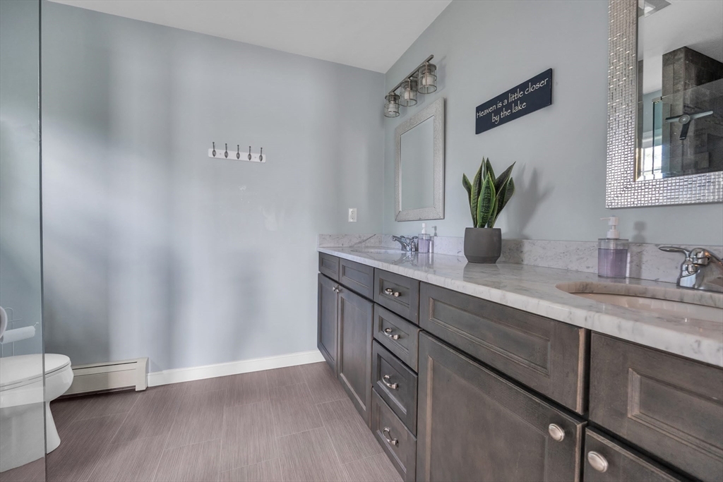 Discover lakefront living at its finest! This stunning 4-5 BR, 3.5 BA home on Cedar Lake boasts approx. 85 ft of waterfront with coveted Southwestern exposure for breathtaking sunsets. Completely remodeled in 2016, it features an open floor plan where the kitchen, dining & living rooms all showcase panoramic lake views. Step outside to a spacious composite deck perfect for entertaining, or retreat to the guest suite balcony overlooking the water. A 2-car detached garage, generous parking & U-shaped docks make enjoying lake life effortless. Tucked away on a quiet dead-end street yet minutes from Sturbridge’s dining, shops & highway access, you’ll love the balance of privacy & convenience. Whether hosting summer gatherings, savoring peaceful mornings on the water, or taking advantage of the home’s strong rental income history, this move-in ready property is a rare opportunity to own the ultimate lakefront retreat. Don’t wait—schedule your showing today!