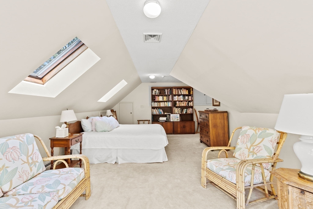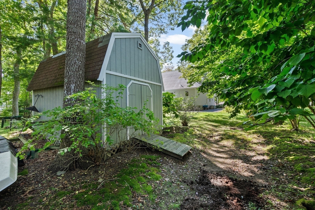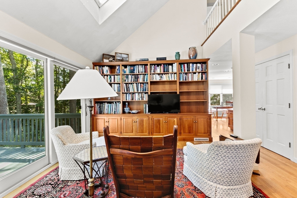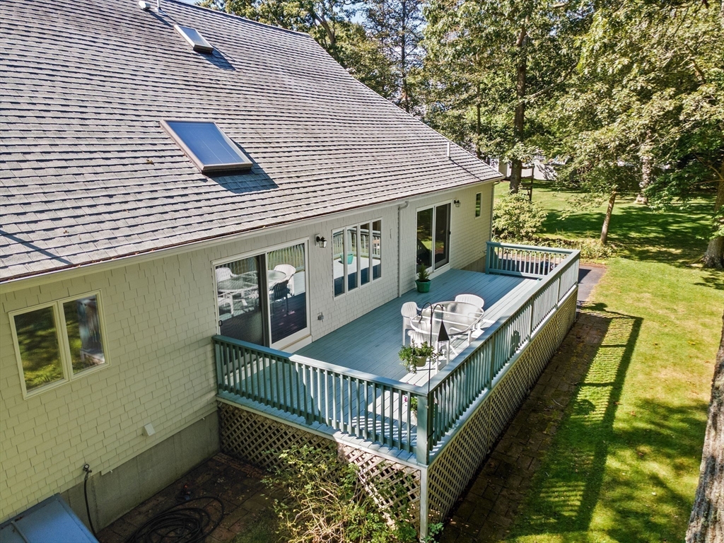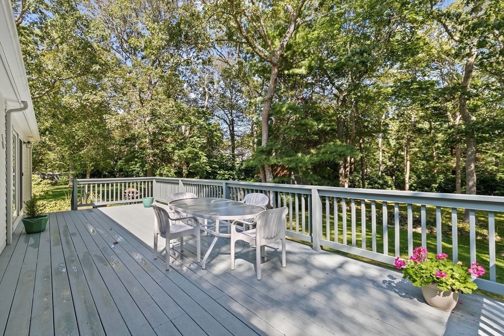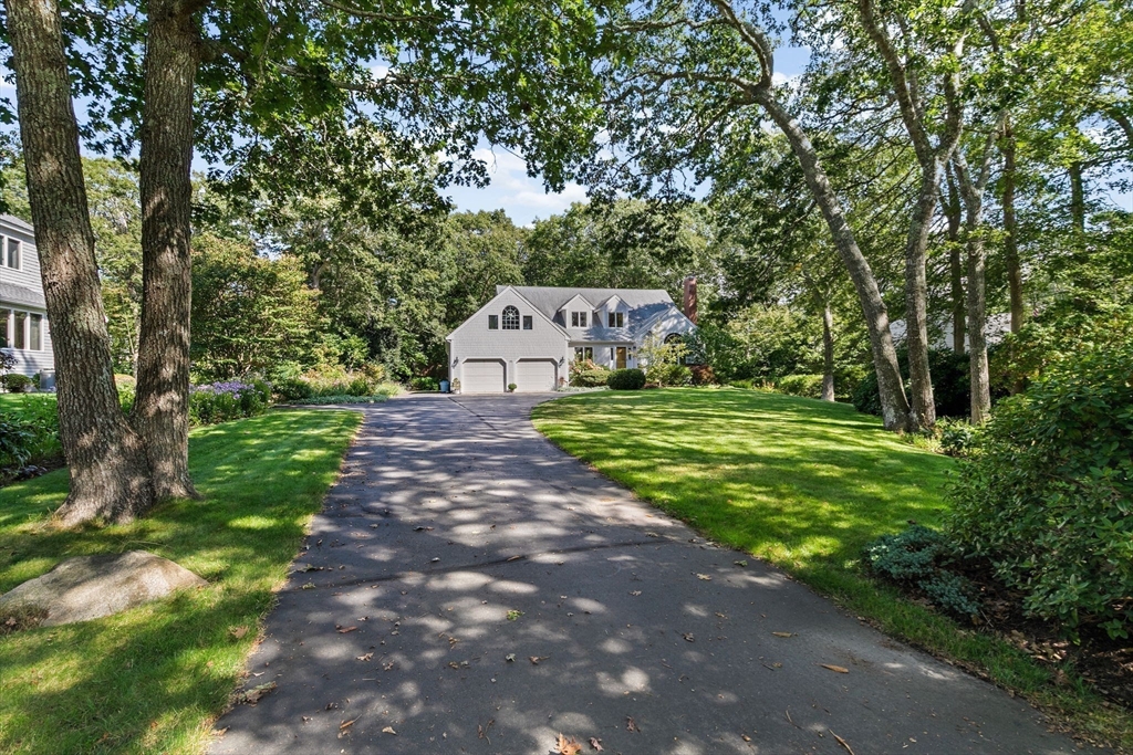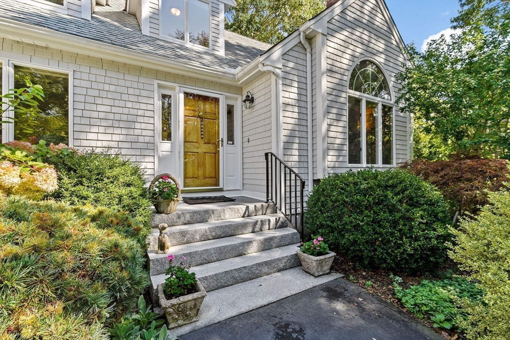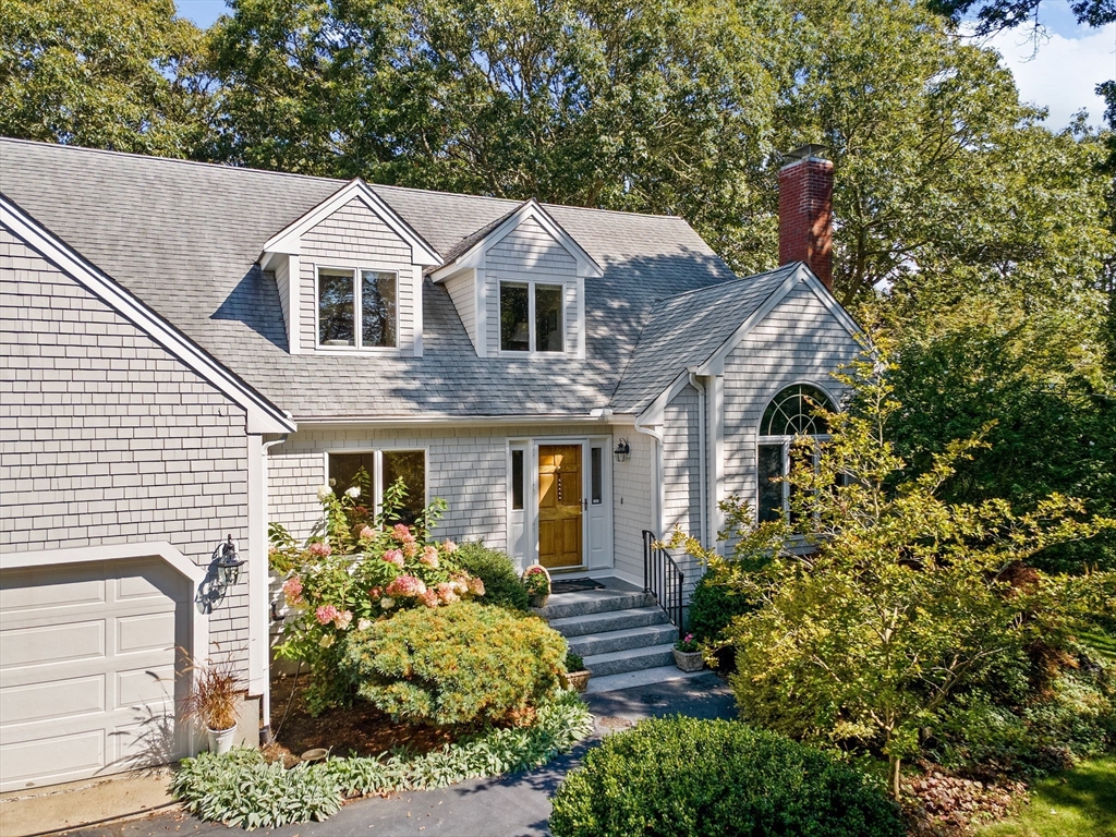 Privacy abounds in this well-maintained contemporary Cape located in the desirable Point Connet community. Offering 4 bedrooms and 3 baths, including a first-floor primary suite with en suite bath, the home features vaulted ceilings, sun-filled spaces, a cozy fireplace, cherry wood built-ins, and ample storage. The park-like grounds invite you to step outside, with a spacious deck overlooking a private backyard—perfect for relaxing, entertaining, or enjoying nature. Recent updates include a new roof, furnace, hot water heater, granite entry stairs with railing, new bulkhead, and freshly painted exterior. A two-car garage and location outside a flood zone add peace of mind. Discover the timeless charm of Point Connett, the sandy beach is just a stroll away, nearby are the newly refurbished tennis/pickleball courts, and just outside of the association enjoy the land trust walking trails.