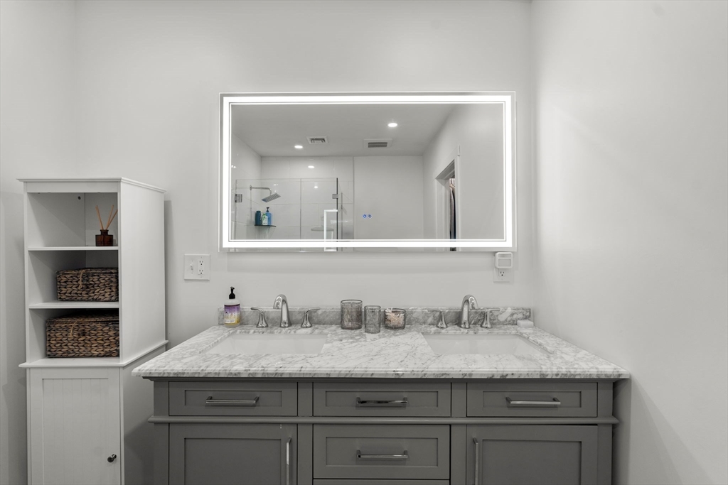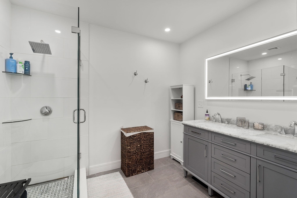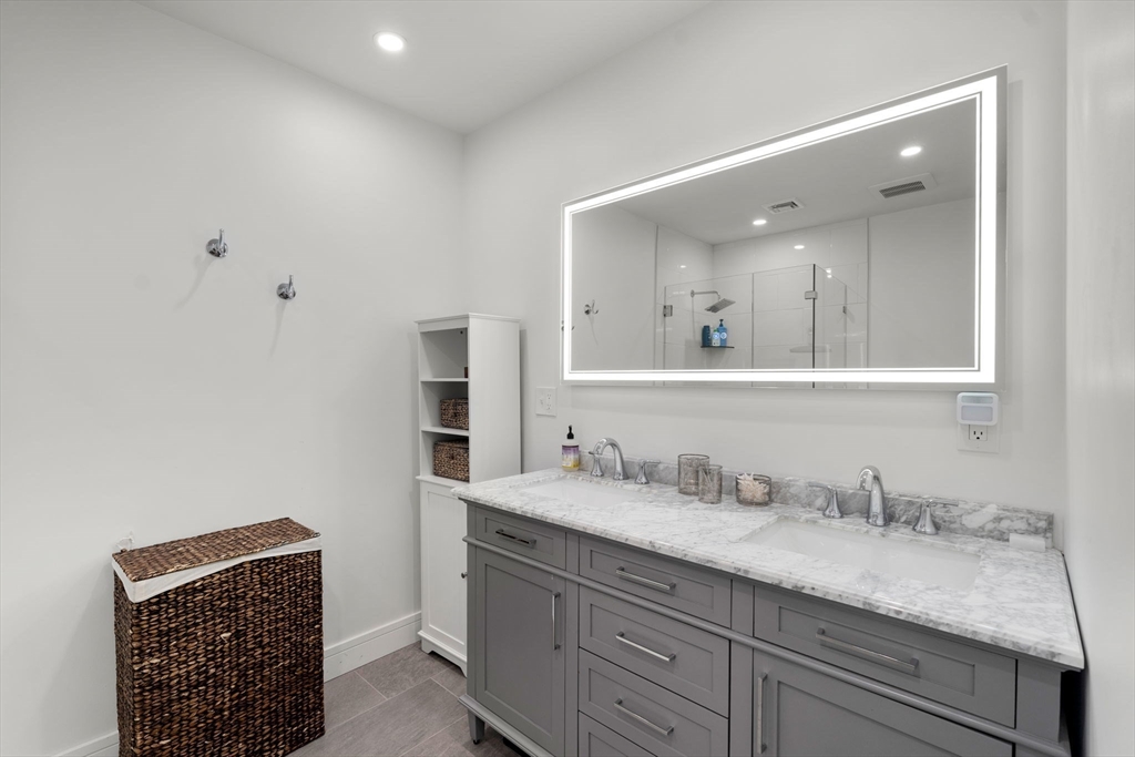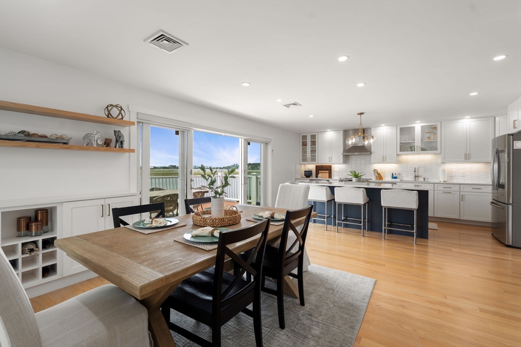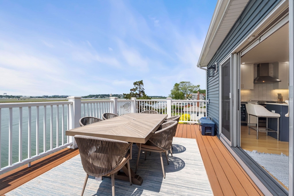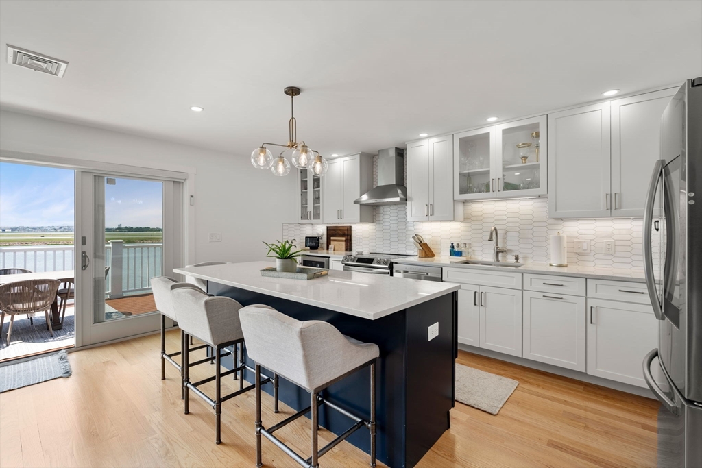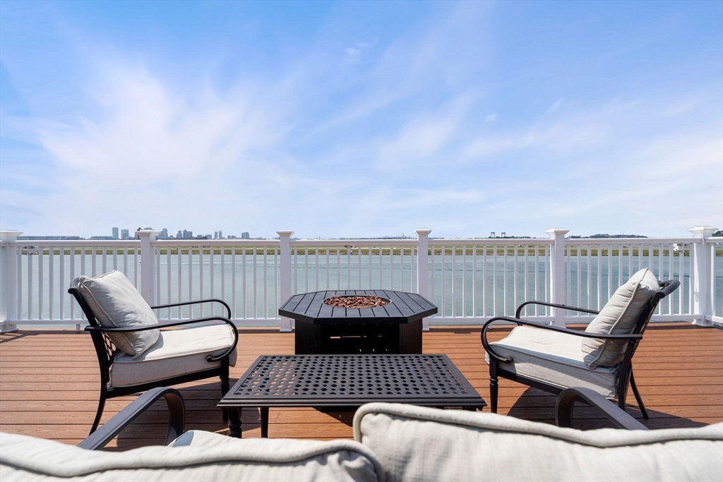 Coastal luxury meets modern elegance in this completely renovated 4-bed, 3.5-bath waterfront condo with breathtaking ocean and Boston skyline views. Unit 3 at 191 Court features two private owner’s suites on separate levels, sleek modern bathrooms, and an open-concept living/dining area filled with natural light and ocean breezes. The chef’s kitchen boasts premium Samsung stainless steel appliances, quartz countertops, custom cabinetry, designer lighting, and ample storage.Two expansive private decks offer panoramic harbor views, perfect for entertaining or unwinding while watching stunning sunsets. High-end finishes,wide-plank hardwood floors,central air,custom built ins and high-efficiency systems elevate every detail. Perfectly situated in Winthrop’s desirable Court Park neighborhood, you’re minutes from Boston, Logan Airport, Orient Heights Blue Line, & the transformative Suffolk Downs redevelopment.This rare oceanfront gem offers the ideal blend of style, comfort, and convenience