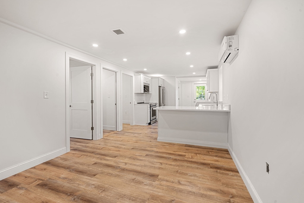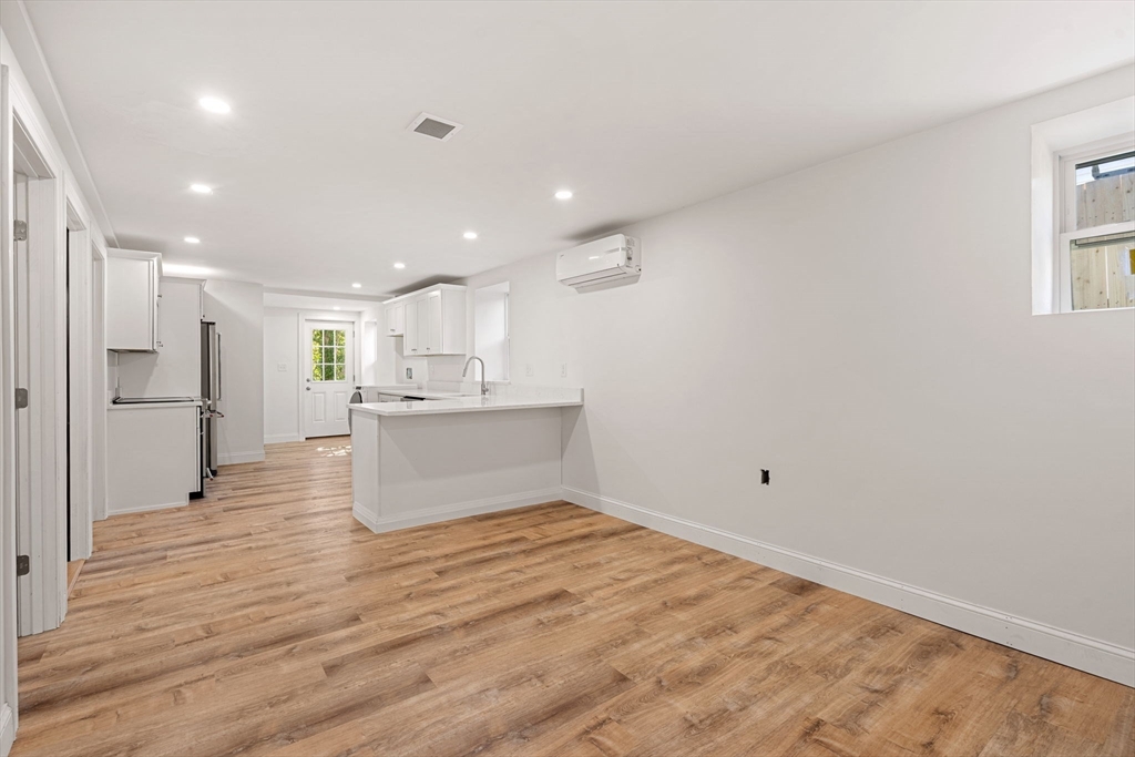 Welcome to this spacious and meticulously updated single-family with potential for a legal and permanent ADU/in-law suite, nestled in the heart of Salem. With five total bedrooms and three and a half baths, this home has been completely reimagined with brand new plumbing, electrical, foam insulation, multi-zone high efficiency heating and cooling with ductless mini-splits. The lower level in-law suite/ADU, with private entrances, has a full kitchen with stainless KitchenAid appliances and quartz countertops, living room, two bedrooms, one bath with tiled shower and laundry. The first level features an open layout with a living and dining room, modern kitchen with stainless KitchenAid appliances, quartz countertops, main bedroom with private full bath and walk-in closet, and additional one half bath with laundry. Two additional bedrooms, spacious walk-in closets and 3/4 bath on the second level. Detached one-car garage, large new patio area, with newly paved driveway and landscaping.