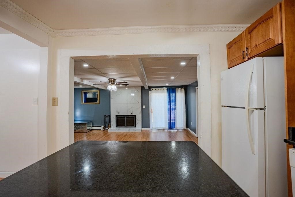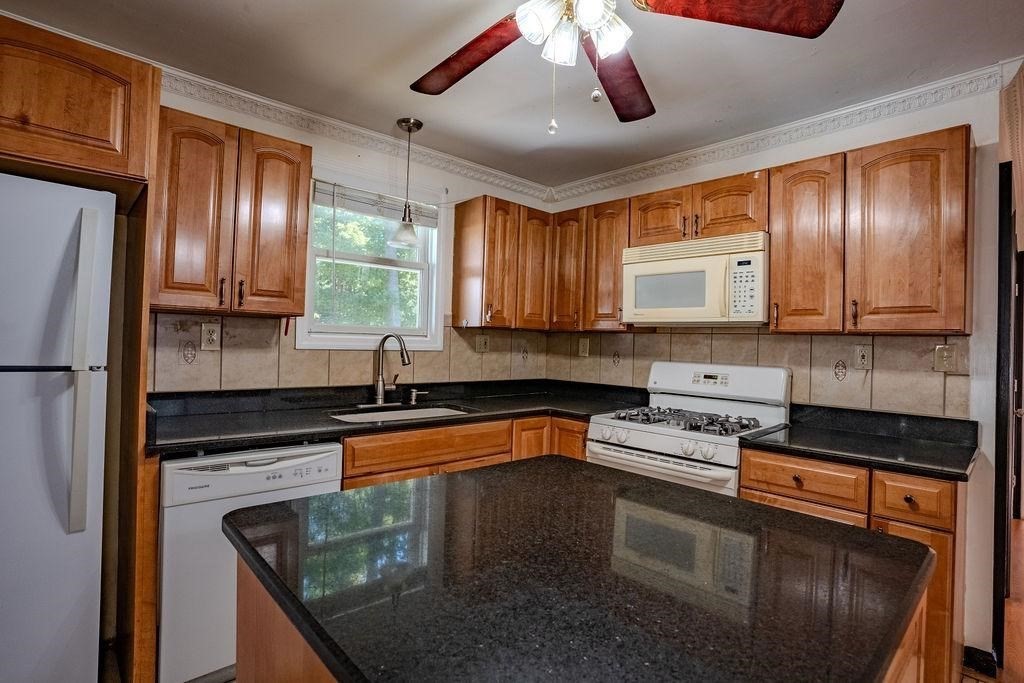 Charming Ranch in a Desirable Dracut Location. This well-maintained ranch offers the ease of single-level living with 3 spacious bedrooms, all featuring oversized closets, and a full bath with the convenience of first-floor laundry. The kitchen is designed with granite countertops and a center island, opening to a step-down living room highlighted by a modern fireplace. From the living room, access a large side deck with gazebo overlooking the expansive yard, complete with a firepit for outdoor enjoyment. An extra-large storage shed adds functionality, while significant updates provide peace of mind — including most windows, flooring, kitchen, and bath completed in 2010, along with a new metal roof and siding in 2024.This property combines comfort, style, and recent upgrades in one of Dracut’s sought-after neighborhoods. An excellent opportunity not to be missed! OPEN HOUSE Saturday (09/27) and Sunday (09/28) from 1pm to 3pm