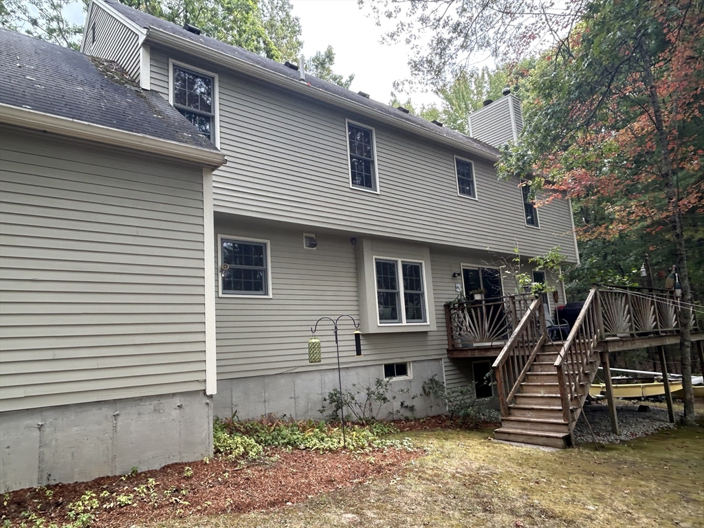 ORIGINAL OWNERS! Recently remodeled, commuter’s dream home, located in a quiet, five home cul-de-sac neighborhood; that is 10 minutes to Rt. 3 & Rt. 495. This 2 acre property consists of 9 rooms, 4 bedrooms, 2.5 baths, & a 2 car garage. The kitchen & 2 baths were completely remodeled 5 years ago. In the kitchen are granite countertops, stainless steel appliances; including a professional dual, 6 burner stovew/hood, & pantry. The front/back family/living room has a fireplace, wide oak floors, & sliders to the deck. The 4 bedrooms & upstairs hall way have Brazilian cherry hardwood floors. Heating (Buderus) & hot water sys. have been updated within the last 8 years. A walkup attic, for extra storage/expansion, & thru Main bedroom, a Bonus room which can be used as an exercise room, home office, or whatever needed. The walk-out basement provides ease for storage, & having 2 full sized windows, provides natural light for future game/playroom? Sprinkler sys. & newer electrical panel too!
