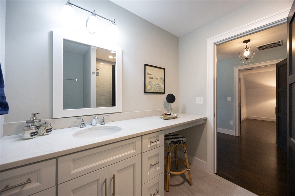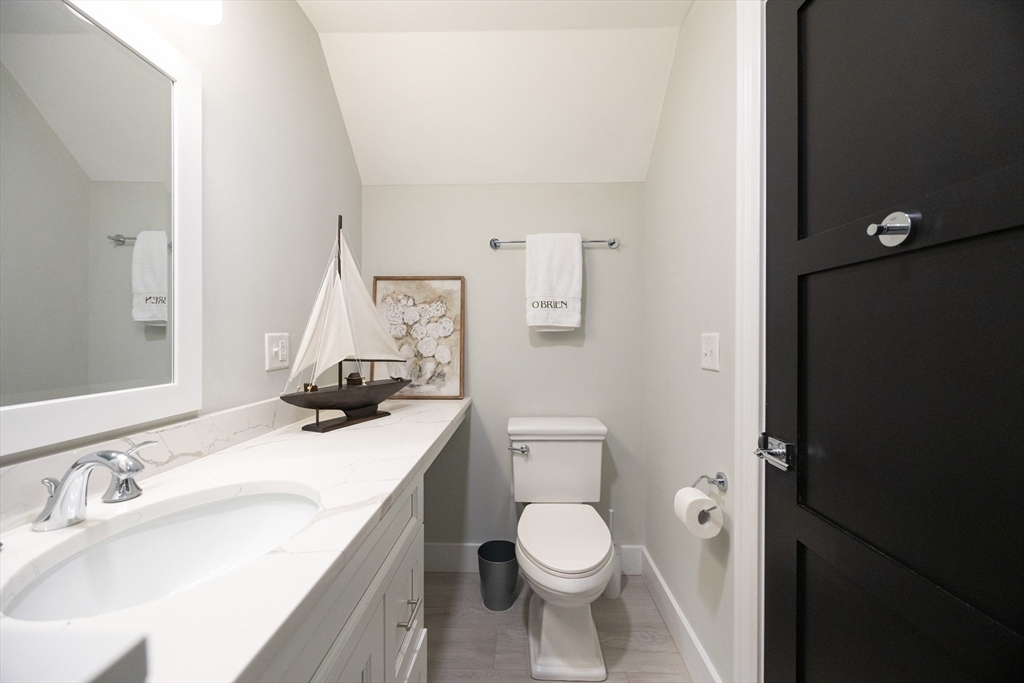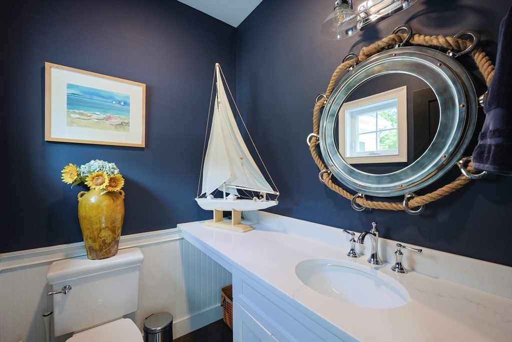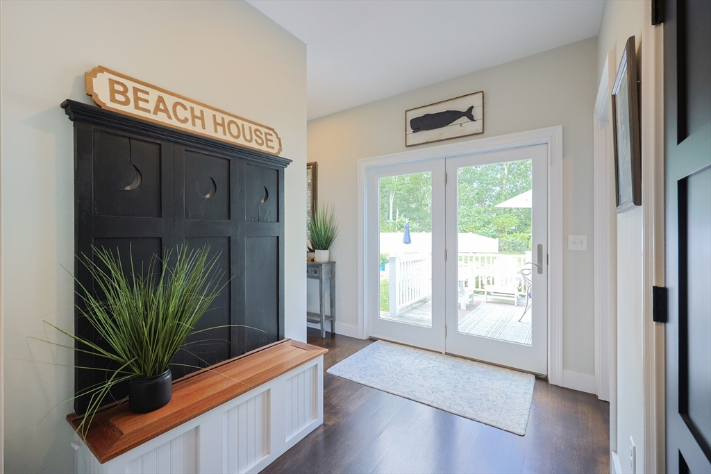 Welcome to 20 Crestview Drive; a stunning custom-built Cape-style home completed in 2020, offering over 3,400 sq ft of refined living space with views of Cape Cod Bay. Owned by the builder/designer, this home blends thoughtful craftsmanship with elegant finishes. Set atop a hill in a well-established neighborhood, it features deep, classic hardwood floors, a first-floor primary suite with walk-in closet and incredible en-suite bathroom with a standalone tub and oversized walk in shower. The vaulted great room and stone wood-burning fireplace lead to a beautifully crafted gourmet kitchen equipped with high-end stainless appliances, walk-in pantry, and quartz/granite countertops. Each upstairs bedroom includes a private en-suite bath with tiled walk-in shower. Outside, enjoy a fenced-in yard, heated saltwater pool, and two-car garage. Full-height unfinished basement offers future potential. Just 1.5 miles to East Sandwich Beach, this move-in ready home is ideal for families and more.