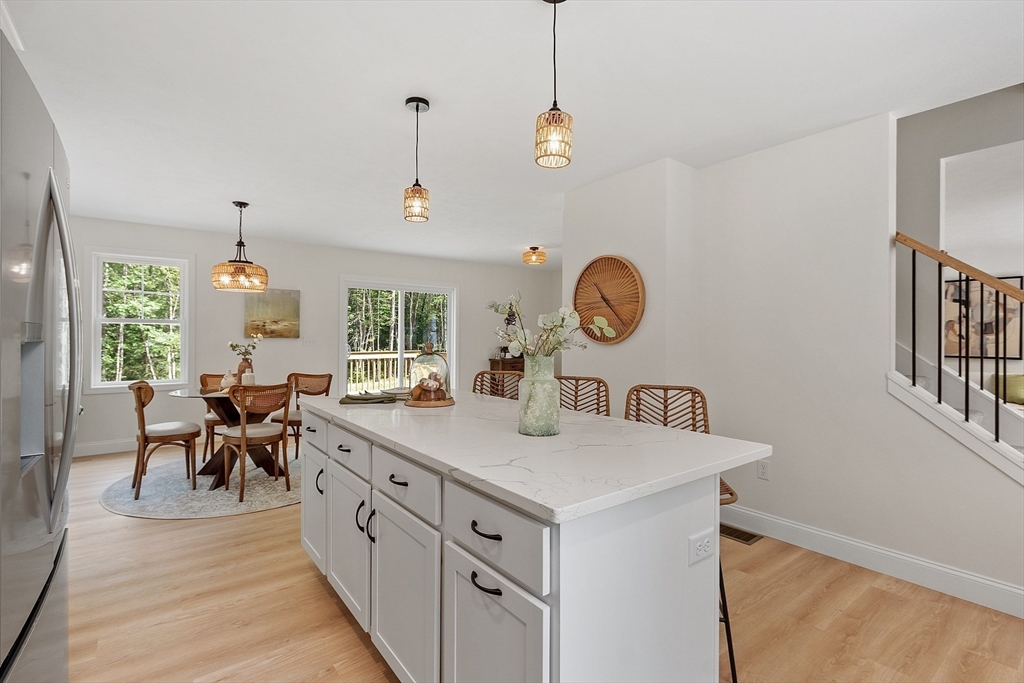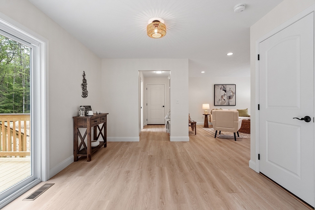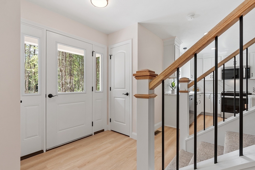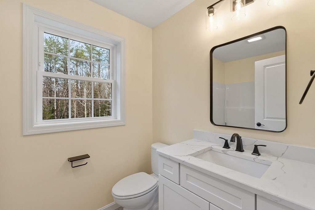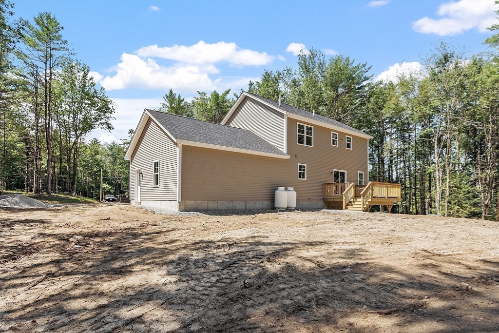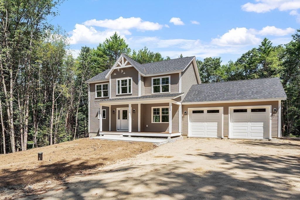 UPGRADED THROUGHOUT - Complete and brand new Colonial nestled off the road on 2.7 acres in a serene corner lot setting. This home features an open concept main floor with a spacious living room, dining area and mudroom. The mudroom has half bath & custom bench. The fully applianced kitchen features quartz countertops AND a matching quartz backsplash as well as Maple cabinetry and an island. From the dining area, you can step out to a 12x14 sun deck overlooking your very private backyard. Upstairs the primary suite offers a tray ceiling, a sitting area,a custom barn door to the walk-in closet plus a tiled walk-in shower, dual vanities. The common full bath and separate laundry room both feature tile flooring. Enjoy the farmers porch with composite decking PLUS central A/C, a walk-out basement that could be future living area, an attached 2-car garage. Doyle Estates is a neighborhood of new homes. QUICK CLOSING AVAILABLE. The seller will contribute towards a buyers rate buy down.