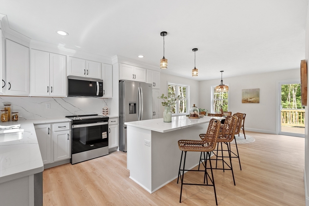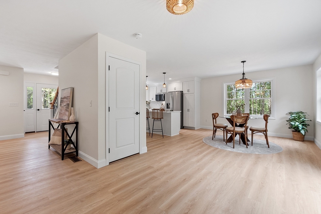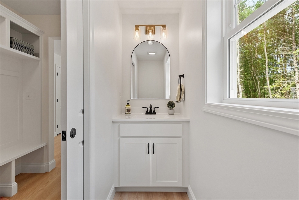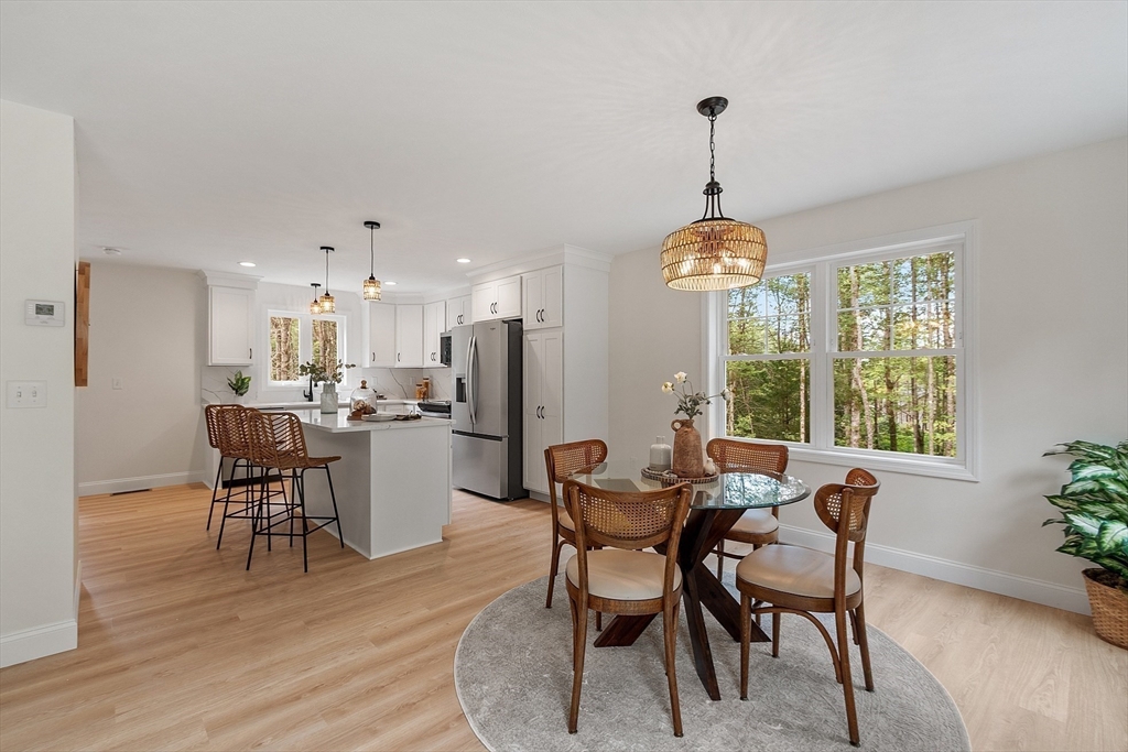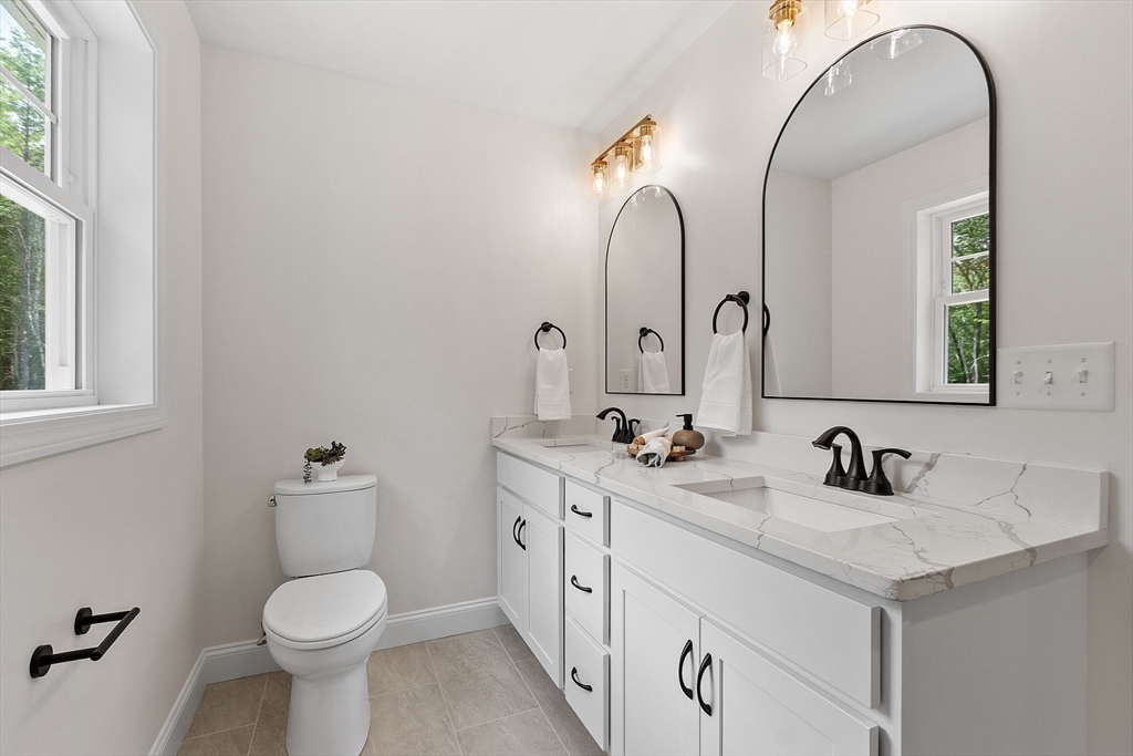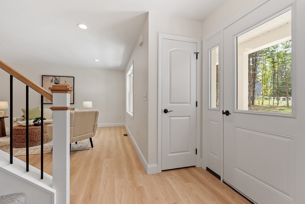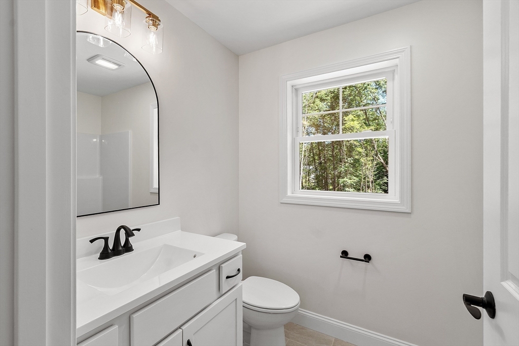 UPGRADED THROUGHOUT - Complete and brand new Colonial nestled off the road on 2.7 acres in a serene corner lot setting. This home features an open concept main floor with a spacious living room, dining area and mudroom. The mudroom has half bath & custom bench. The fully applianced kitchen features quartz countertops AND a matching quartz backsplash as well as Maple cabinetry and an island. From the dining area, you can step out to a 12x14 sun deck overlooking your very private backyard. Upstairs the primary suite offers a tray ceiling, a sitting area,a custom barn door to the walk-in closet plus a tiled walk-in shower, dual vanities. The common full bath and separate laundry room both feature tile flooring. Enjoy the farmers porch with composite decking PLUS central A/C, a walk-out basement that could be future living area, an attached 2-car garage. Doyle Estates is a neighborhood of new homes. QUICK CLOSING AVAILABLE. The seller will contribute towards a buyers rate buy down.