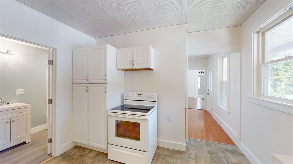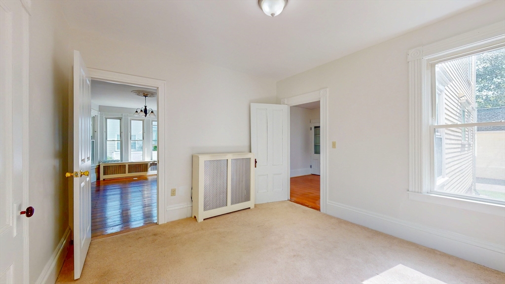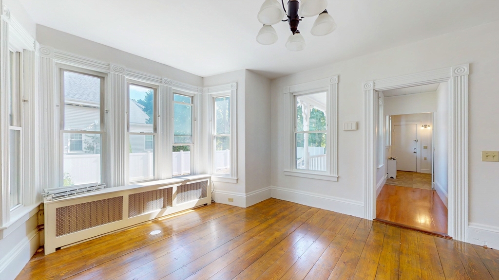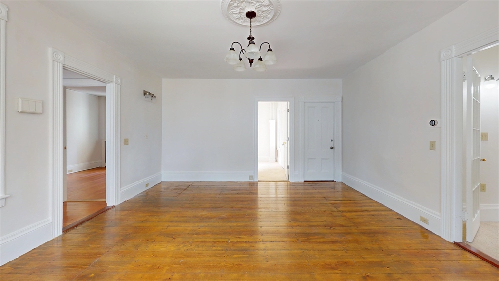 Large 3bd, 1bth, 1st floor, renovated bathroom, wood floors and some carpet. Shared yardspace. Gas heat and electric. no pets or smoking. 1st, last and $1000 security. No Laundry but a laundromat nearby in the center. Water/sewer/trash included. Credit, income, and references checked.