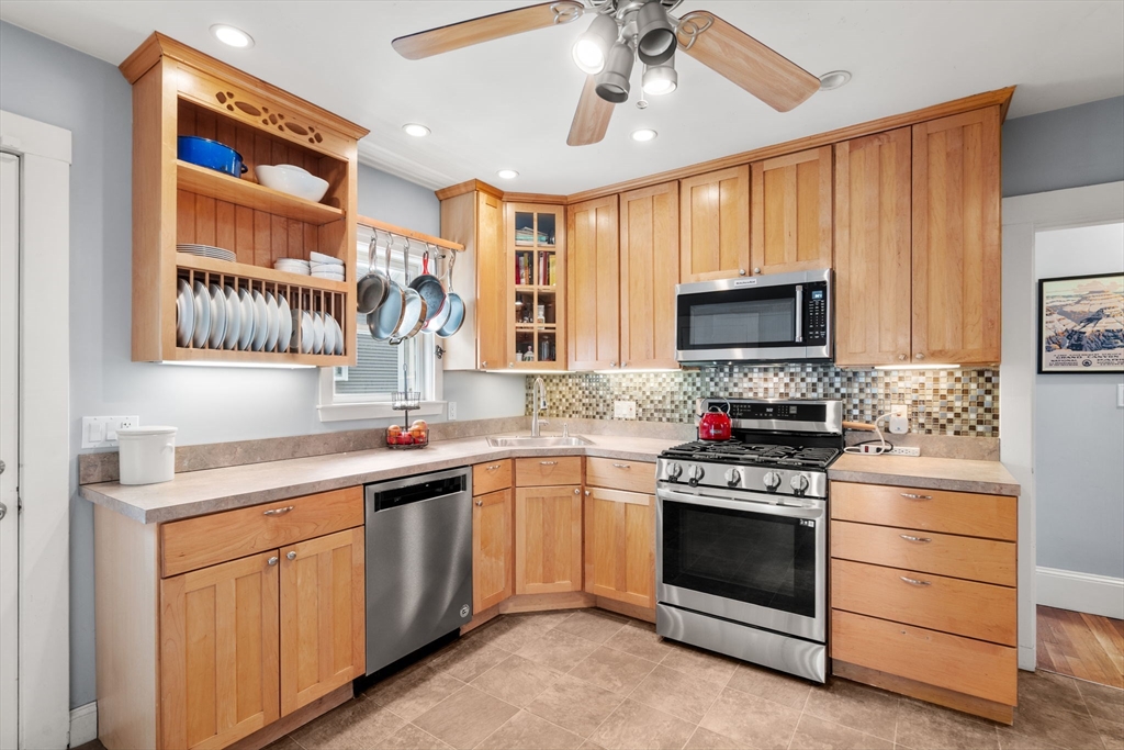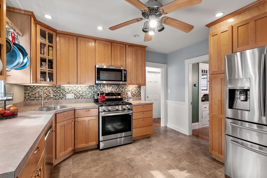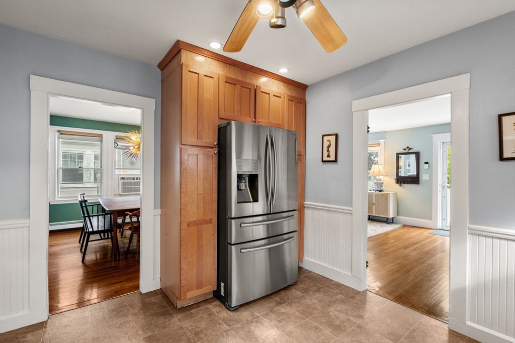 Spacious Updated Bungalow Near East Milton Square. Welcome to this move-in-ready home located on a desirable side street in one of Quincy’s most sought-after neighborhoods. This charming home features a spacious living room with a wood-burning fireplace, flowing into a formal dining area with classic built-ins.The kitchen offers beautiful cabinetry and updated appliances, perfect for everyday living. Two bedrooms are conveniently located on the main level. Upstairs, you'll find a generous primary bedroom with a walk-in closet and a half bath (2021).The finished lower level provides additional living space, including a potential fourth bedroom or home office, a large family room with wet bar, another half bath, and a laundry area. Recent Updates Include:Navien tankless combi boiler & water heater (2020) / Roof, siding, and gutters (2020) /Front stairs and garage door (2017) /Side porch (2020). All this within easy access to highway, shops, restaurants, and public transportation.