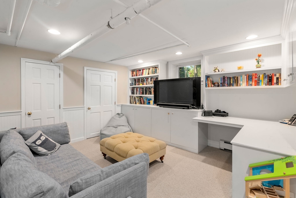 Beautiful and bright 1920’s brick & shingle colonial in a prime central Wellesley location near the town center, train, and Brook Path, and within the rare “school triangle” – close to the elementary, middle, and high schools. This classic home sits on a professionally landscaped lot with a fenced yard, expansive deck, and two-car garage. Inside, charming period details blend seamlessly with modern updates, including a sun-filled kitchen with breakfast nook, elegant formal rooms, a partially finished lower level, and a finished attic office (bonus 642 sq.ft. in attic: office/and 5th bedroom). Key features include central air, 200-amp electrical service, an in-ground sprinkler system, and a cobble-lined driveway, high-efficiency Burnham boiler, custom whole-home networking and AV systems, and custom closet installations in all bedrooms. Handsome details, thoughtful improvements, and a superb location make this home truly move-in ready. List of Improvements, Matterport & video attached.