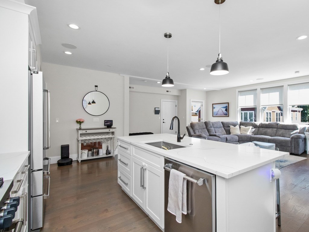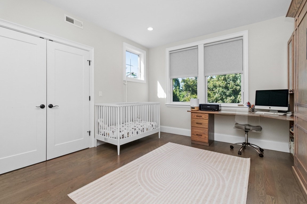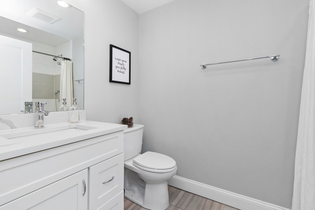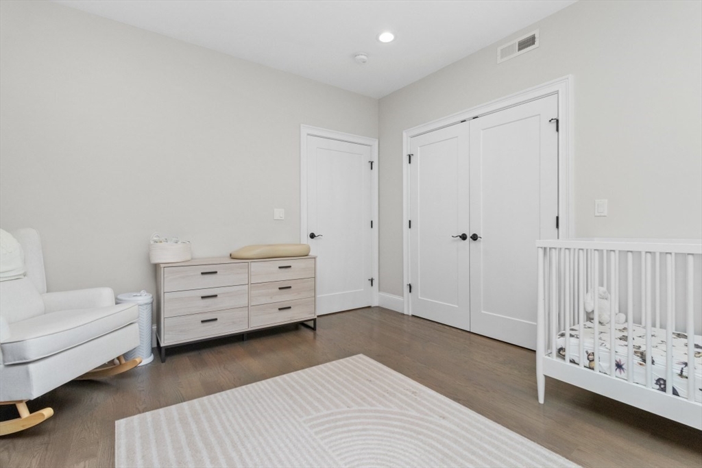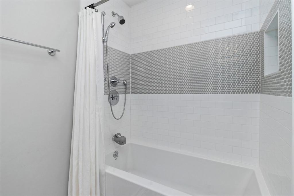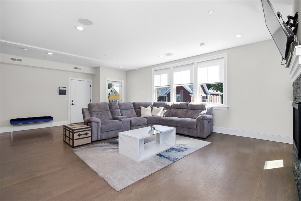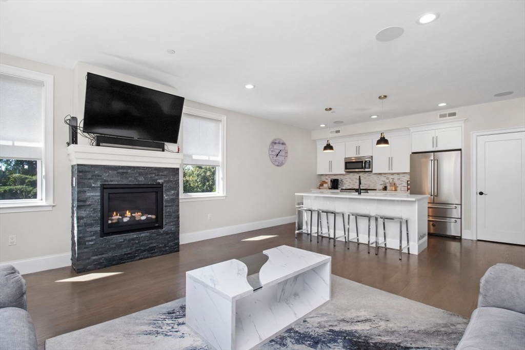 Pristine penthouse living in Dorchester’s coveted Clam Point! A rare find 2 bed 2 bath w/ almost 1,300 SF on one level w/ 2 off-street parking spaces. This 2018 exceptionally built unit boasts a wide open floor plan w/ gas FP in living room, kitchen island w/ seating for 4, top of the line SS appliances w/ range hood, quartz counters, front glass railing deck, full guest bath, primary bed w/ an inviting deck, walk-in closet w/ custom built-ins, en-suite bath w/ enclosed glass shower, guest bed is generously sized & also has custom built-in oversized closet. No detail has been overlooked: immaculate HW floors throughout, recessed lighting, Central AC, in unit W/D, surround sound speakers, high ceilings, excellent natural light, ample closet space thru-out. Located on a dead end street in an quiet neighborhood w/ easy access to the T, highway, and Dorchester shops/restaurants. AVAILABLE JANUARY 1ST. No pets.