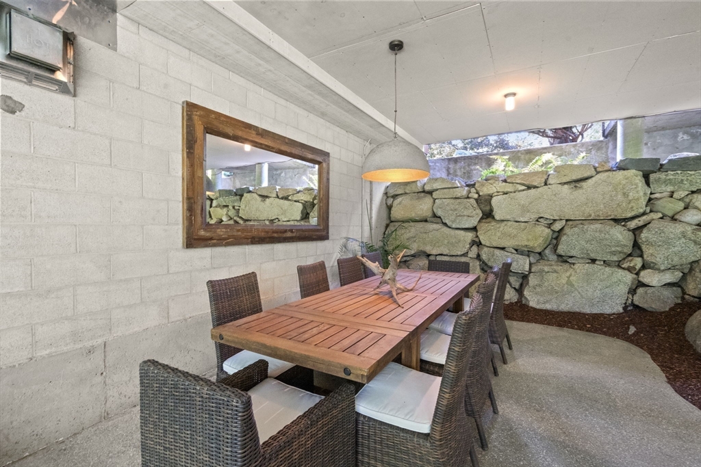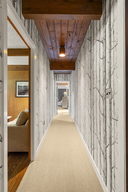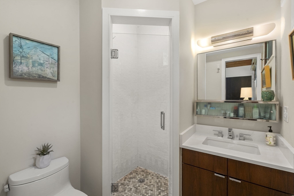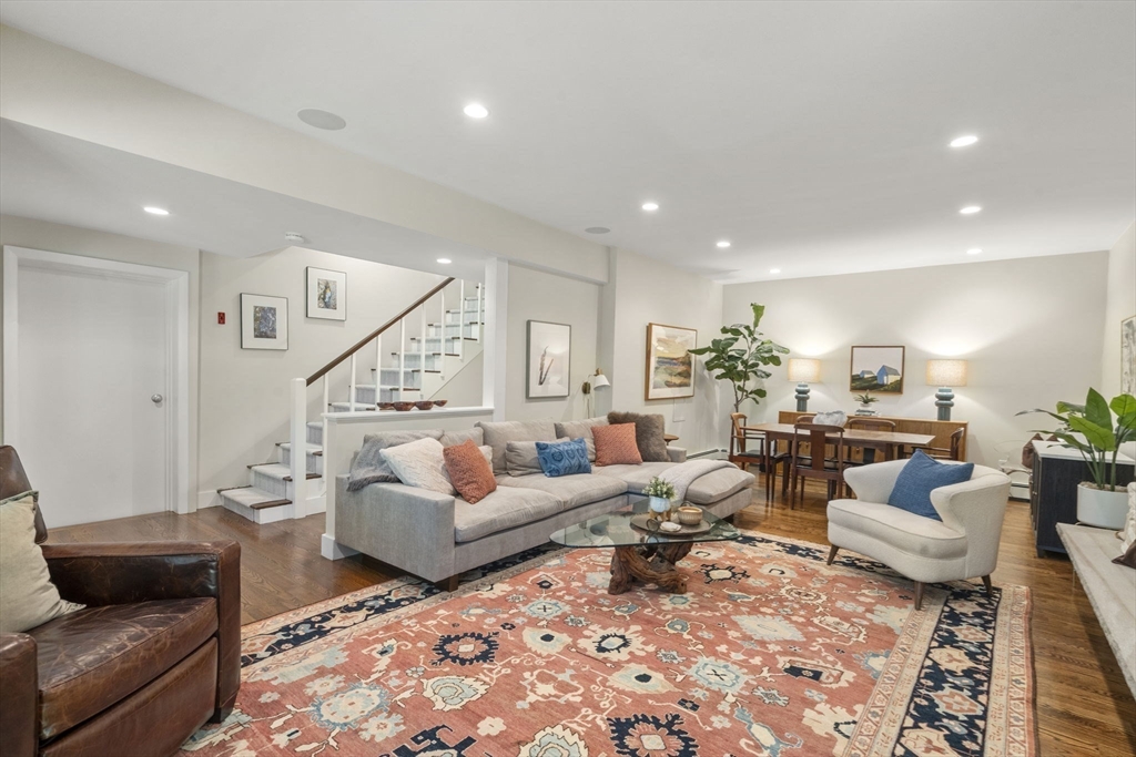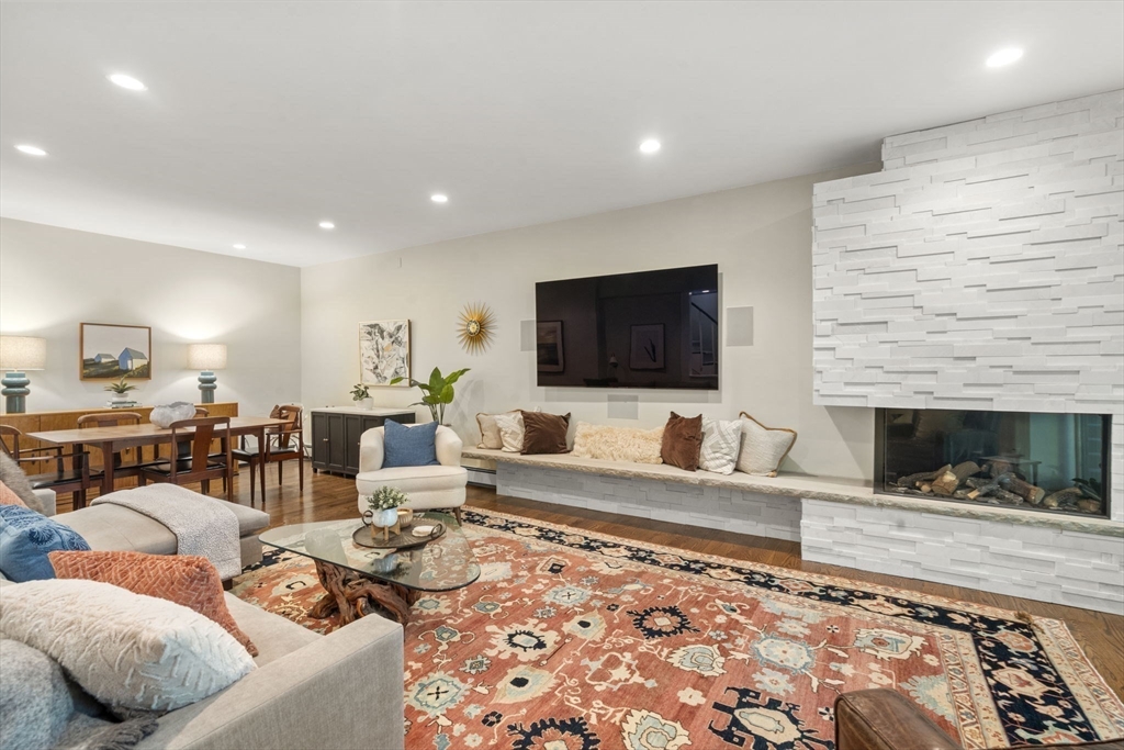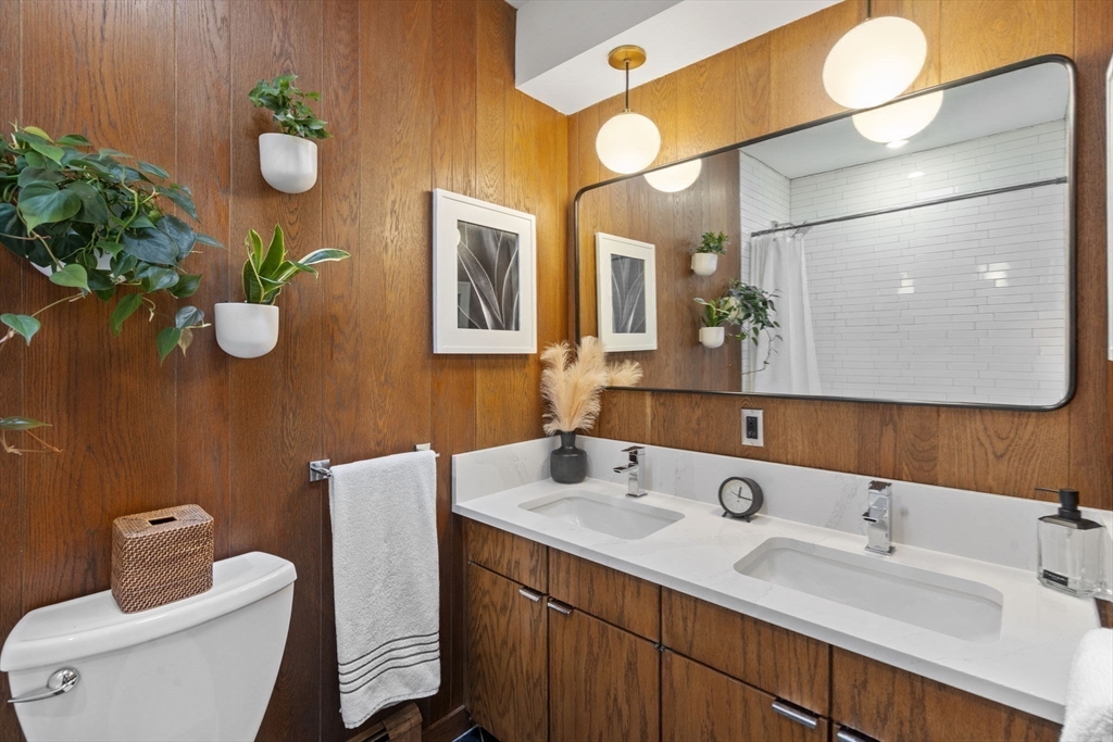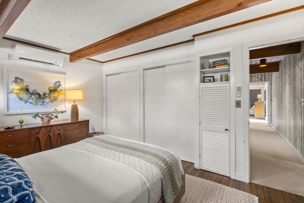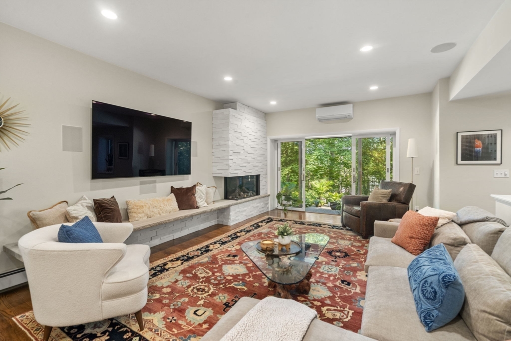 Iconic Mid-Century showstopper in desirable Melrose east side country club neighborhood located 15 minutes from Boston. This impressive, lovingly restored, 3 bed, 2 full, 2 half bath redwood deck house is the real deal built by a world-renowned architect resulting in a perfect floorplan that flows seamlessly throughout and embraces an indoor/outdoor lifestyle. A few features include a 30+ ft glass wall leading to an expansive deck with tree top views accessible from the living-dining,kitchen and primary suite, floating walnut panel walls, polished concrete radiant heated floors, and a double lot with hidden multi-tiered landscaped grounds worthy to call your own arboretum. There are several gathering spaces for every kind of entertaining including a one of a kind, grotto/covered patio w koi pond/water feature and a media fam room w wetbar that easily converts for guests. The home is complete with great storage, a gym and garage. This is sophisticated mid-century living at its finest.