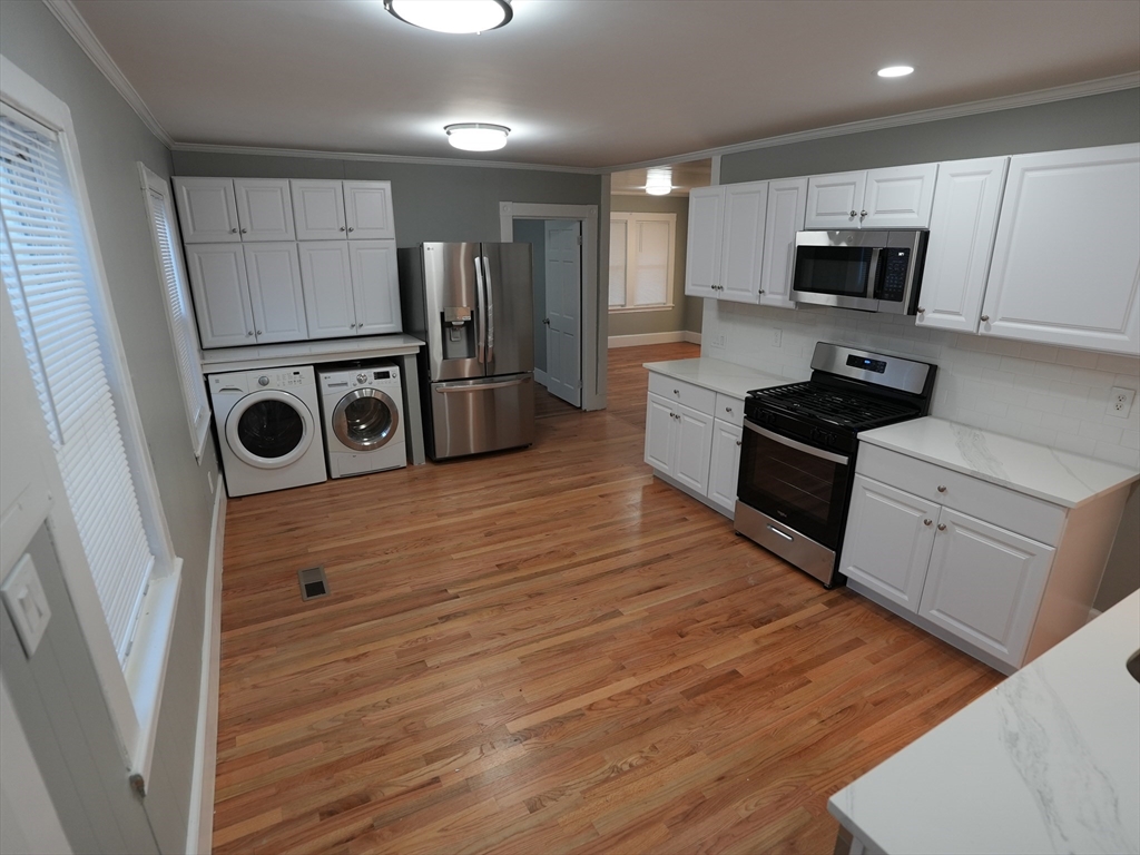 Recently Renovated! Spacious 2-Family Home Near Boston, just steps from Revere Beach and the Train Station. Conveniently located close to Revere Beach and local public schools, including Garfield K-8. This property feels like a brand-new house, offering modern comfort and style. The main level features a bright, open layout with 6 rooms, including 4 bedrooms and 1 full bathroom, all with beautiful hardwood floors. The lower level offers an additional 4 rooms, including 2 bedrooms and 2 bathrooms—Master Bedroom With 3/4 Bath. Enjoy relaxing on the large front porch. Both kitchens are equipped with stainless steel refrigerator, gas stove, microwave and disposal. Both levels have laundry hookups for added convenience. Updates include a newer roof, gas heating system (only 1 year old), two separate hot water heaters, and individual electric panels (100-amp circuit breakers for each unit). Located close to many excellent restaurants with ocean views.
