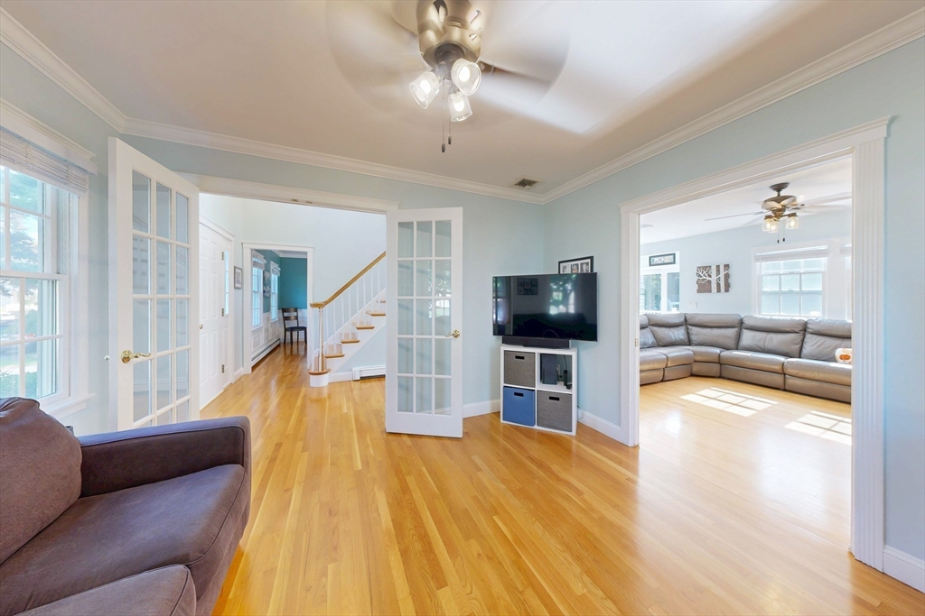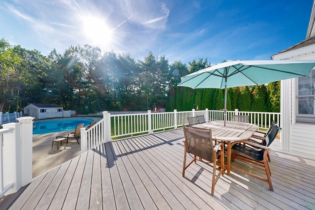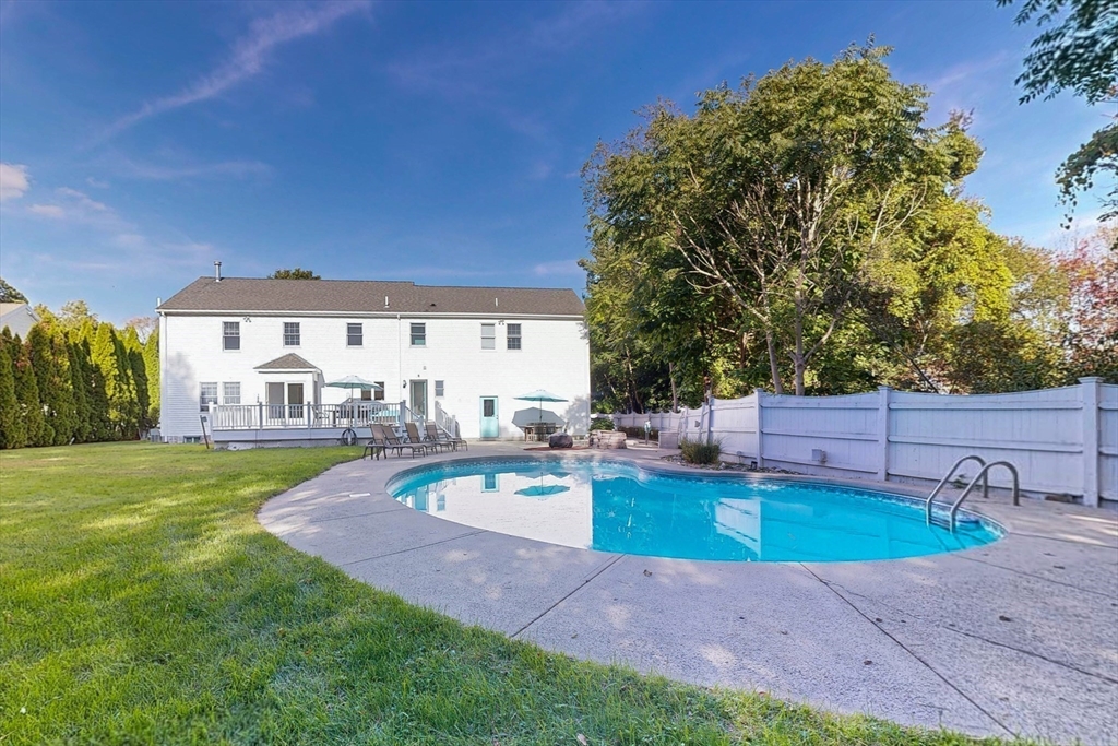 Fantastic 4-bedroom colonial on quiet Cul-de-sac! Inside this wonderful home you’ll find an inviting floor plan starting with a grand foyer that leads to a spacious kitchen with breakfast bar and adjoining family room w/ custom built-ins, & gas fireplace. Additional rooms on the first floor include a formal dining room w/ wainscoting and flex room ideal for office or tv room setup. Upstairs is highlighted by an expansive primary bedroom with gracious walk-in-closet and renovated en-suite bath. This home is ready for Fall entertaining with an outdoor oasis that includes an oversized deck set off the kitchen that’s perfect for Al fresco dining as well as a heated pool all within a fenced-in backyard. Graziano Drive is ideally located, being close to schools, shopping, restaurants, the T station, and both Rt. 3 & I-93. 3 additional bedrooms, finished basement with adjacent workshop, central a/c, and attached 2-car garage round out this special home!!