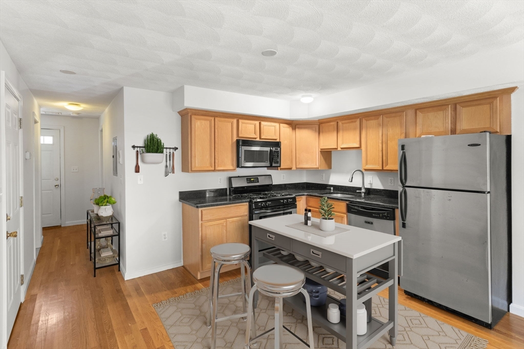 Wow! Affordable 2 bedroom condo in the heart of East Boston! Main floor is one bedroom with kitchen/ living room/dining room with door to the back deck for BBQ and relaxing. Entire upstairs is privacy for primary bedroom. Surrounded by restaurants, shops, public transportation and highway access. Great starter home or investment opportunity. Lots of private storage and laundry in basement as well. There are many restaurants and shops that are literally walking distance. What a value !!!