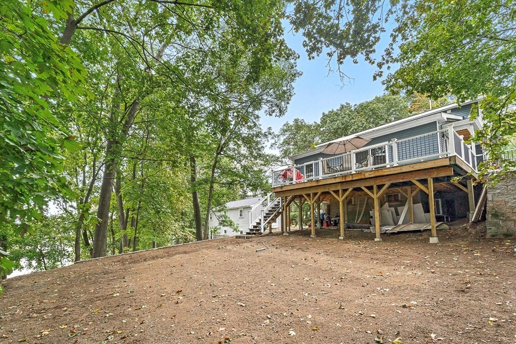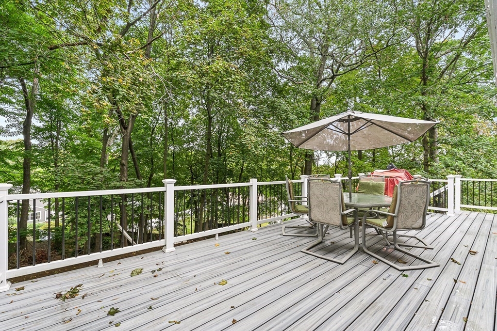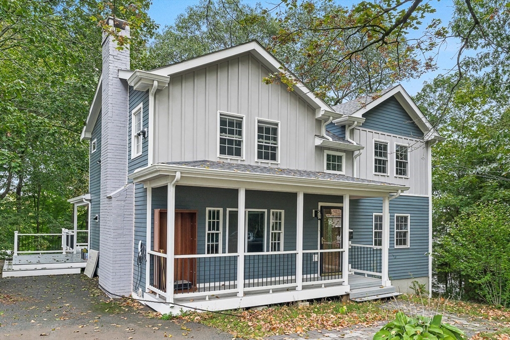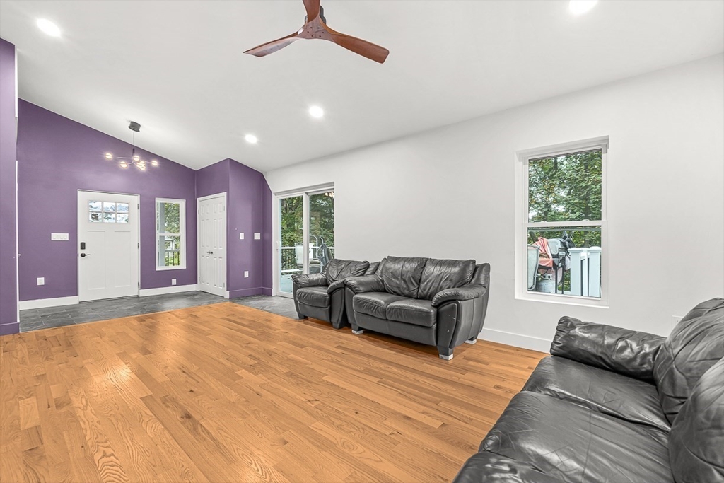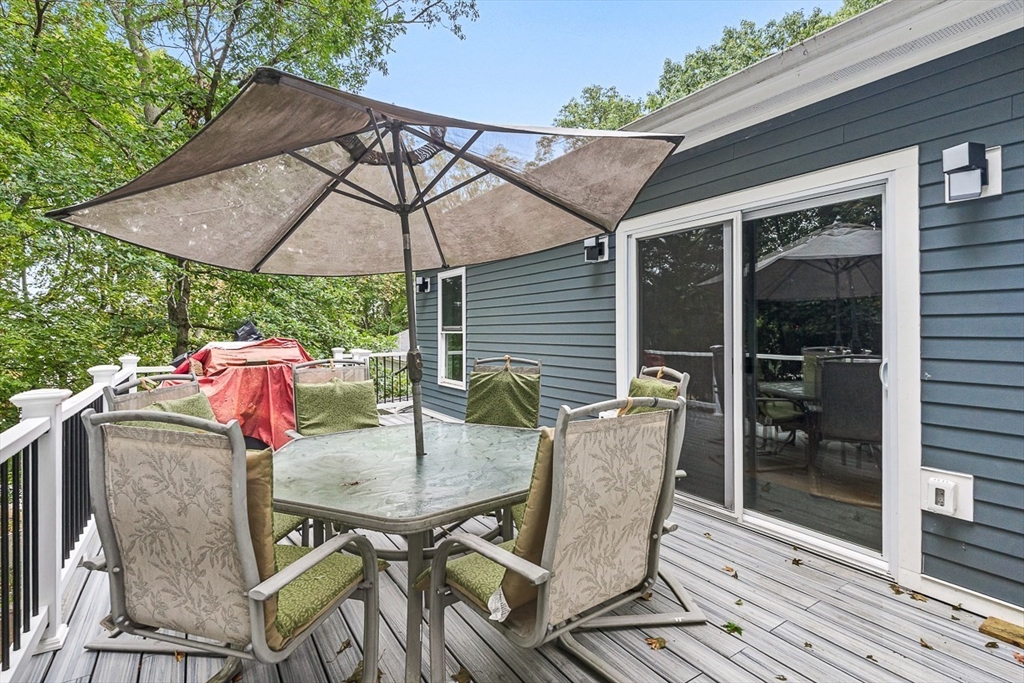 Major Price Improvement! Welcome the most convenient & desirable neighborhoods of Framingham: Easy access to I-90, the shops, yet on a quiet residential street. This updated house is ideal for commuters seeking idyllic suburb life. On the main level, a welcoming front porch opens to a bright dining room that flows into a large kitchen with direct access to a spacious family room. French doors lead from the family room to expansive rear deck, creating the perfect indoor-outdoor living and entertaining experience. Two Bedrooms and a full bath on this level provide convenience for guests, a home office. Upstairs, the spacious primary suite with cathedral ceiling is served by walk-in closet and beautiful full bath. Two additional bedrooms on this level offer ample space for family. The basement is ready for storage, a home gym, or future expansion; it walks out to a newly leveled back yard. With multiple decks, a family-friendly layout, and plenty of storage.