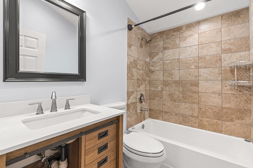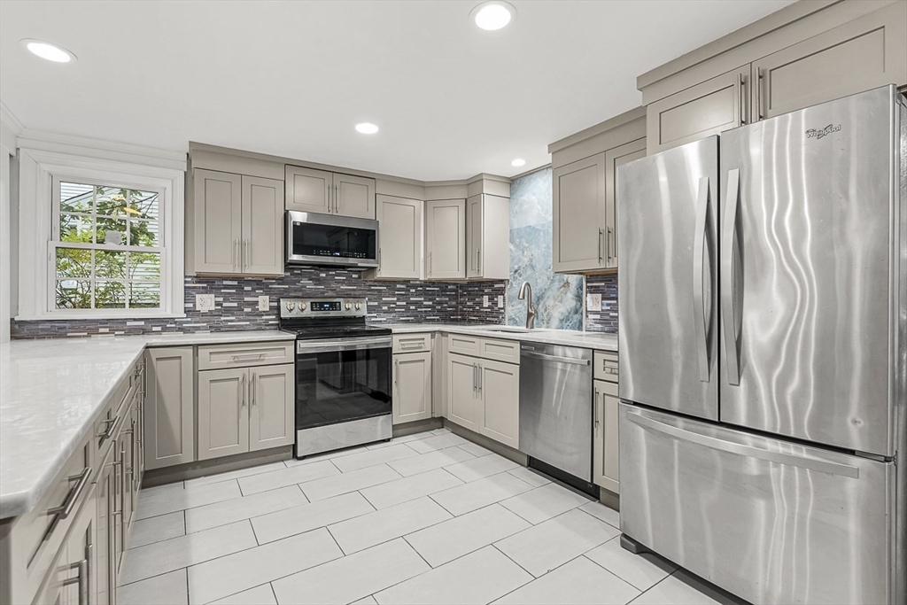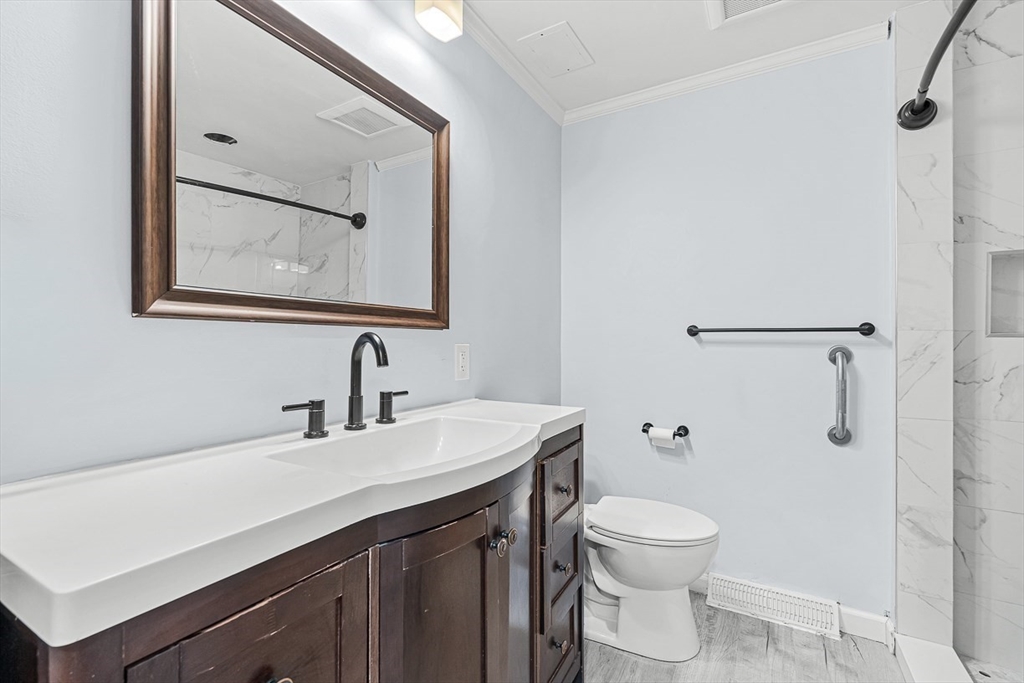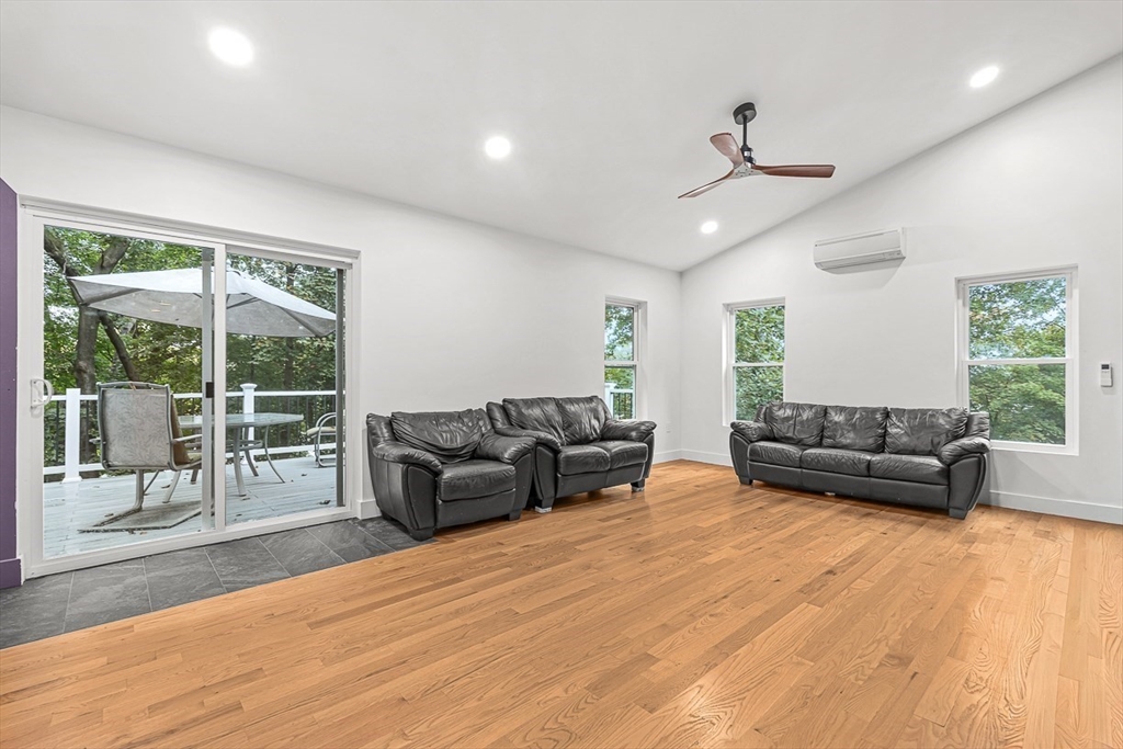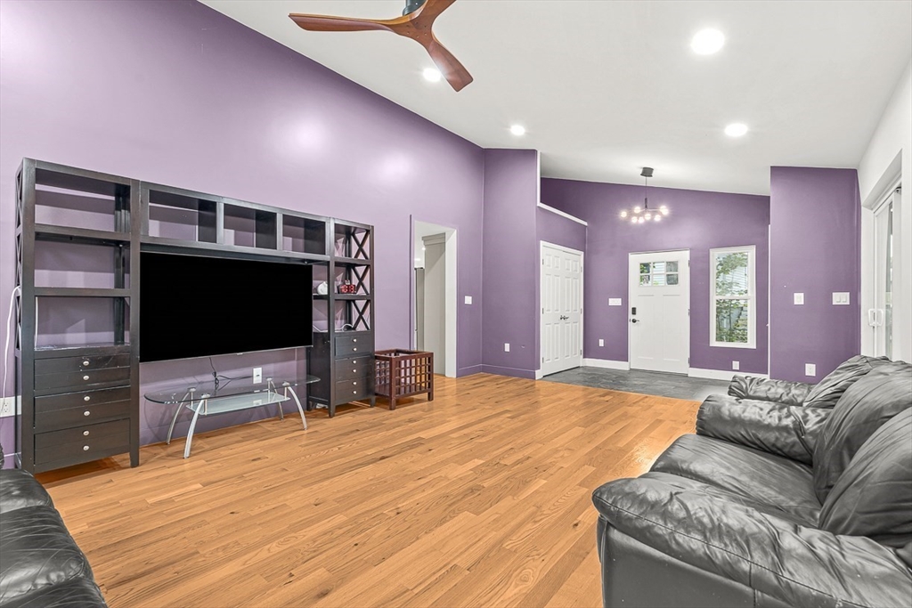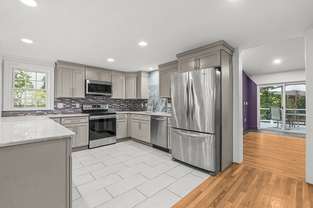 Major Price Improvement! Welcome the most convenient & desirable neighborhoods of Framingham: Easy access to I-90, the shops, yet on a quiet residential street. This updated house is ideal for commuters seeking idyllic suburb life. On the main level, a welcoming front porch opens to a bright dining room that flows into a large kitchen with direct access to a spacious family room. French doors lead from the family room to expansive rear deck, creating the perfect indoor-outdoor living and entertaining experience. Two Bedrooms and a full bath on this level provide convenience for guests, a home office. Upstairs, the spacious primary suite with cathedral ceiling is served by walk-in closet and beautiful full bath. Two additional bedrooms on this level offer ample space for family. The basement is ready for storage, a home gym, or future expansion; it walks out to a newly leveled back yard. With multiple decks, a family-friendly layout, and plenty of storage.