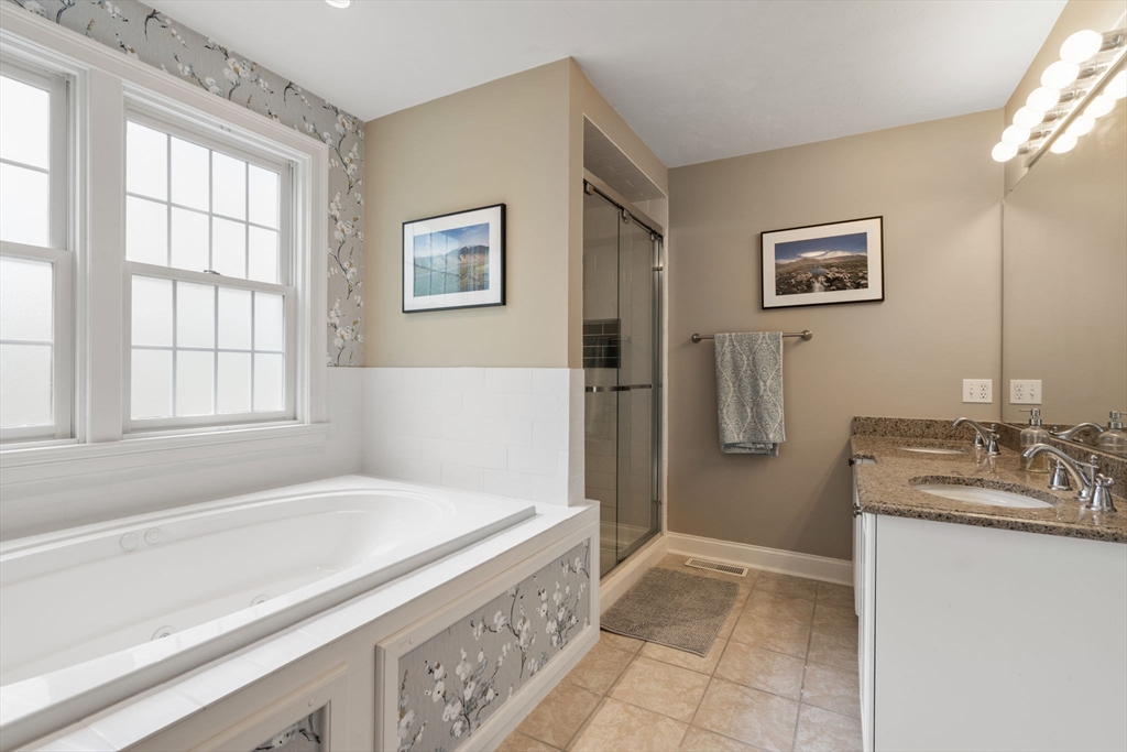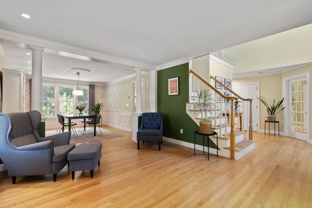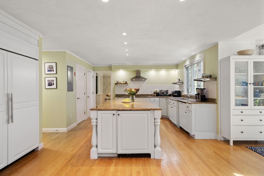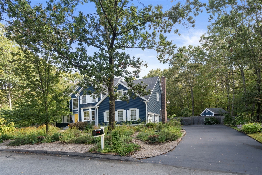 Stunning custom colonial in Wildlife Woods featuring an open floor plan and exquisite craftsmanship. Highlights include numerous recessed lights, detailed moldings, and gleaming hardwood floors. A dramatic two-story foyer leads to a spacious liv rm and elegant dining room with designer trim. First-floor library boasts a bay wndw and built-ins. At the heart is a newly updated European kitchen with white cabs, granite island, tile backsplash, Sub-Zero fridge, walk-in pantry, and sunlit breakfast room wrapped in glass. This opens to a vaulted family rm with skylights and a wood-burning fireplace. The posh primary suite offers soaring ceilings, multiple closets, spa bath, and a sitting room. Three additional bedrooms are bright and spacious. The finished LL offers many possible uses- media room, gym, an additional bdrm and a lux full bath. Outside, enjoy lush landscaping and garden space. Located near top schools, shopping, golf, Lake Boon—this home blends elegance, comfort, and nature.