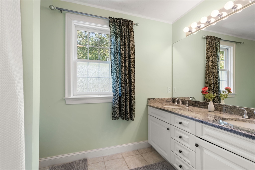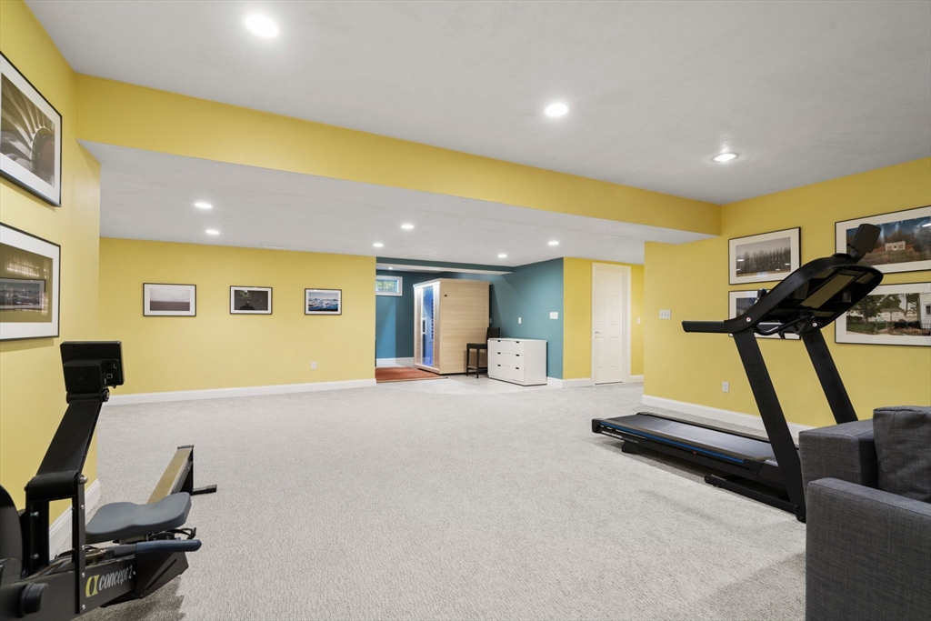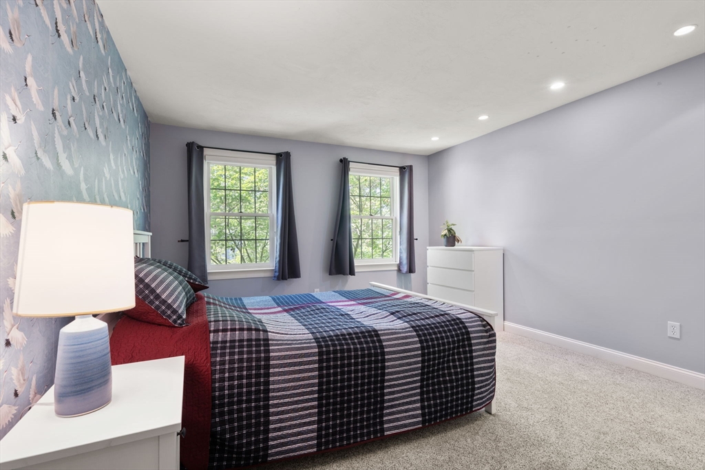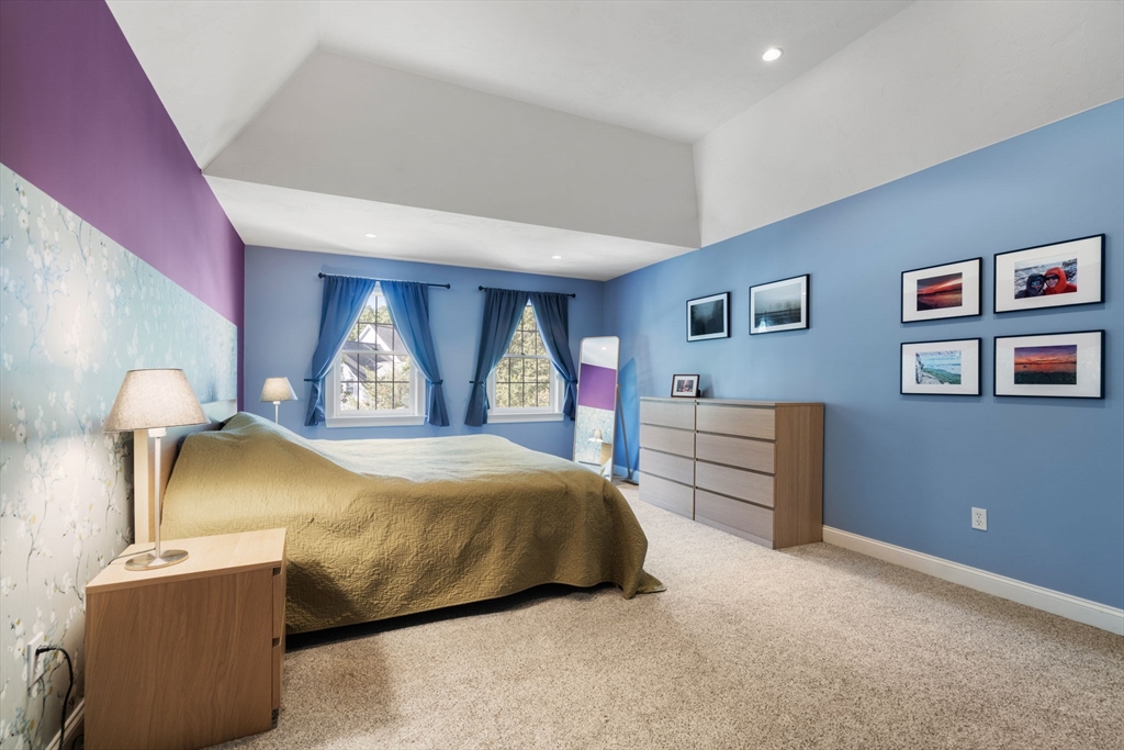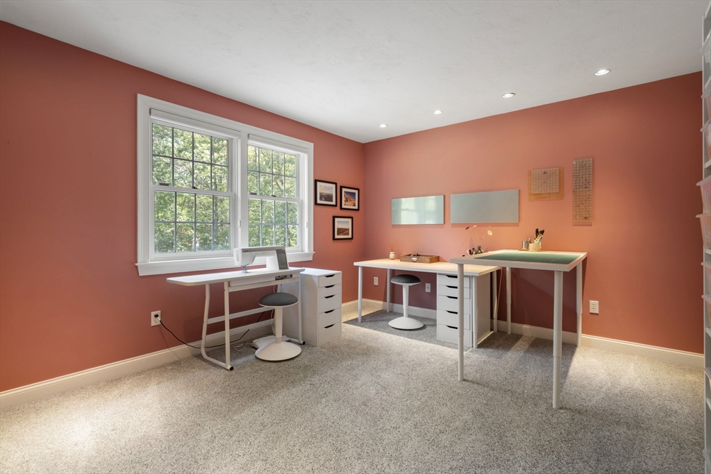 Stunning custom colonial in Wildlife Woods featuring an open floor plan and exquisite craftsmanship. Highlights include numerous recessed lights, detailed moldings, and gleaming hardwood floors. A dramatic two-story foyer leads to a spacious liv rm and elegant dining room with designer trim. First-floor library boasts a bay wndw and built-ins. At the heart is a newly updated European kitchen with white cabs, granite island, tile backsplash, Sub-Zero fridge, walk-in pantry, and sunlit breakfast room wrapped in glass. This opens to a vaulted family rm with skylights and a wood-burning fireplace. The posh primary suite offers soaring ceilings, multiple closets, spa bath, and a sitting room. Three additional bedrooms are bright and spacious. The finished LL offers many possible uses- media room, gym, an additional bdrm and a lux full bath. Outside, enjoy lush landscaping and garden space. Located near top schools, shopping, golf, Lake Boon—this home blends elegance, comfort, and nature.