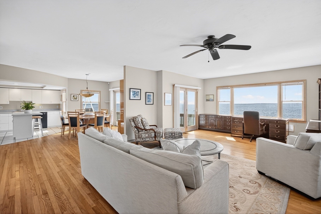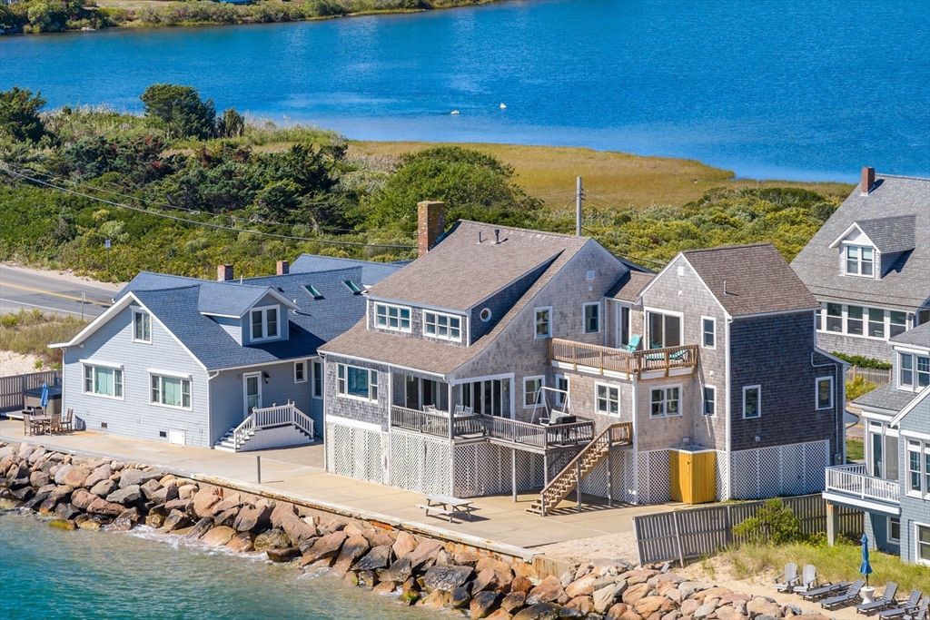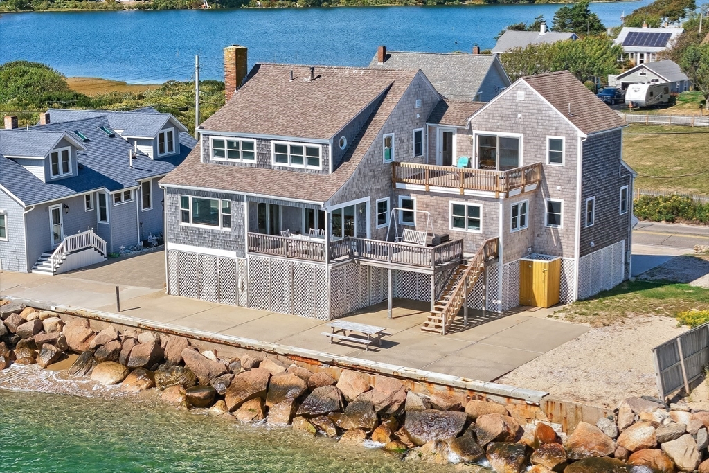 Experience the magic of Cape Cod living with sweeping views of Martha's Vineyard and the ferries gliding by from this elegant waterfront home. Designed with an open-concept layout and a striking ''on-the-water'' feel, every room invites you to take in the ever-changing coastal scenery. With 5 bedrooms and 4.5 bathrooms, this home is bright, spacious, and thoughtfully designed for both relaxation and entertaining. Walls of windows frame the sparkling water, while clean lines and open spaces highlight the stunning natural setting. Located close to Main Street, you'll be in the center of Falmouth's best dining, shopping, and summer traditions—including the Fourth of July fireworks and festivities. This is more than a home—it's a once-in-a-lifetime opportunity to experience the Cape Cod lifestyle from a truly unmatched vantage point.