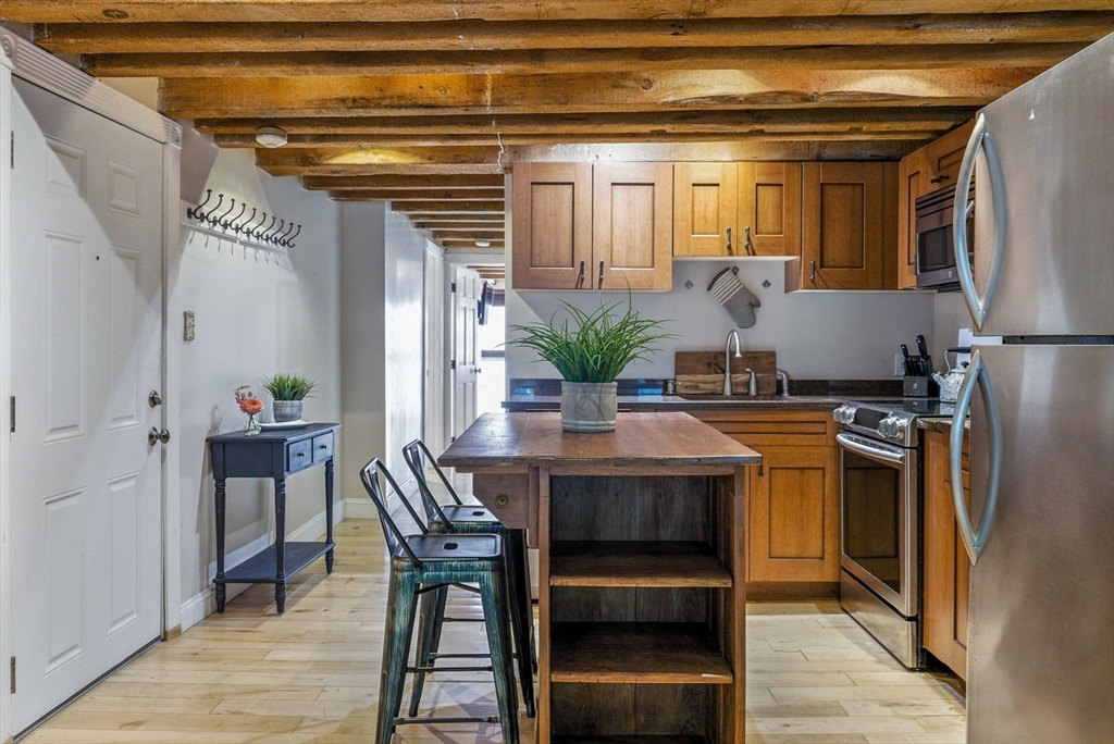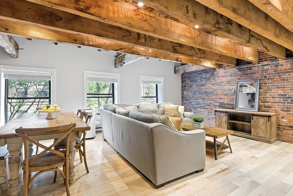 Experience classic North End charm with modern comforts in this beautifully updated brick-and-beam condo located on one of the neighborhood’s most picturesque, tree-lined streets. This spacious 2-bedroom home features a large open-concept living and dining area and a full wall of oversized windows that flood the space with natural light. The exposed brick and wooden beams offer timeless character. The oversized bathroom features a double vanity and jacuzzi tub. The primary bedroom includes a generous walk-in closet (a rare find!), and the convenience of in-unit laundry adds to the ease of city living. Nestled in well managed, meticulously-maintained building with a large reserve fund, just moments from the waterfront, Boston Harborwalk, the Greenway, and the best of the North End’s restaurants and cafes—this is Boston living at its best.