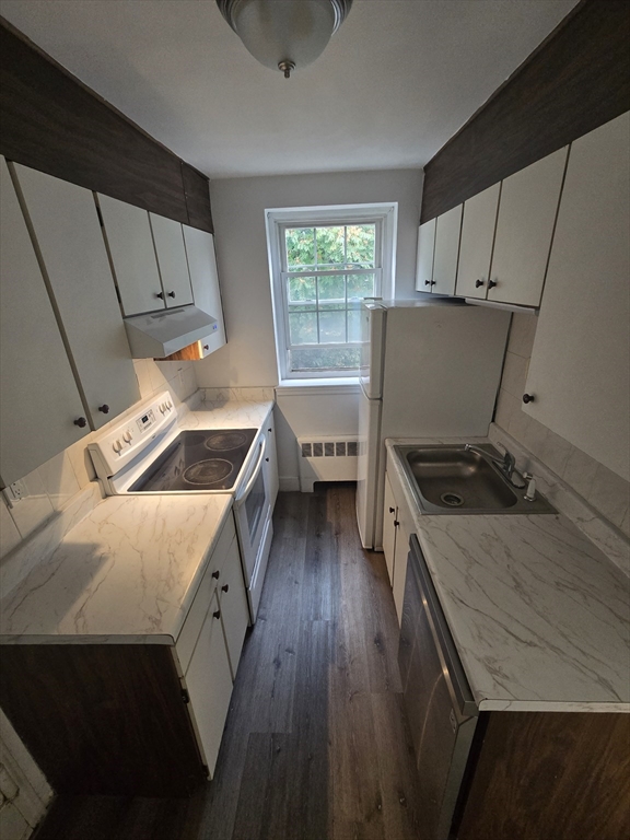 This beautiful and oversized two bed space is steps to Beacon St, parks and various means of public transportation. You walk on the gleaming hardwood floors into the bright and sunny common area that leads into the dining room and then the fully applianced kitchen. Off the main hall are two jumbo bedrooms with solid closet space and then the lovely tiled bathroom. Two parking spots (tandem) are included and laundry is on site in the adjacent building. Deposits are first month rent, last months rent and security deposit. No pets please.