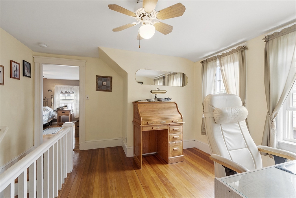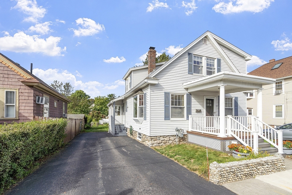 Welcome to this beautifully cared-for 1930 Cape, cherished by the same family for over 30 years. Set on a spacious, fenced-in lot with beautiful curb appeal, this home has been the backdrop to decades of memories and is ready for its next chapter. Inside, you'll find gleaming hardwood floors, replacement windows throughout, and a warm, inviting layout. The home offers 3 generously sized bedrooms and 2 full bathrooms. Classic charm meets thoughtful updates for today’s lifestyle. Exterior highlights include vinyl siding, a paved driveway, and a lush backyard with a concrete patio—ideal for entertaining or relaxing. A powered Reeds Ferry shed provides excellent storage or workshop space. Conveniently located near shopping, highway access, public transportation, schools, and parks. This lovingly maintained home is filled with history, heart, and the potential for many more memories to come!