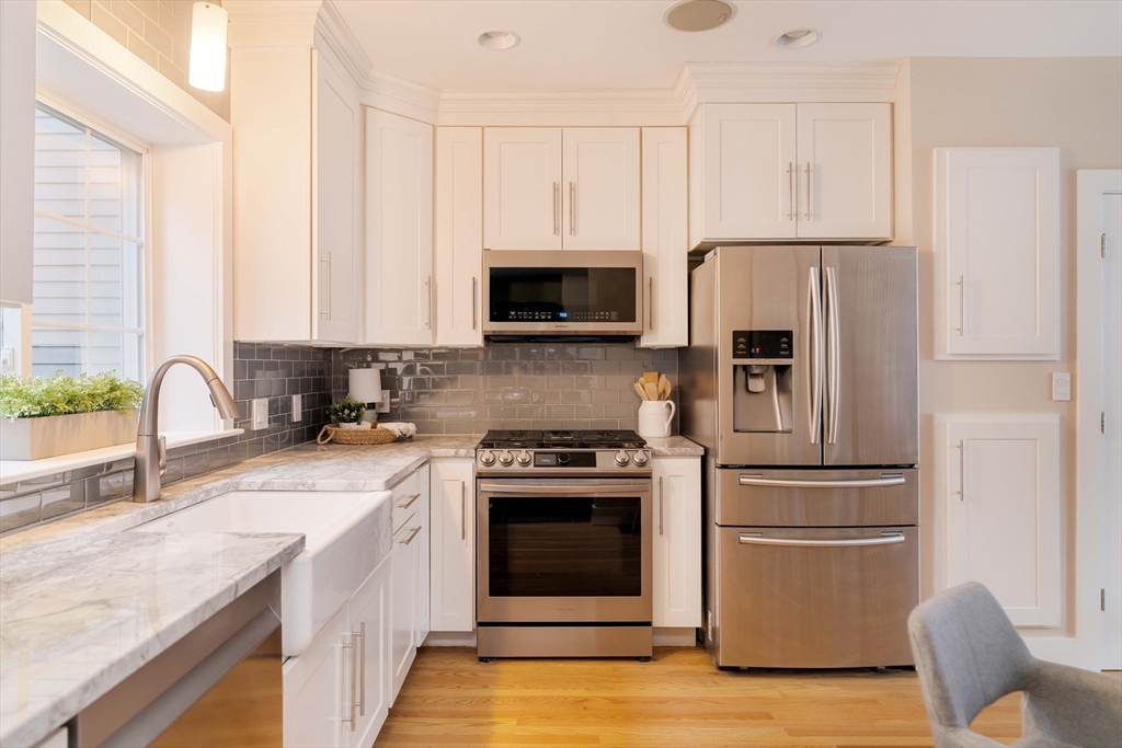Renovated, meticulously maintained single family home pairs classic charm with thoughtful updates in a prime city location. Sun splashed, open-concept main level showcases a custom built-in window seat with storage and a refreshed chef’s kitchen with farmhouse cast-iron sink and quartzite counters. A stylish powder room completes the floor. Step out to a private back patio, perfect for morning coffee, grilling, and effortless entertaining. Upstairs, the primary suite offers a renovated en-suite bath, walk-in closet, and French doors to an office/nursery. Two additional bedrooms and a full bath top the home. The finished lower level expands the footprint with a versatile media/play room, ideal as a gym, guest space, or bonus bedroom, plus a wine cellar, workshop, and abundant storage. Just moments away from your neighborhood shops and dining.