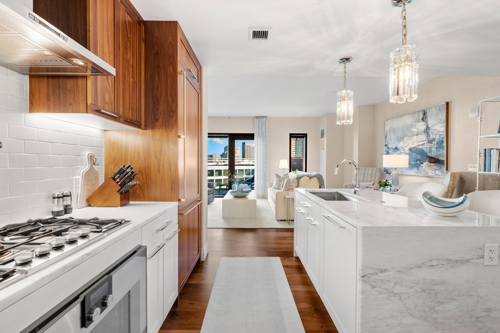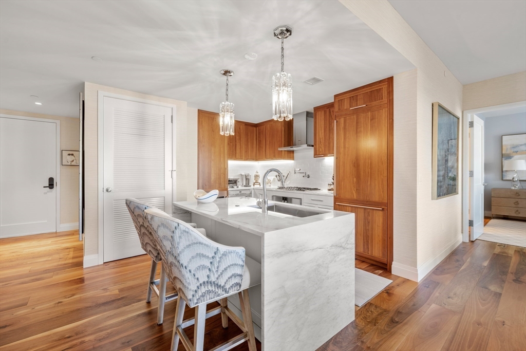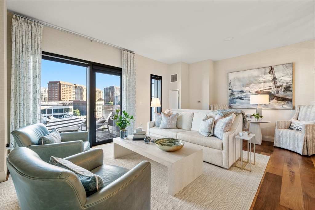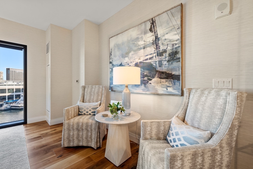 Located on the 6th floor of sought-after Pier 4, this one bedroom, one and a half bathroom residence showcases panoramic harbor views, a private balcony, high ceilings, rich walnut floors, a sleek open floor plan and quality of construction in every detail. The gourmet kitchen is outfitted with custom cabinetry, a waterfall marble island, and Gaggenau appliances. The tranquil primary suite offers a custom walk-in closet and an elegant marble bath with double vanity and glass-enclosed shower. Pier 4 provides exceptional amenities, including a fitness center, golf simulator, residents’ lounge, fire pit, caterer’s kitchen, 24-hour concierge, doorman, and expansive terrace overlooking the water. Includes one deeded garage space and direct access to world-class dining, shopping, and museums. With every detail already perfected, all that’s left to do is move in and start enjoying full-service waterfront living.