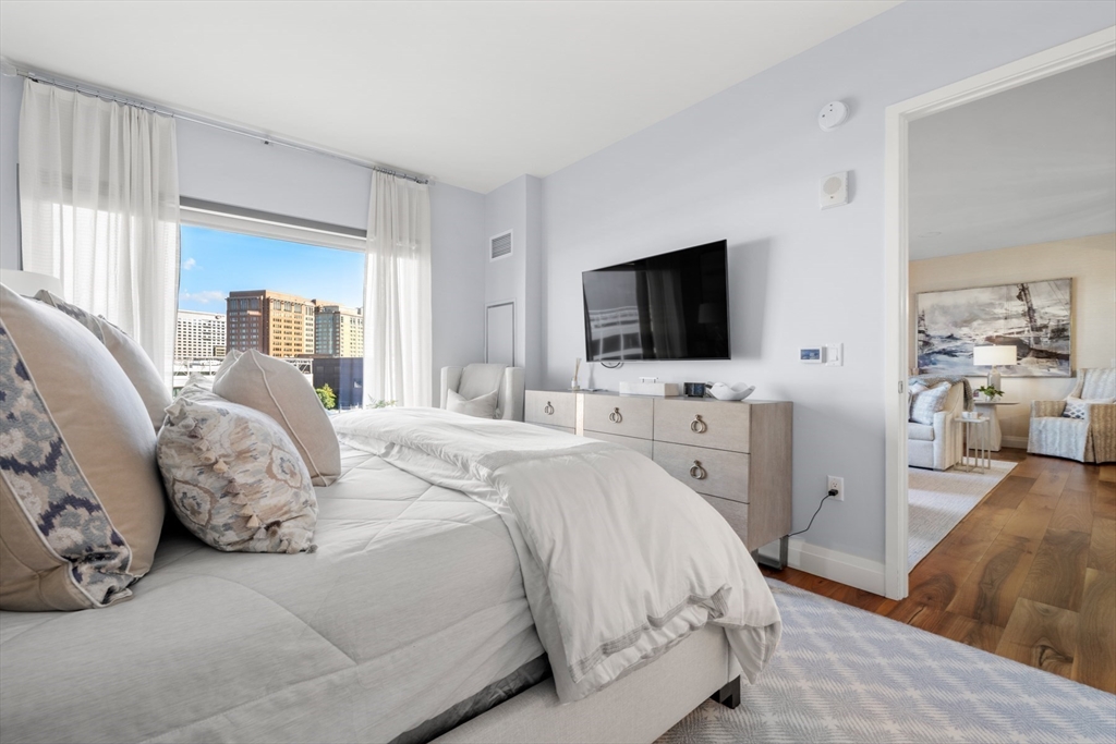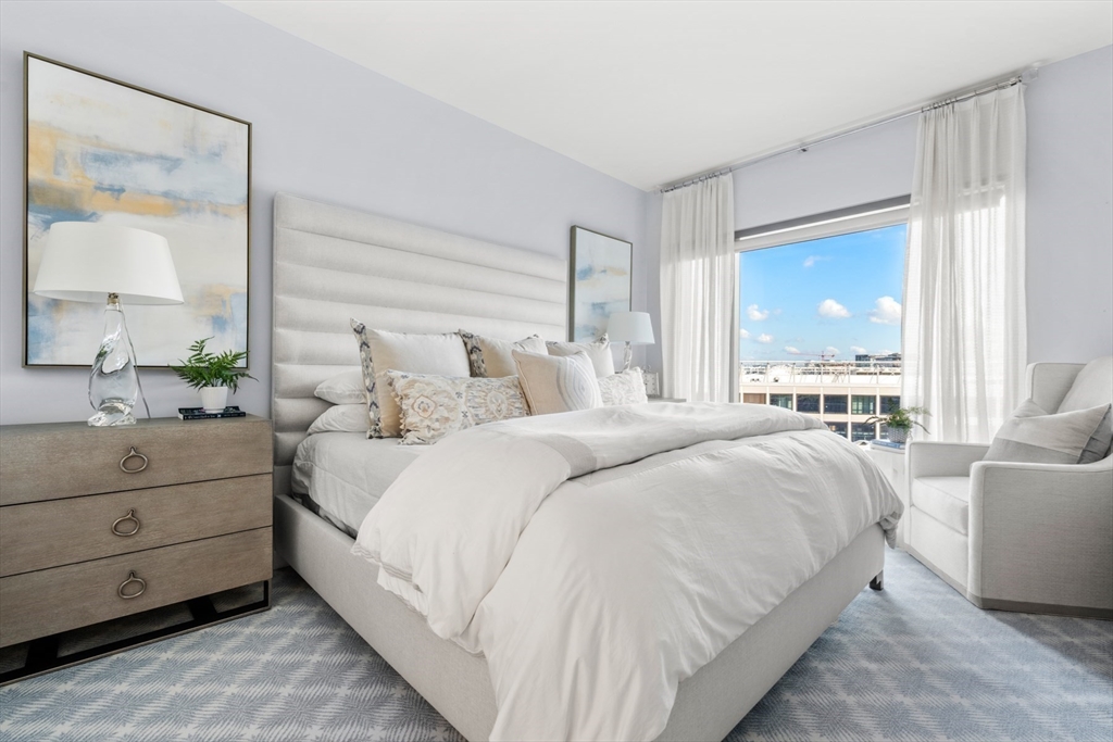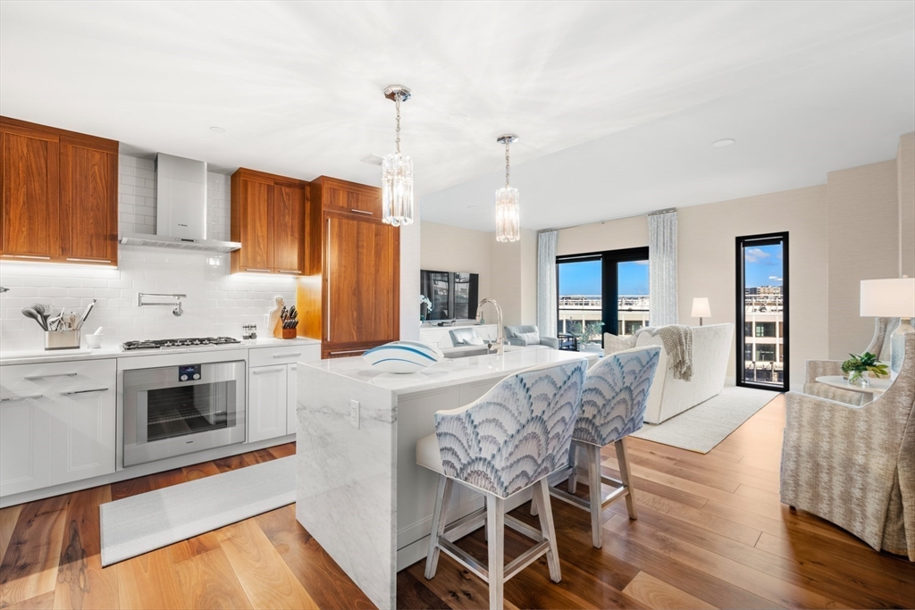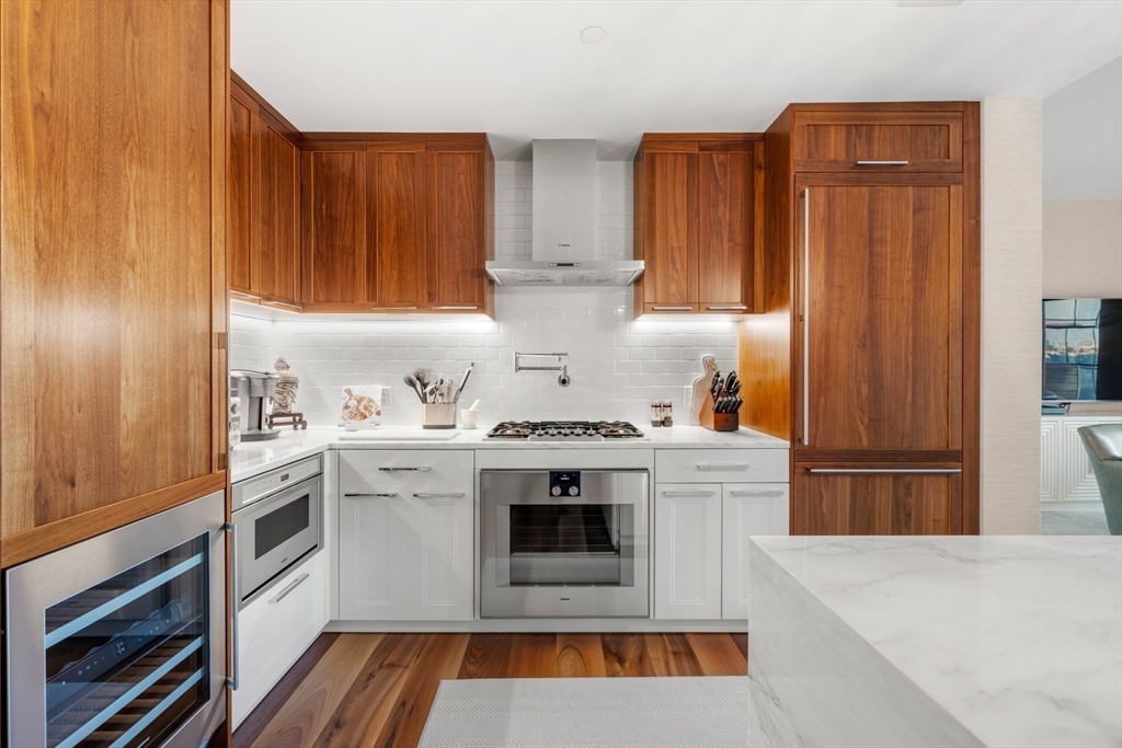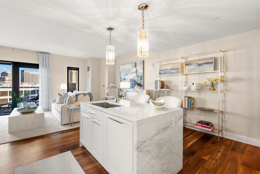 Located on the 6th floor of sought-after Pier 4, this one bedroom, one and a half bathroom residence showcases panoramic harbor views, a private balcony, high ceilings, rich walnut floors, a sleek open floor plan and quality of construction in every detail. The gourmet kitchen is outfitted with custom cabinetry, a waterfall marble island, and Gaggenau appliances. The tranquil primary suite offers a custom walk-in closet and an elegant marble bath with double vanity and glass-enclosed shower. Pier 4 provides exceptional amenities, including a fitness center, golf simulator, residents’ lounge, fire pit, caterer’s kitchen, 24-hour concierge, doorman, and expansive terrace overlooking the water. Includes one deeded garage space and direct access to world-class dining, shopping, and museums. With every detail already perfected, all that’s left to do is move in and start enjoying full-service waterfront living.