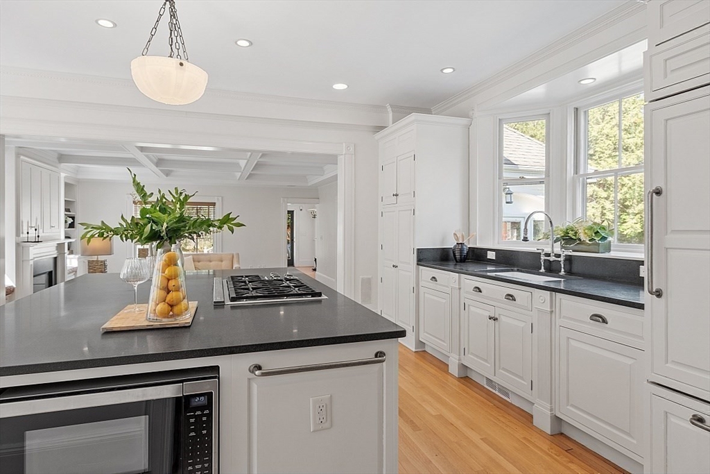 A perfect balance of landmark elegance, timeless character and everyday modern comfort on 2+ acres. Welcome to the Augustus P. Chamberlaine House. This property offers 3 levels of living space complemented by a detached 3-car carriage house w/fully equipped 1BR apt., perfect for guests, au-pair or rental income. Rich details include Tuscan columns, mahogany inlaid floors, gas and woodburning fireplaces, hand-carved mantels, custom moldings, 5-foot windows and more. Updated custom kitchen w/center island features 2 pantries and opens effortlessly to the family room with gas fireplace and window seat built-ins. Gather formally in the elegant dining room, library and the living room w/elaborate moldings and dual fireplaces. 2nd level finds 4BRs including luxe primary suite w/marble bath and private sitting area. 3rd level finds bedrooms 5 and 6 plus a spacious billiard room. Moments from Town Center and commuting routes this historic property offers space, style and flexibility.