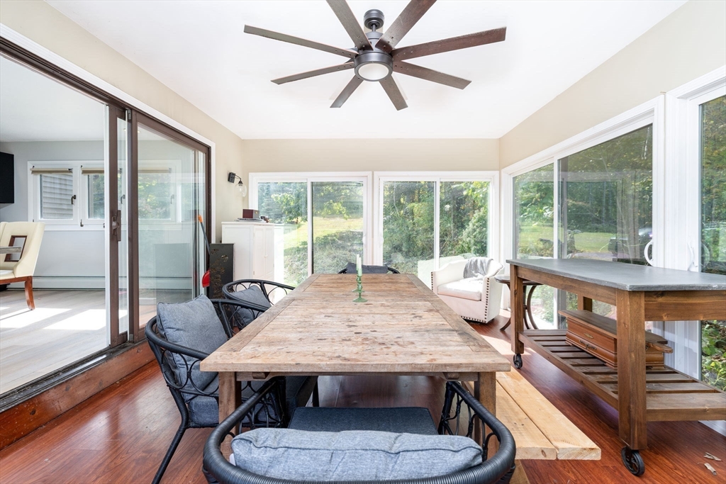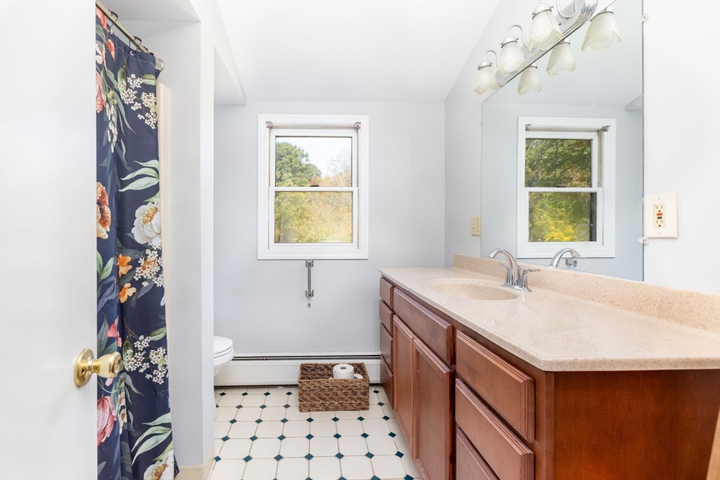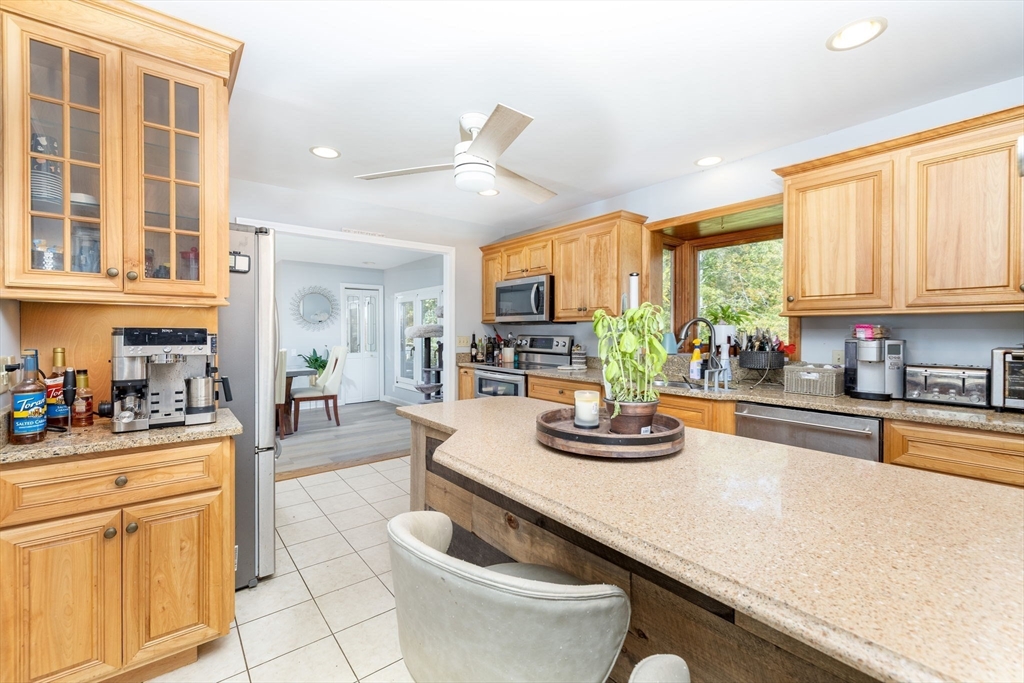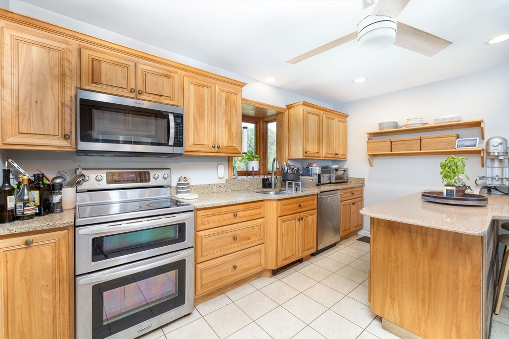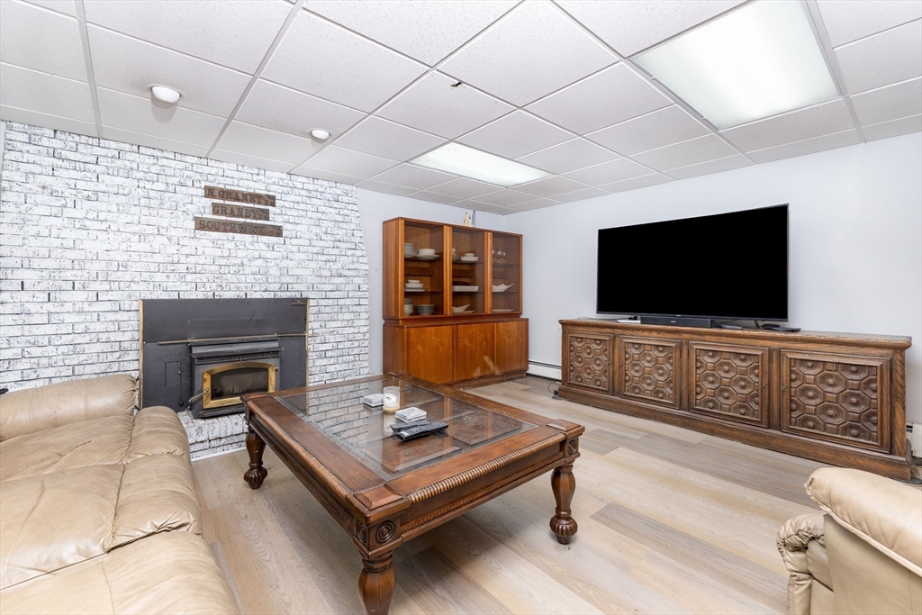 Awesome Granville opportunity! Right up the street from Granville Center this spacious improved home has plenty of room to spread out with 3 finished floors and a great private lot. Enclosed finished porch adds even more seasonal space and the finished lower level space w/full bathroom and fireplace adds 600 additional sq ft. Open versatile floor plan offers many living options.Private backyard backs to woods. Remodeled tiled kitchen w/high end cabintry, stone counters and stainless steel appliances. 1st floor laundry. Remodeled baths. Not pictured yet is a front to back living room and 3rd bedroom (rooms still being cleaned out). Home offers good potential for 1st floor primary if needed.