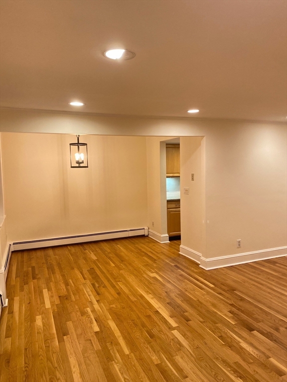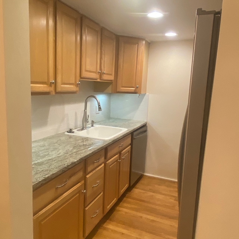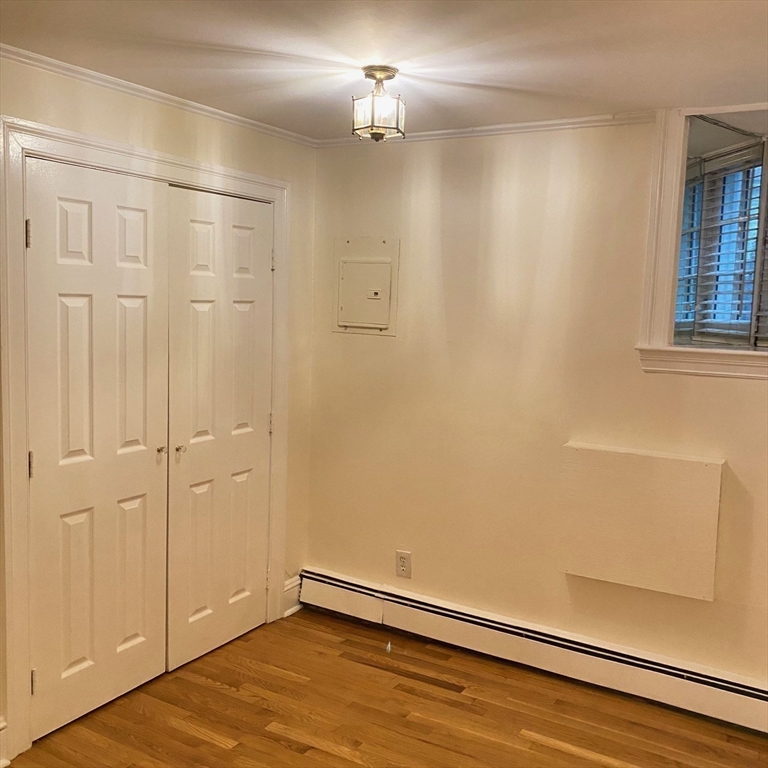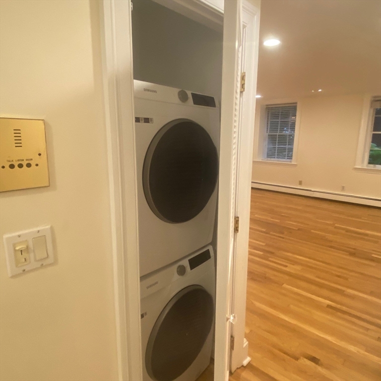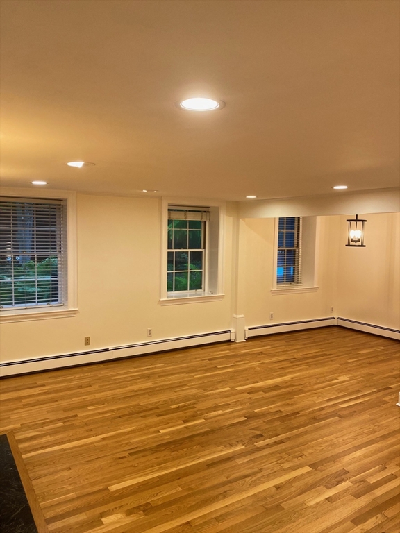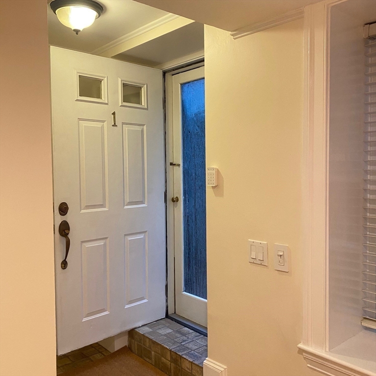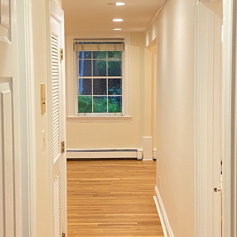 Spacious, classic European style two-bedroom garden unit on upper Joy Street. Accessed through a private brick passageway, the unit door opens into a small foyer with coat closet leading to a large sunk-in living room with fireplace, refinished oak floors and separate dining area. All looking out on to a beautiful, well-manicured common garden with mature plantings and a lovely pool with fountain, seating area and grill. Galley style kitchen with electric range, dishwasher, microwave, stainless steel refrigerator, granite counter tops and wood cabinets. Two side by side bedrooms, one with decorative fireplace and each with a double closet and refinished oak floors. Bath with tub and shower. Hall closet with full size stack washer and dryer. The 21-23 Joy Street Condominium Association is professionally managed. There are 8 units in total. Cats allowed. No dogs.