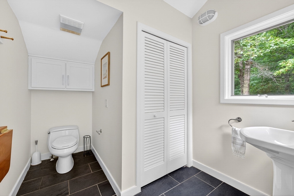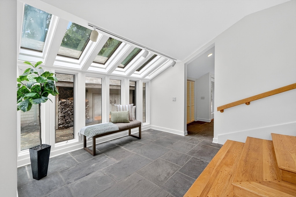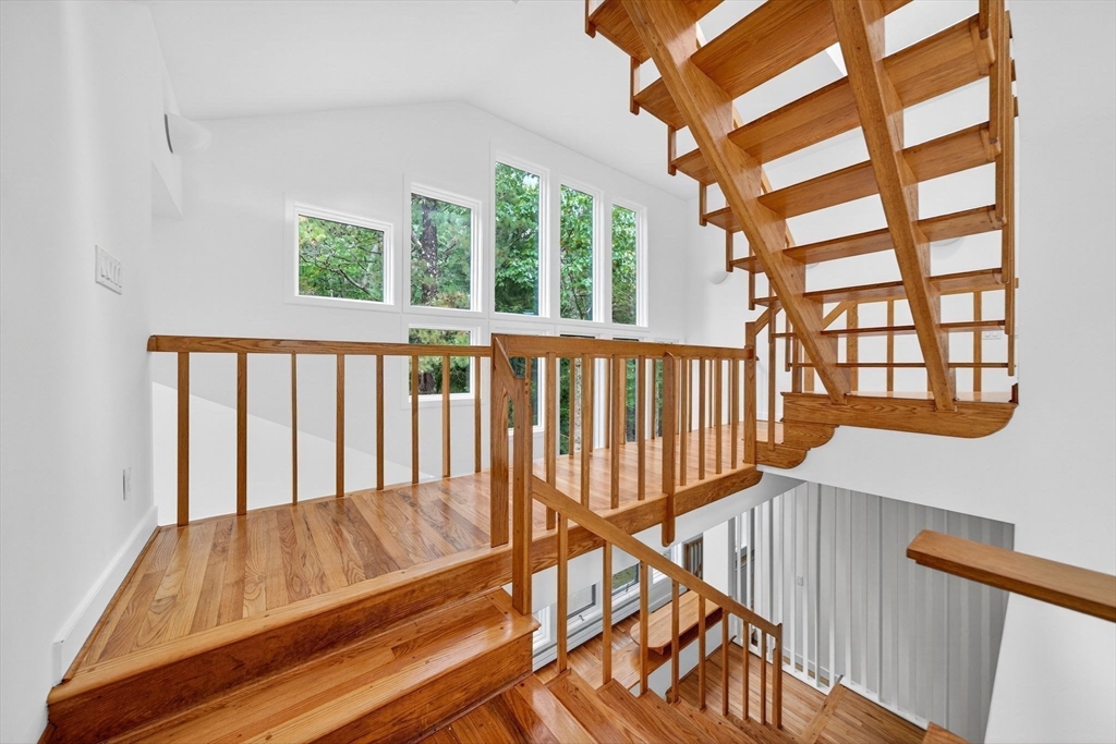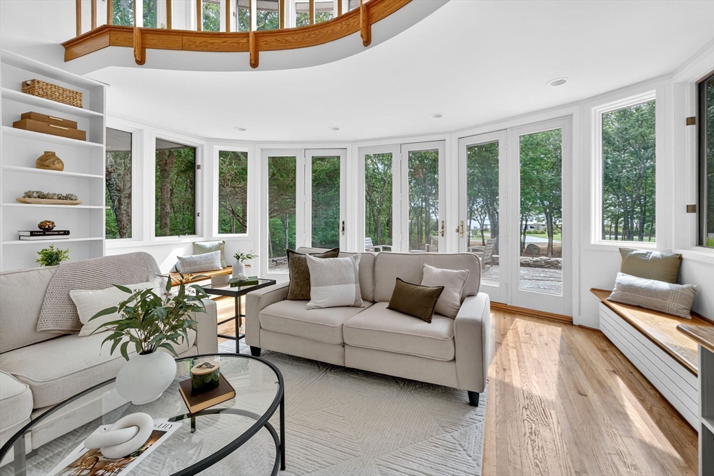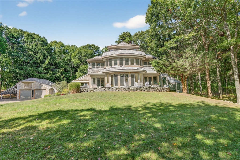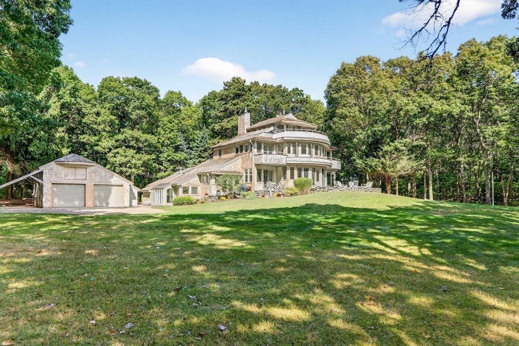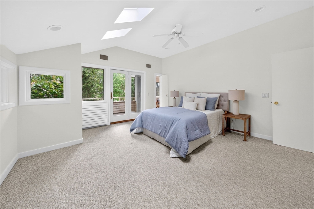Nestled on spacious corner lot steps from Piney Point Beach Club sits this architectural gem offering south-facing ocean views, open floor plan, high ceilings, great light, indoor/outdoor living with French doors, balconies, patio, outside shower & more. The 3800 square foot home features wood burning stove & fireplace, 4 bedrooms + Office with ensuite bath, 6 bathrooms, and a 2-car garage with storage above. Unique home designed by architect Grattan Gill (Frank Lloyd Wright apprentice) set on expansive 1.5 acre lot offering a canvas for gardening, recreation, or simply enjoying the serenity of the outdoors. Private neighborhood with deeded rights to Wing's Cove for boat enthusiasts, daily swim or fishing off the dock as well as membership opportunity at Piney Point Beach Club featuring tennis/pickleball courts, basketball, snack bar, catered dinners, swimming, lifeguards, etc. Rare opportunity to buy in sought after Piney Point neighborhood in fabulous LOCATION LOCATION LOCATION!