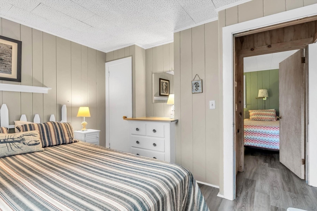 Welcome to your dream retreat at 30 Cove Road, Eastham, MA! This rare gem in the exclusive Cedarcrest Association offers deeded beach access, a private dock, and a mooring with Town Cove access, pending Harbor Master approval. Spanning 2,112 sq ft, this home features four bedrooms and three bathrooms. The main house hosts two bedrooms, two baths, and generous living space, while the separate in-law apartment includes two bedrooms, a bath, and an open living area, ideal for guests or rental income. Inside, enjoy sea blue walls with white trim and luxury vinyl floors. A gas fireplace warms chilly Cape Cod nights. Relax in the jacuzzi tub off the primary bedroom or stargaze from the deck after an outdoor shower. The kitchen boasts black countertops, white cabinetry, and modern appliances, with an additional kitchen in the apartment for entertaining. The dining room connects to an outdoor space, and a spacious living room with a den/library offers contemplation.