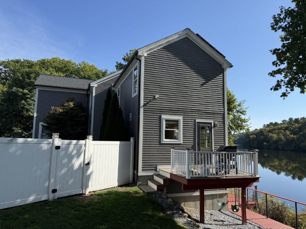 Brand new Hardy Board Siding Entire House in 2024 , Solar Panels Power electricity for entire home with brand new roof and shingles in 2023 ,Copper Rain Gutters , Beautiful Waterfront with floating boat dock to access 9 miles of fresh water river between dams for boating fishing etc. Finished basement with In-law apartment potential just add electric or gas stove and fridge and done you have a basement in-law apartmentas well, Fenced Yard and Large deck with cable railings overlooking the river. Finished walkout basement with wet bar. In ceiling audio system in basement and first floor. Wifi enabled irrigation system. Landscape, Deck & Dock Lighting. Well maintained and serviced Hot Tub. Gas Fireplace. ADT Security System. Natural Gas. Town Water. Town Sewer. Central Air. 2nd Floor Washer Dryer. Oversized 1 car heated garage with epoxy floor. 135ft SE facing
